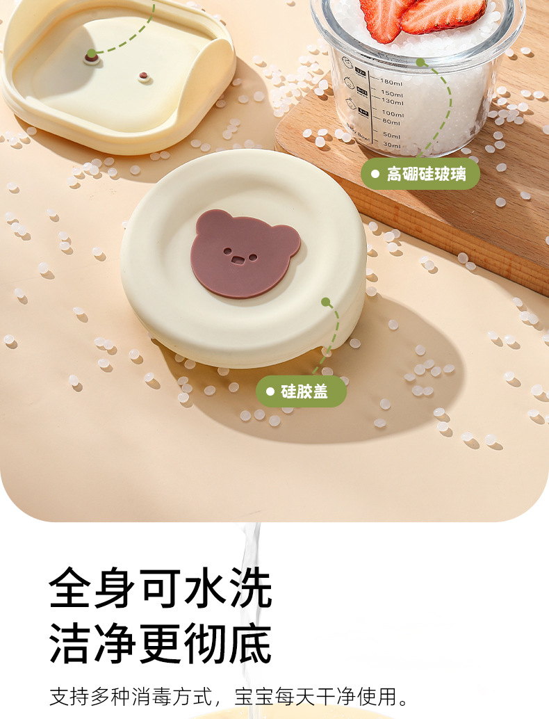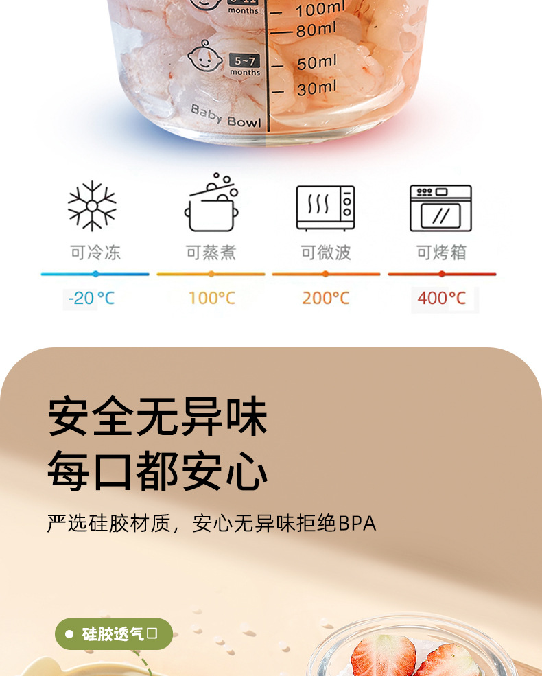 可蒸煮宝宝辅食碗带刻度婴儿碗密封罐冷冻储存盒玻璃保鲜盒辅食盒