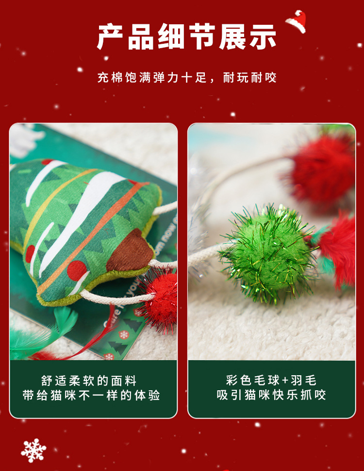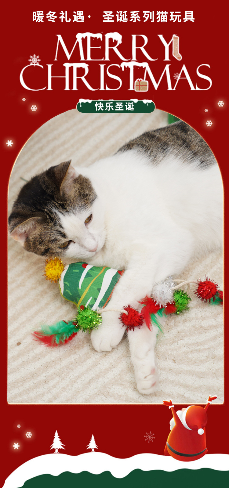 圣诞节猫咪玩具猫薄荷耐咬自嗨解闷神器羽毛逗猫玩具宠物用品批发