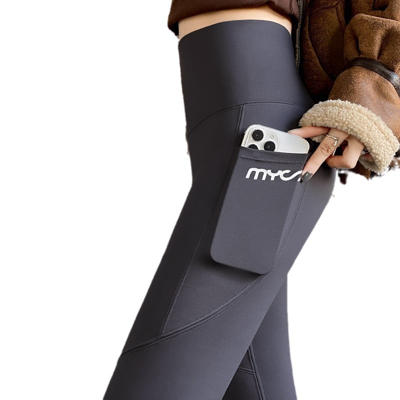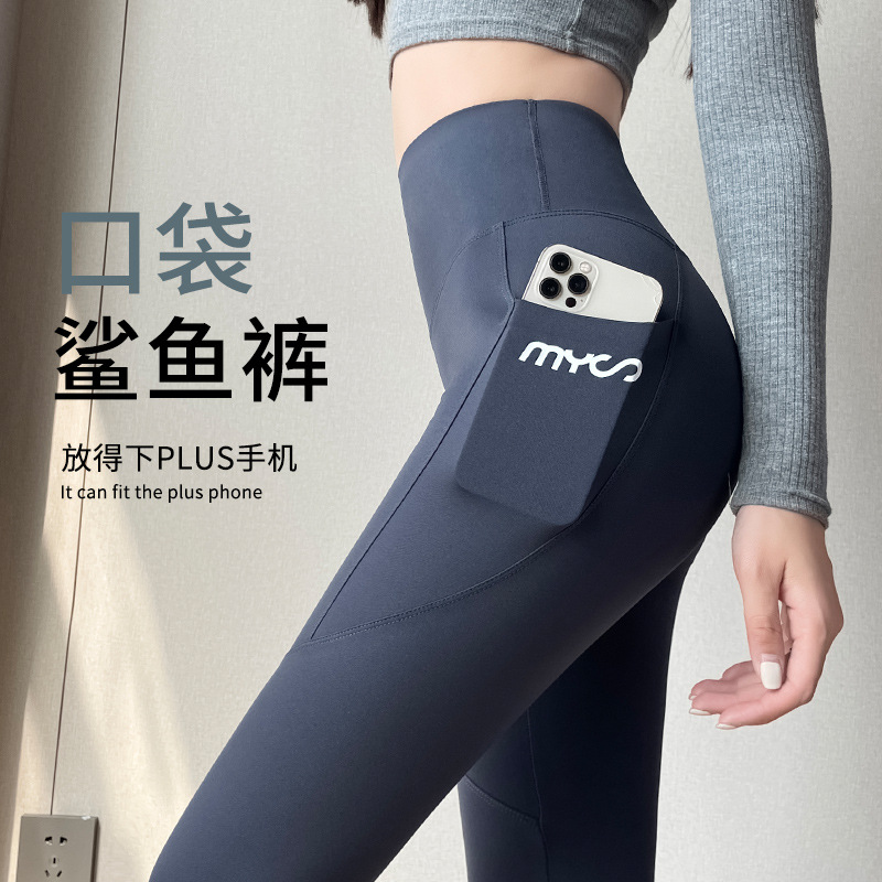 侧口袋鲨鱼裤女外穿秋冬季2024新款高腰提臀芭比加绒裤瑜伽打底裤