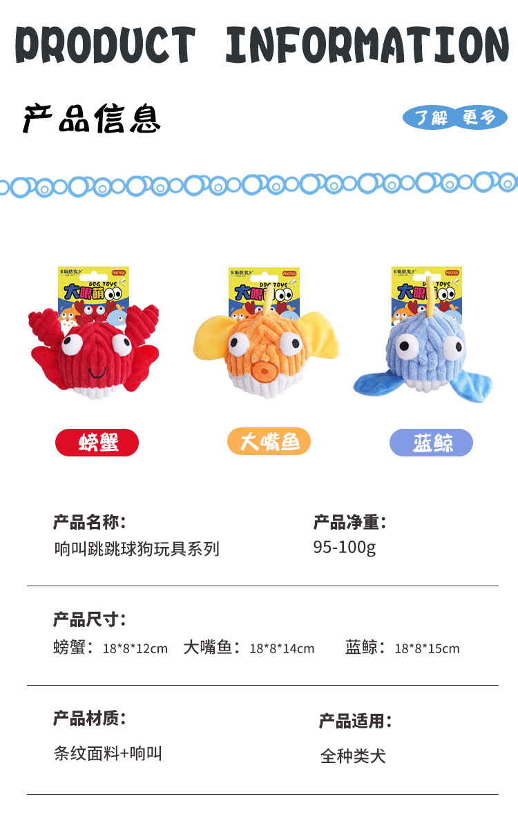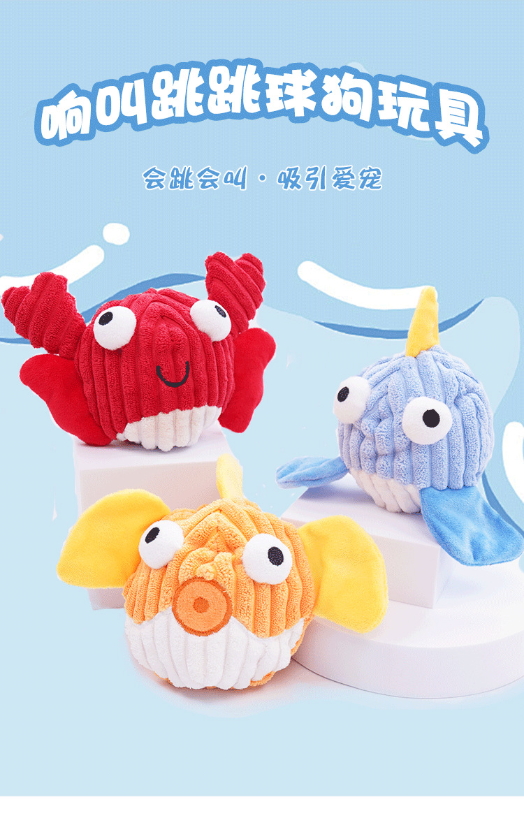 跨境狗狗玩具耐咬磨牙解闷毛绒跳跳球响纸发声互动抛掷宠物玩具球