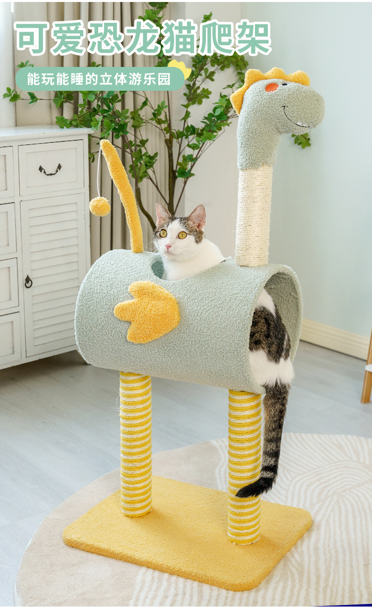 恐龙猫爬架多功能小户型猫抓柱猫窝一体不占地四季通用可爱猫玩具