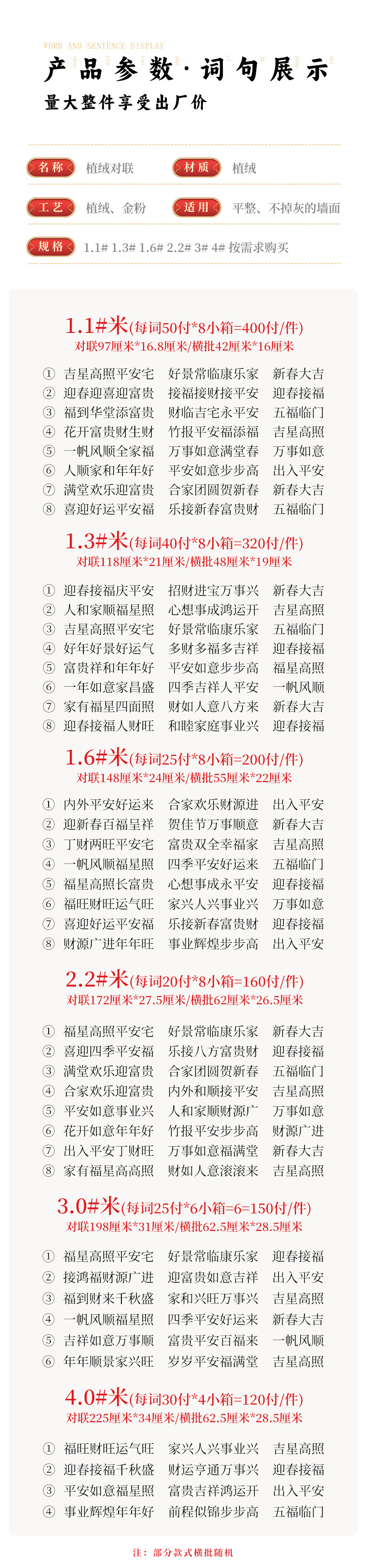 | 1.1# welcome the spring, welcome the wealth, receive the blessing, receive the wealth, and receive the peace(1.1#迎春迎喜迎富贵,接福接财接平安) | USD $0.78 | 1000 pair available |