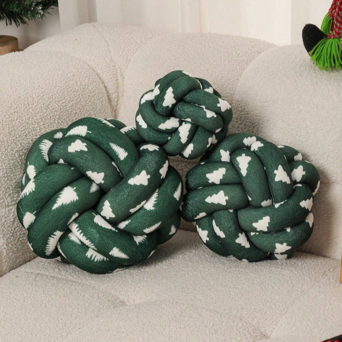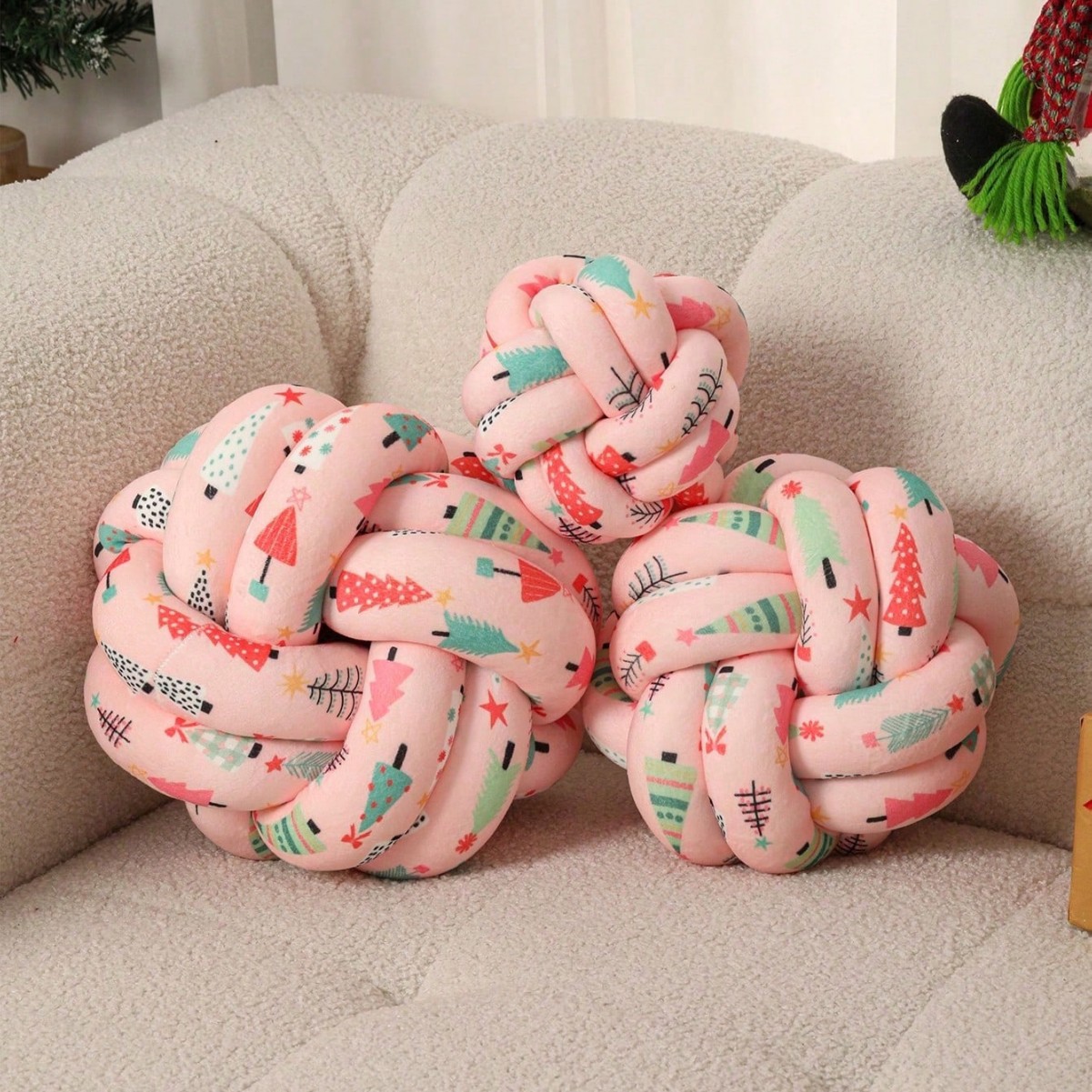 圣诞打结球抱枕手工编织两股八面球沙发北欧风跨境亚马逊一件代发