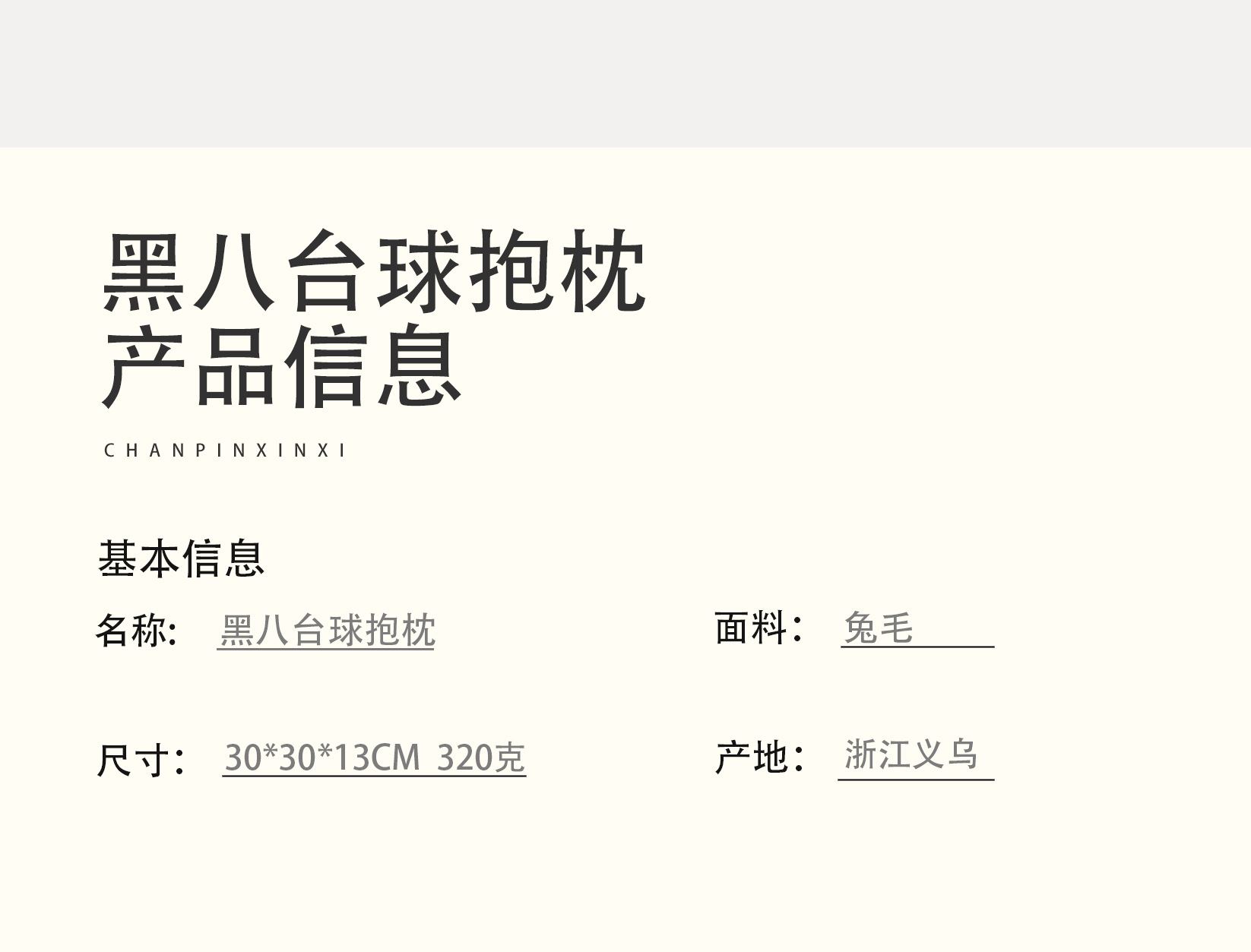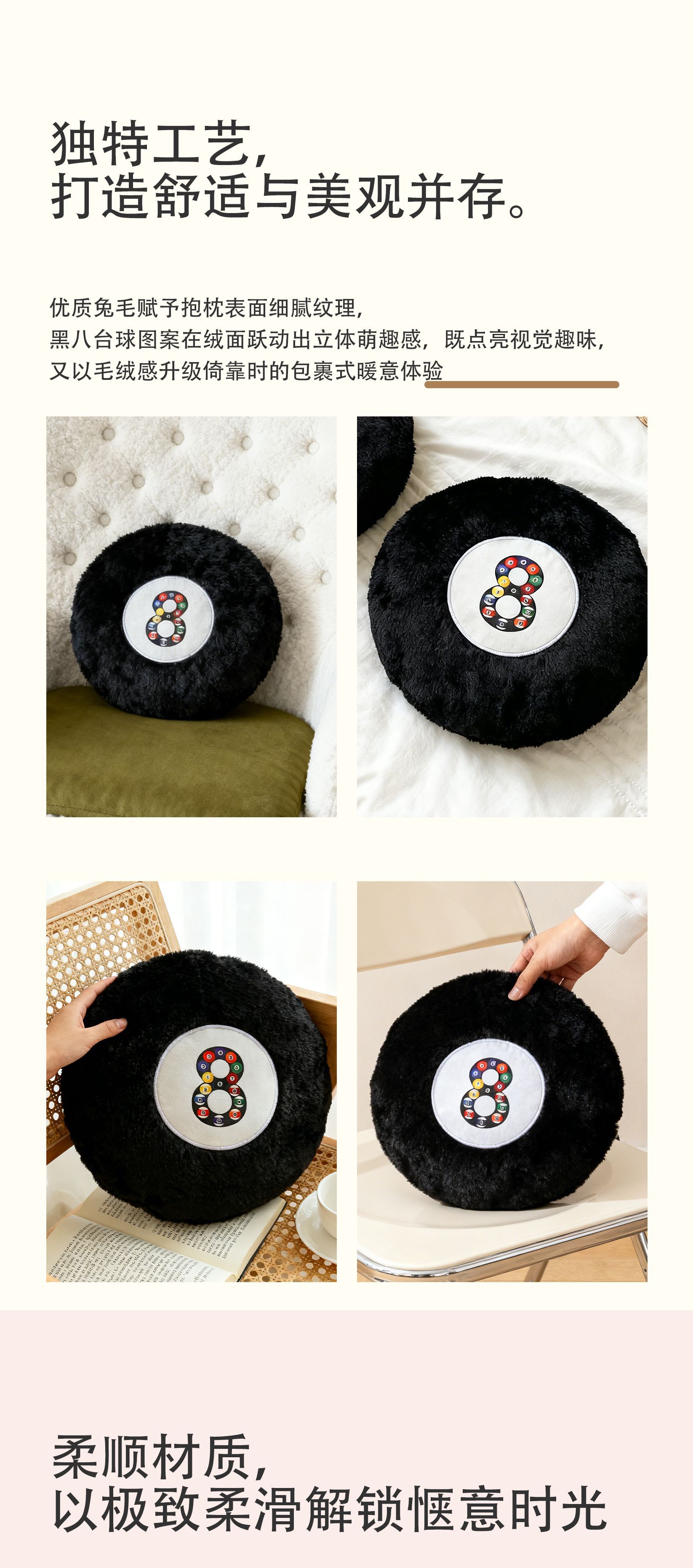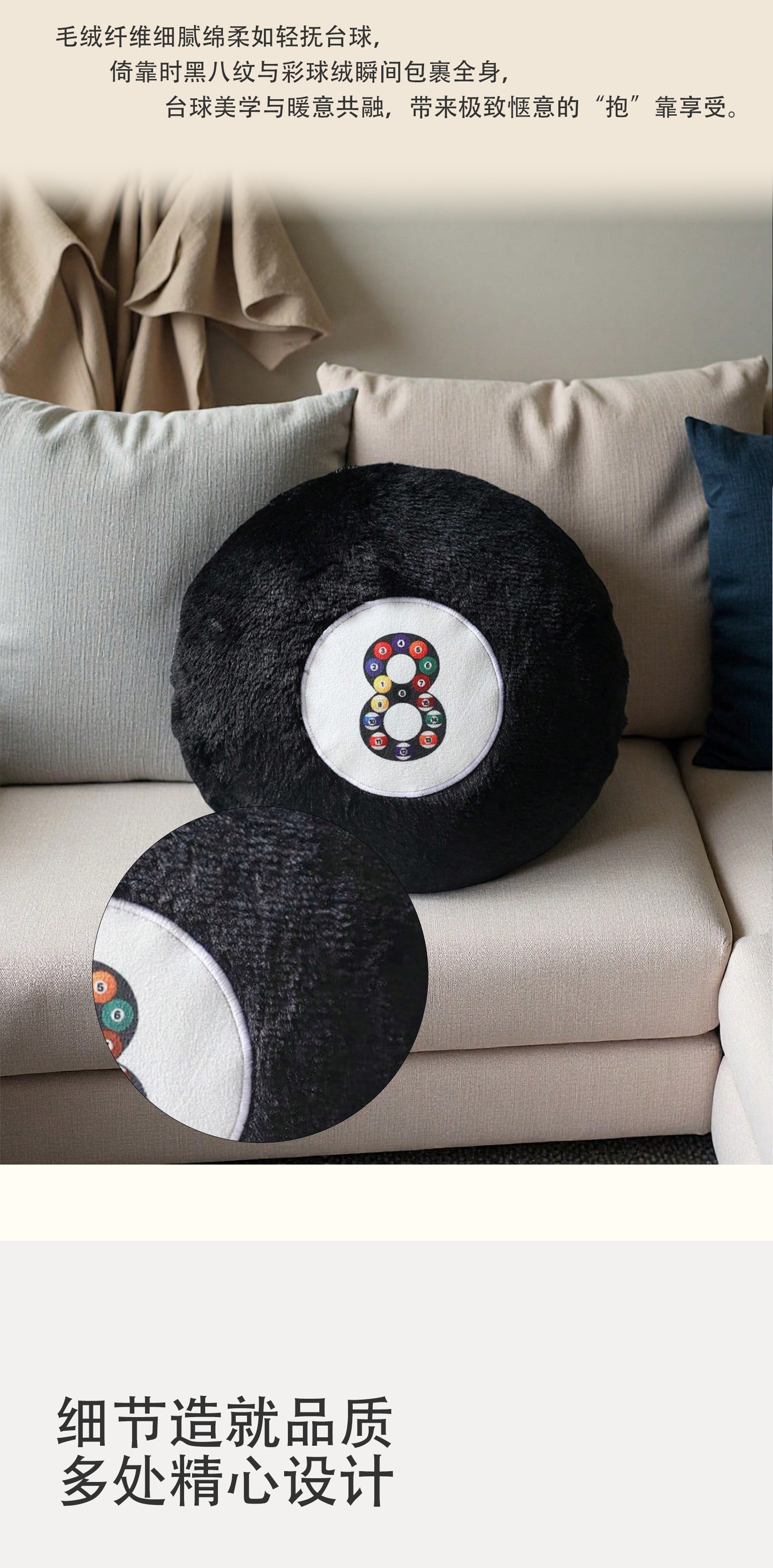黑八台球抱枕毛绒玩具家居沙发靠垫黑8玩偶客厅摆件装饰腰靠代发