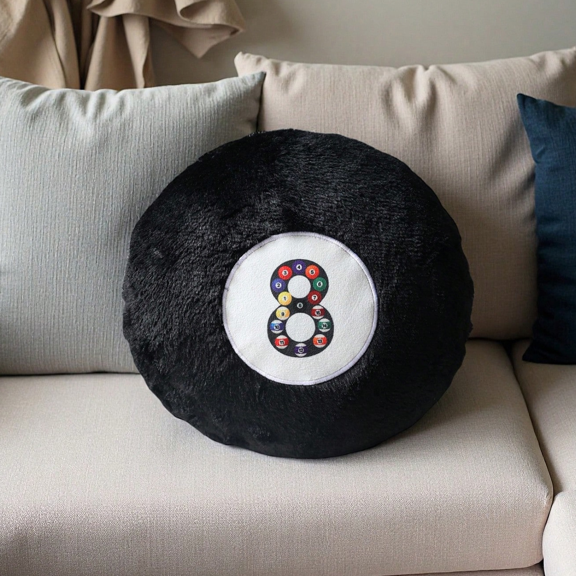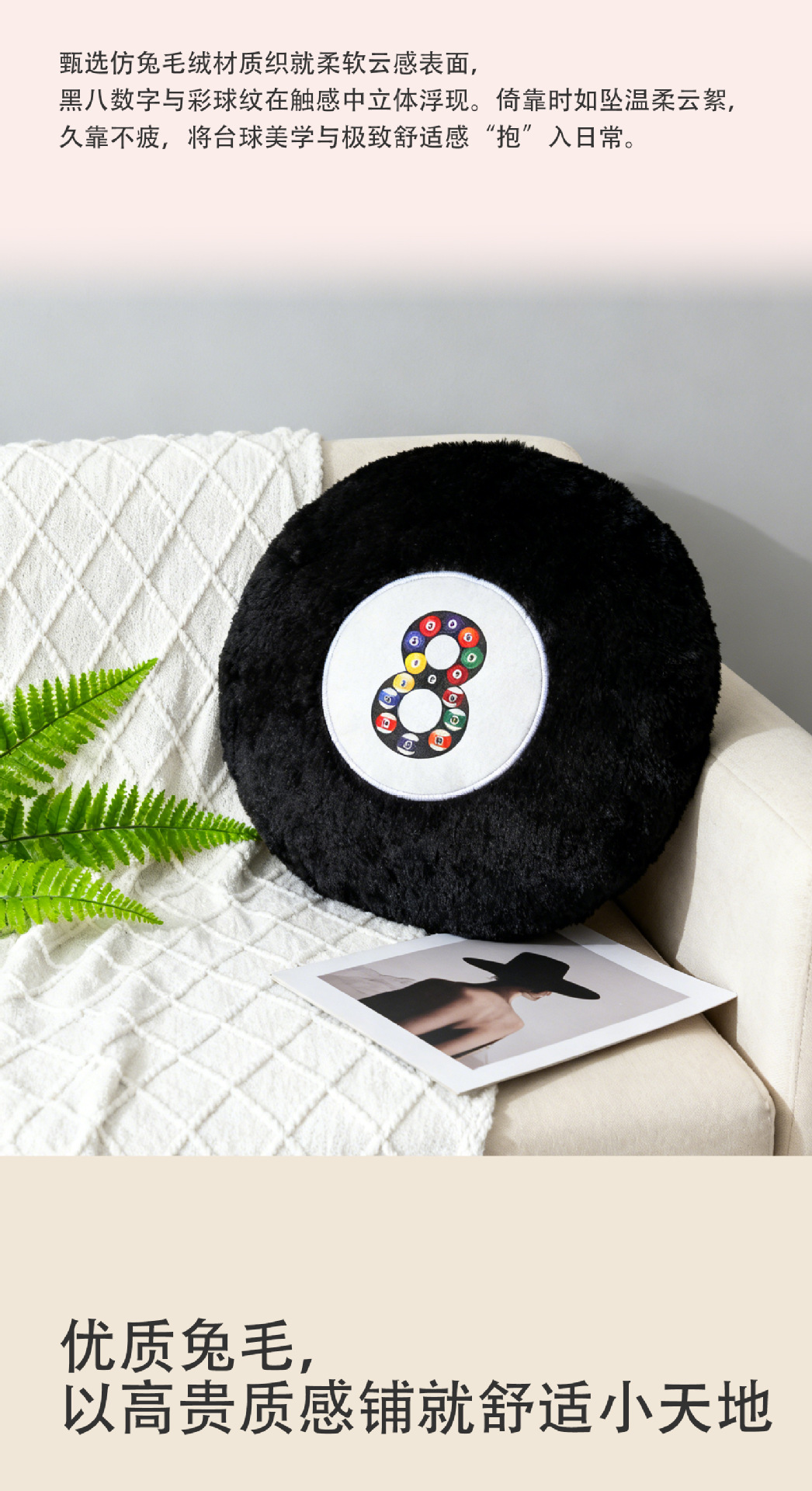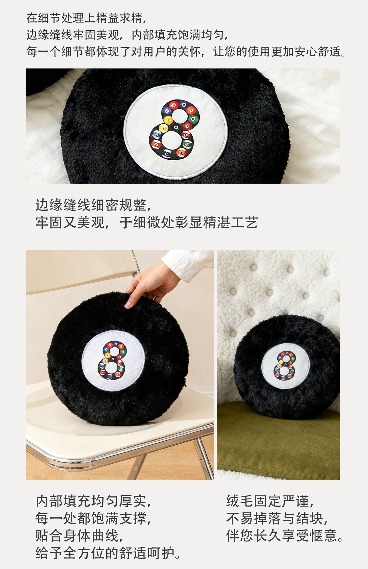 黑八台球抱枕毛绒玩具家居沙发靠垫黑8玩偶客厅摆件装饰腰靠代发