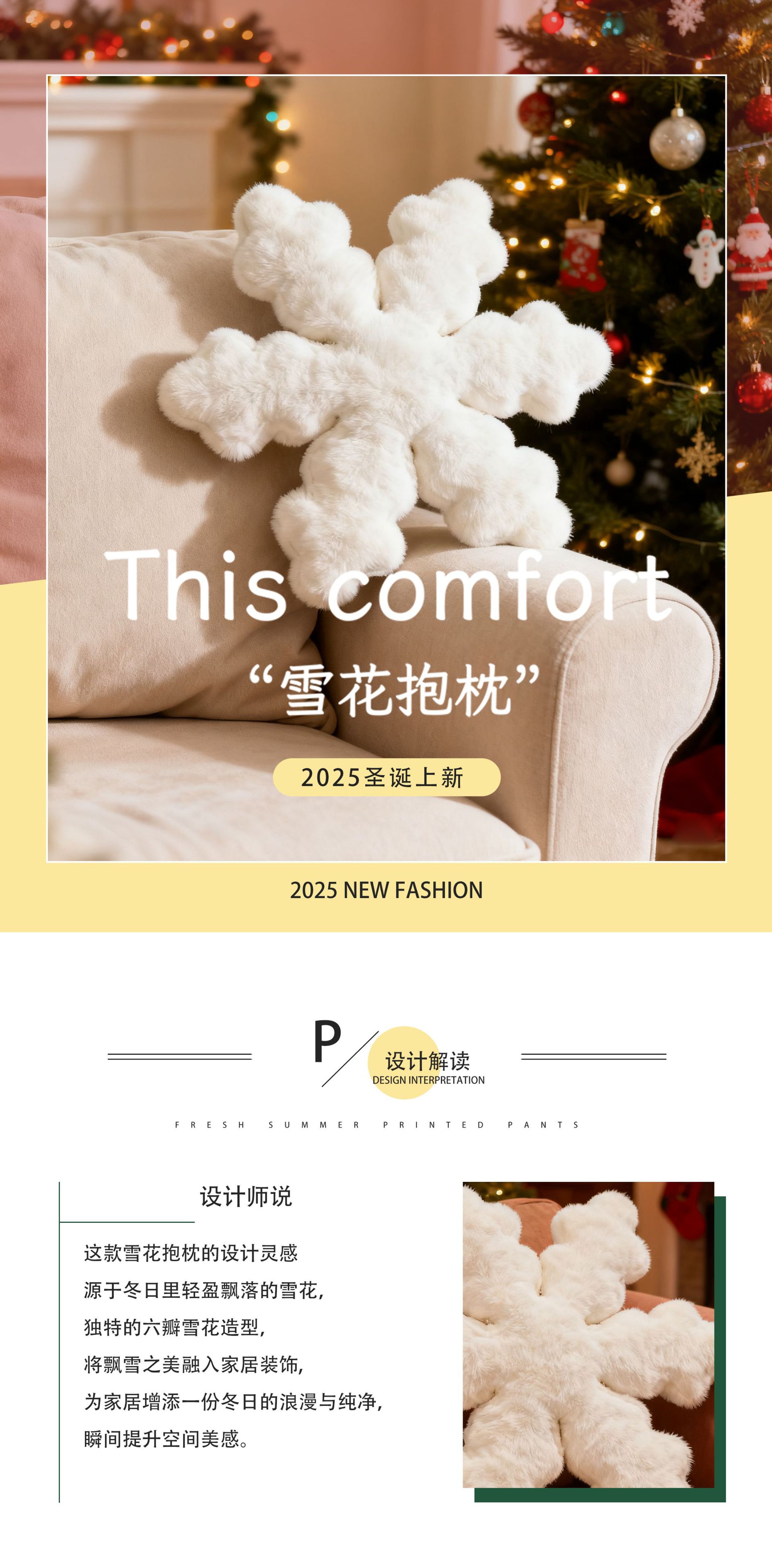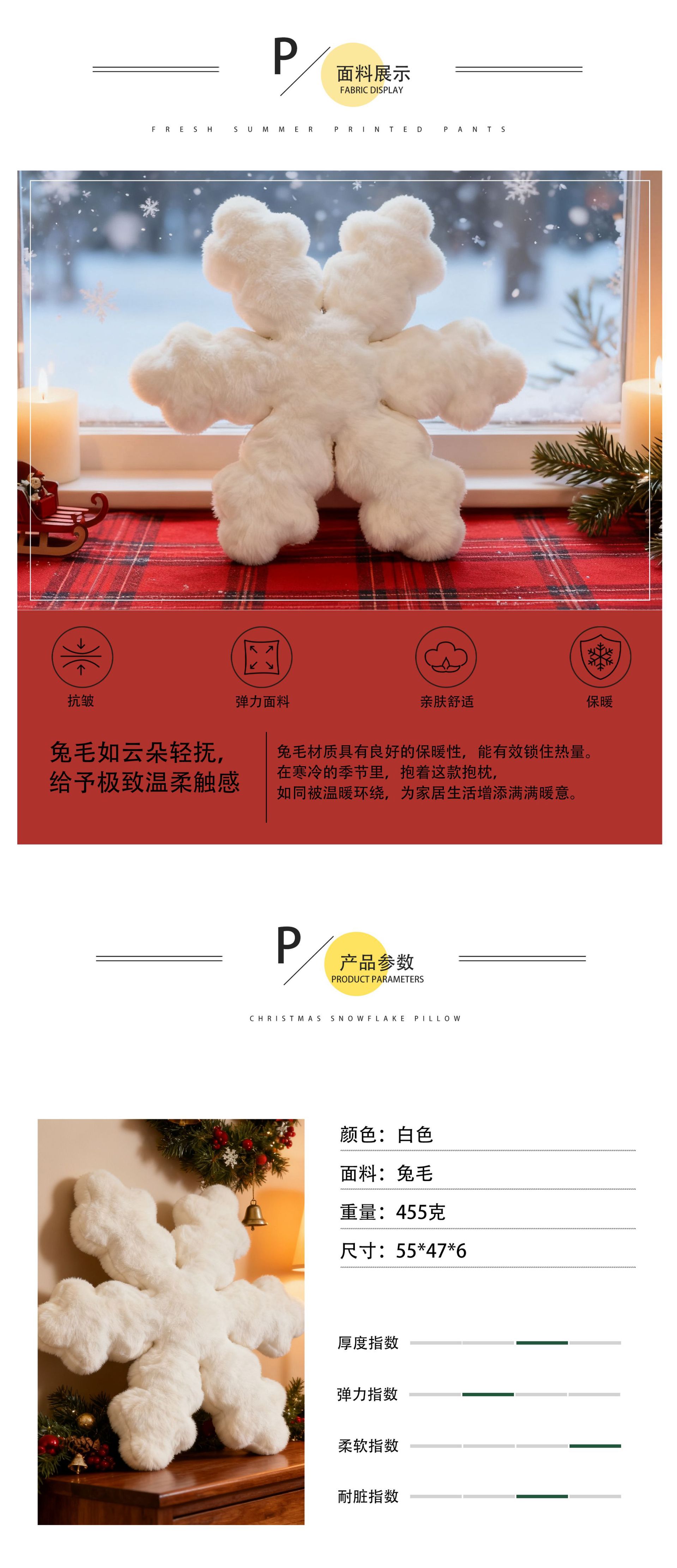 雪花抱枕沙发抱枕客厅装饰靠垫摆件毛绒玩具跨境temu亚马逊代发