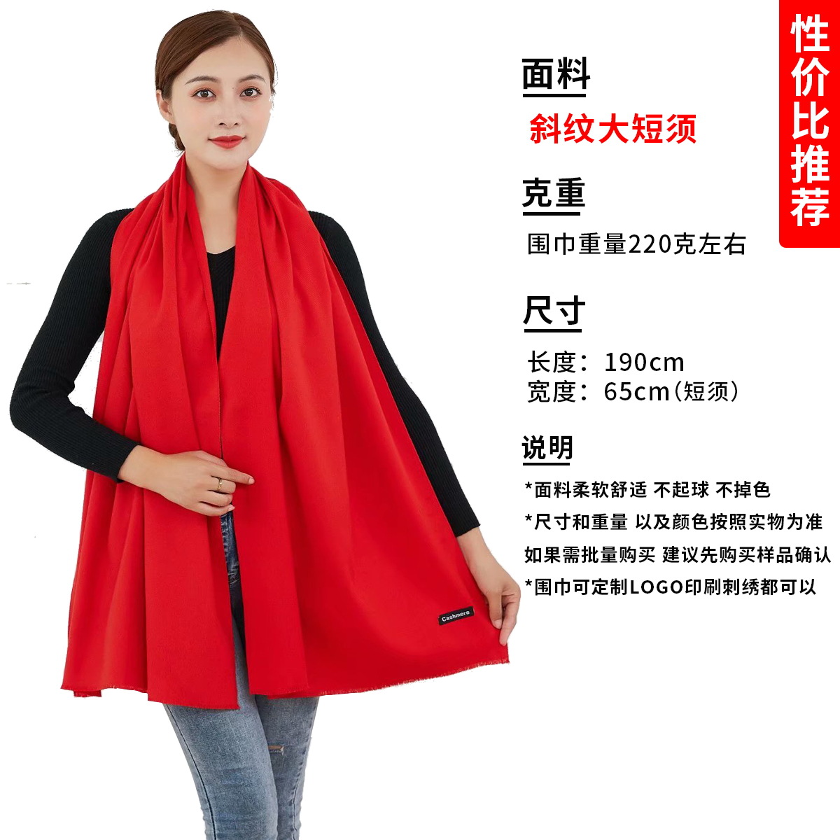 红围巾定制印logo刺绣年会活动围巾同学聚会中国红披肩印字印花