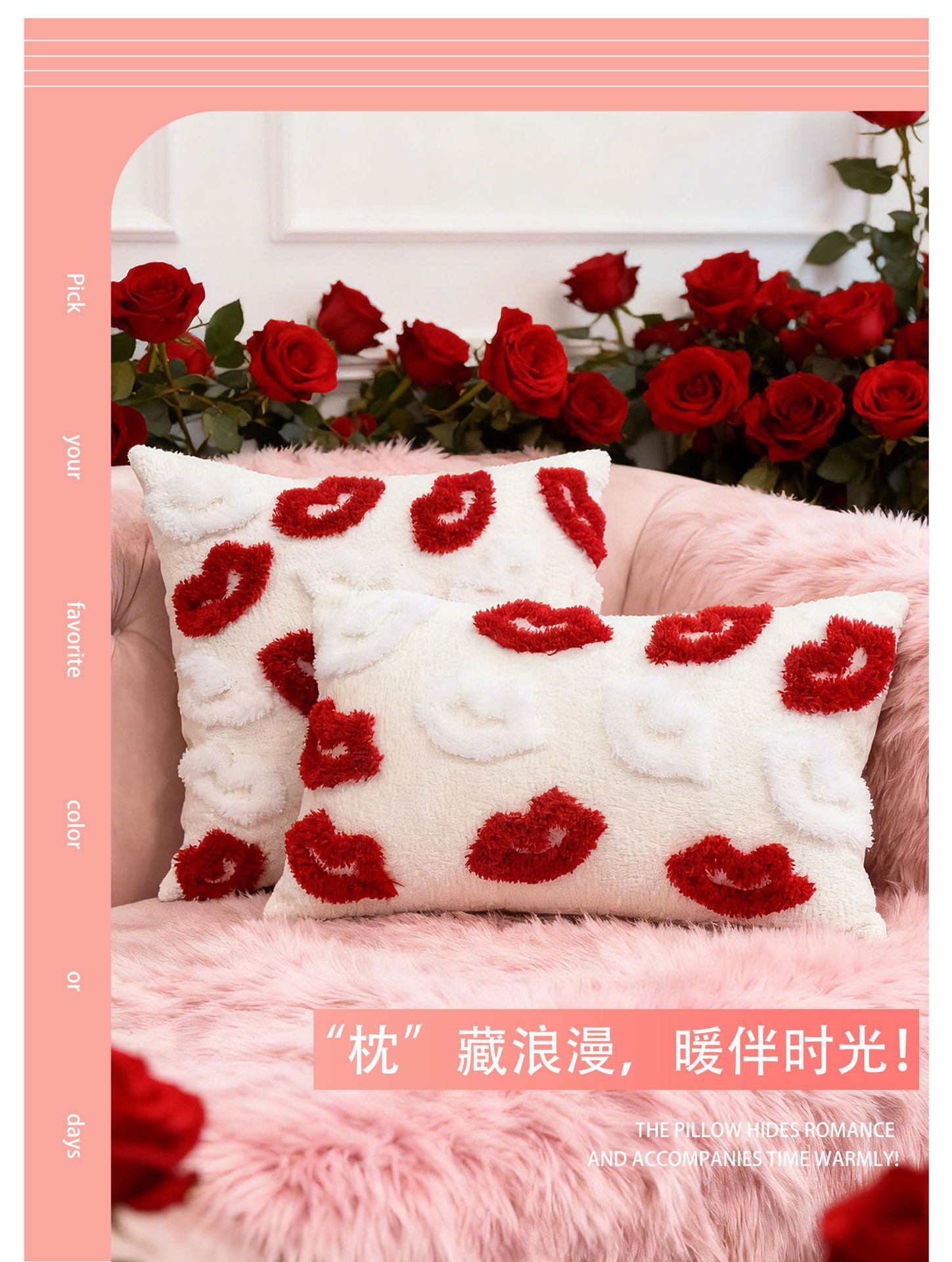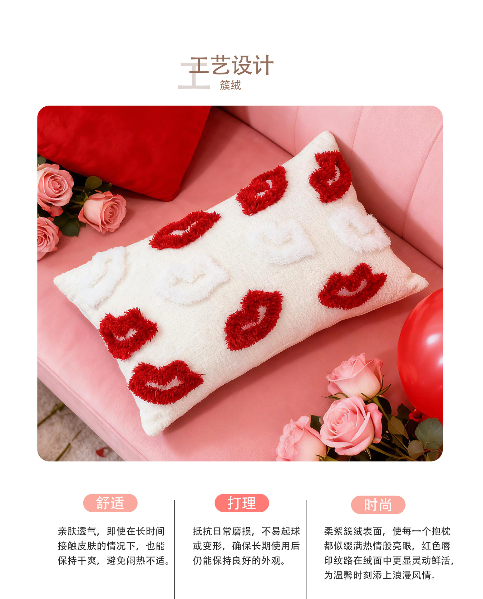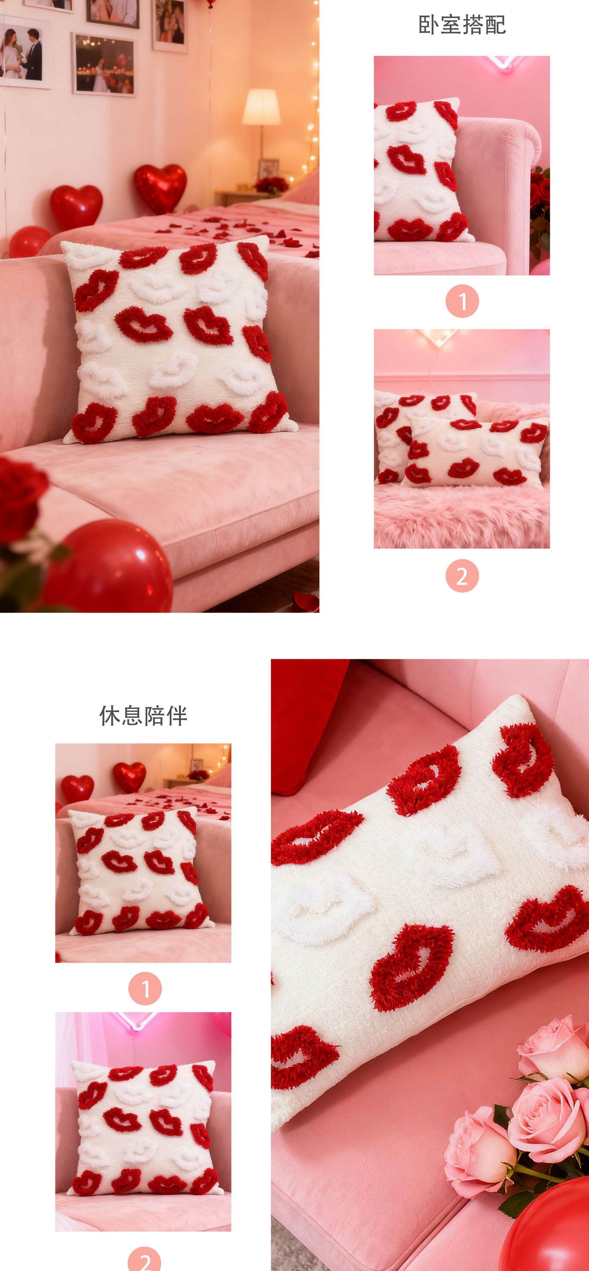 情人节抱枕套簇绒民宿沙发靠背卧室床头装饰靠垫跨境一件代发