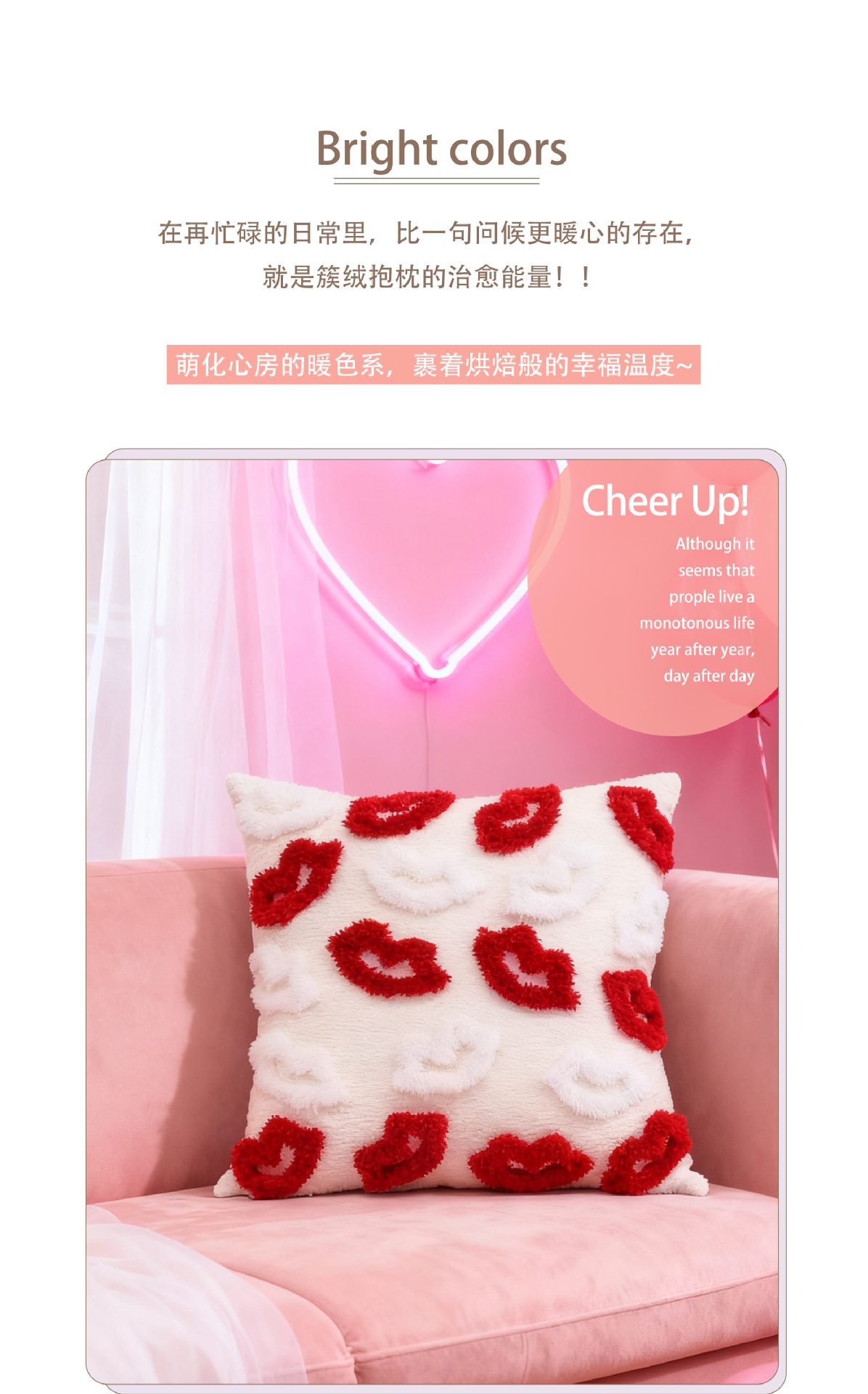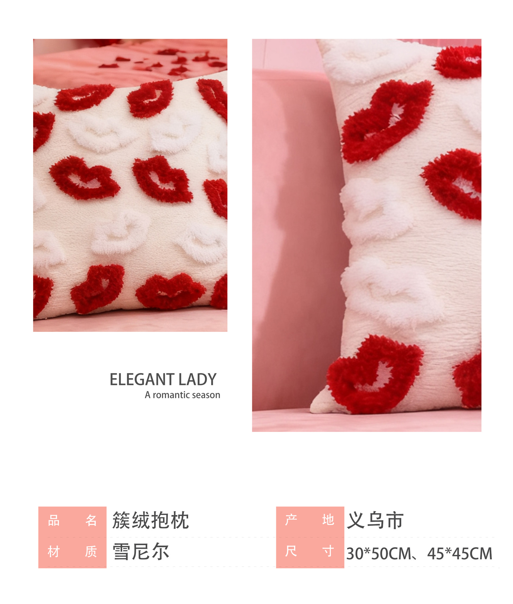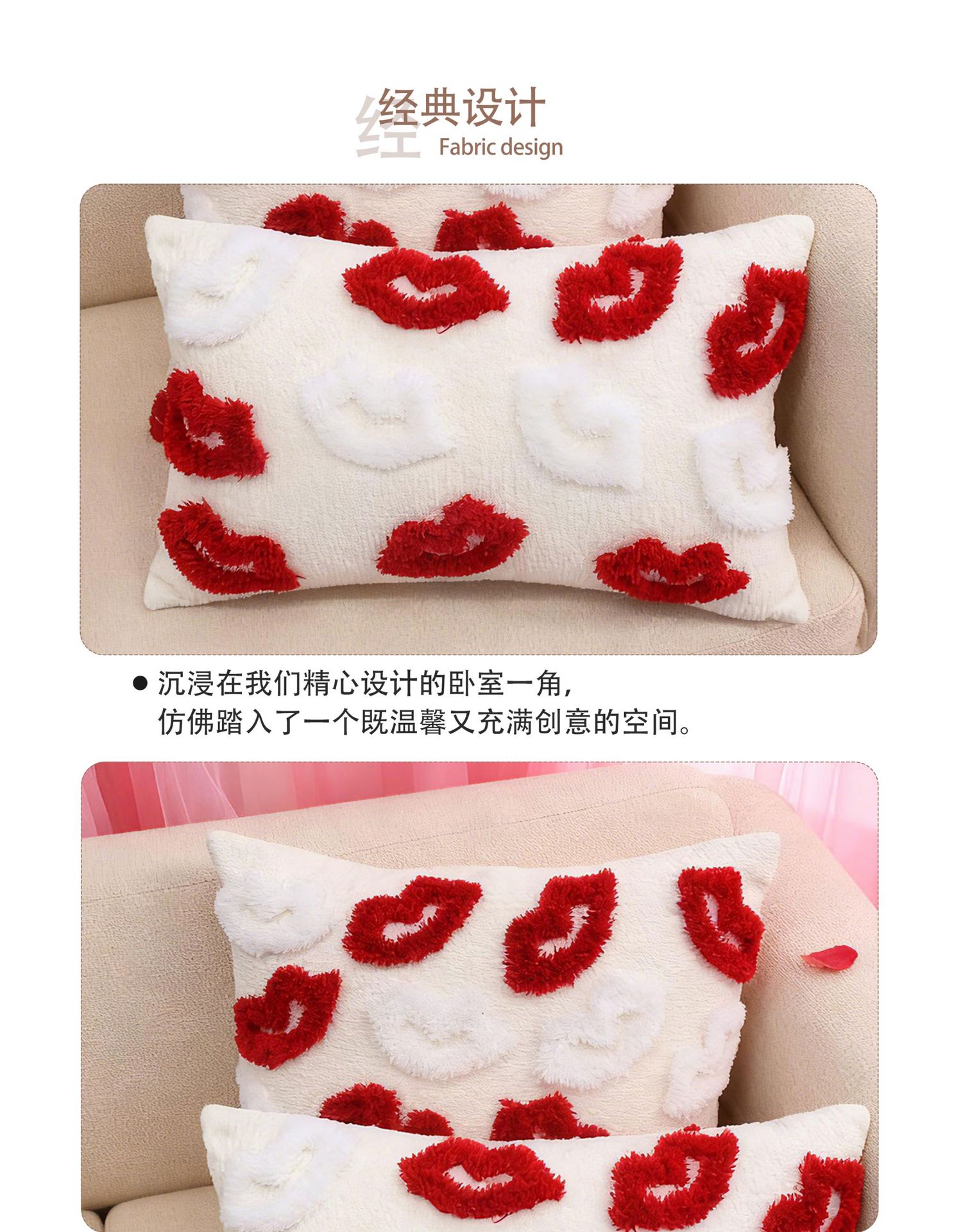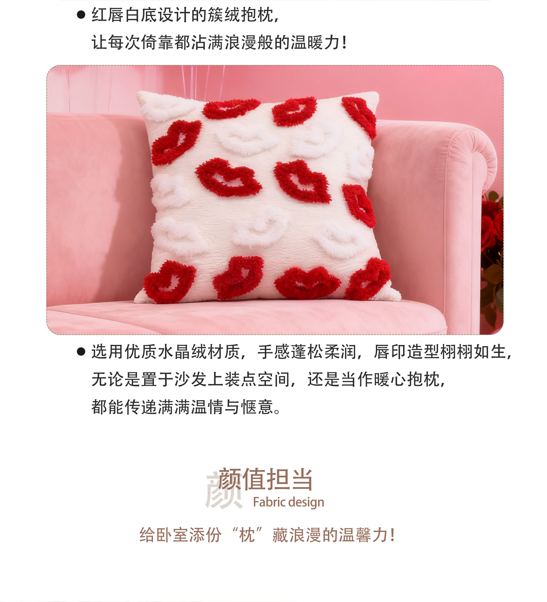 情人节抱枕套簇绒民宿沙发靠背卧室床头装饰靠垫跨境一件代发