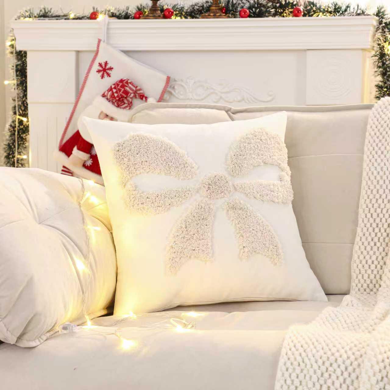 跨境外贸爆款蝴蝶结圣诞树铃铛抱枕套腰靠亚马逊速卖通一件代发现