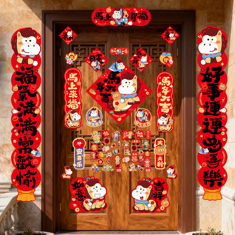 2026马年卡通新款春联福字贴春节过年对联入户门门联装饰布置批发