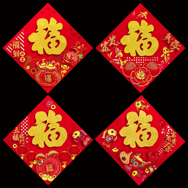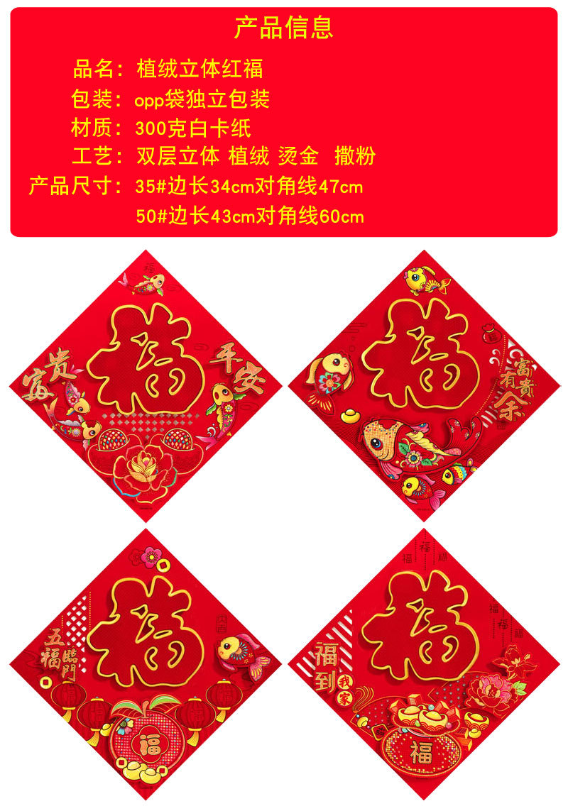 2026马年新款植绒立体福字门贴房门装饰新年绒布福春节用品批发