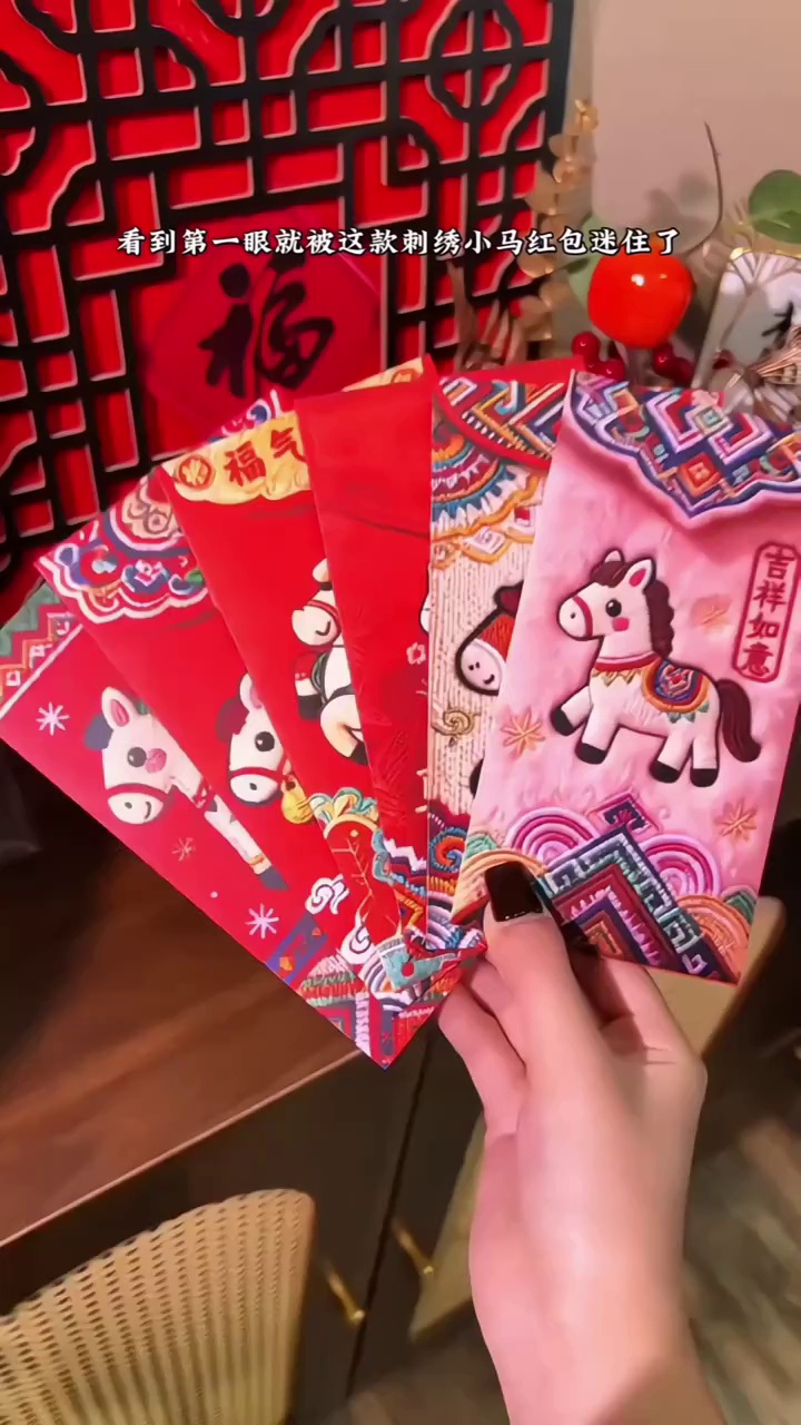 马年新款刺绣风插画红包新年通用利是封春节喜庆卡通儿童压岁福袋