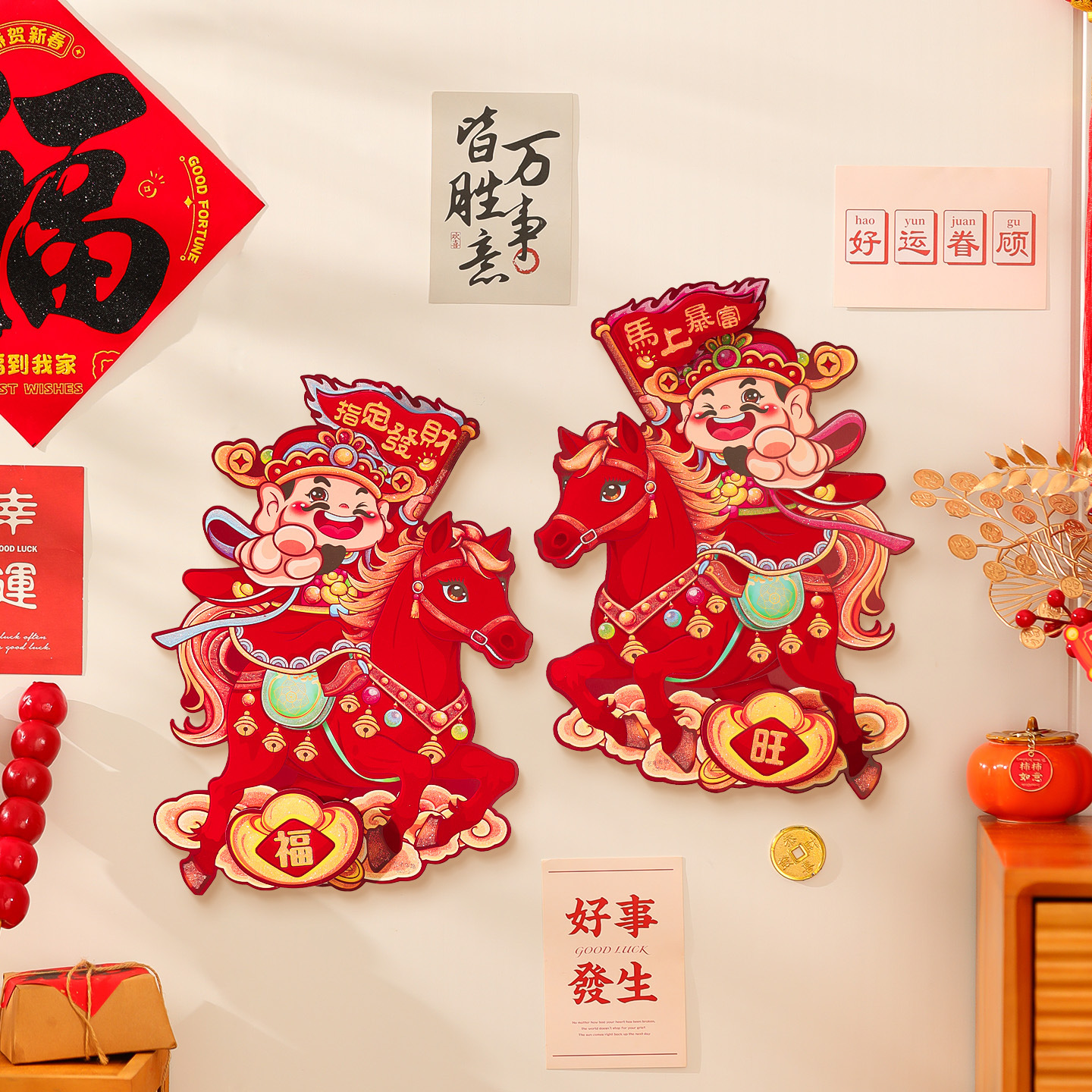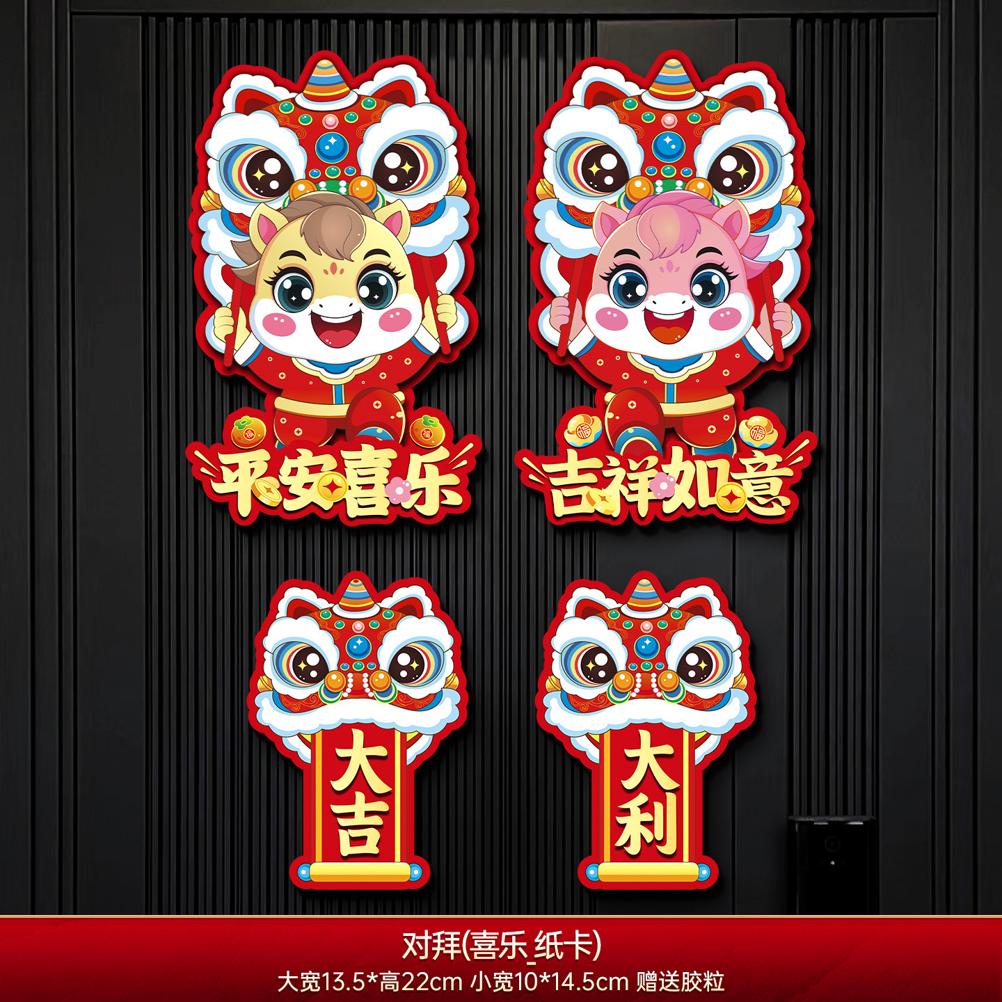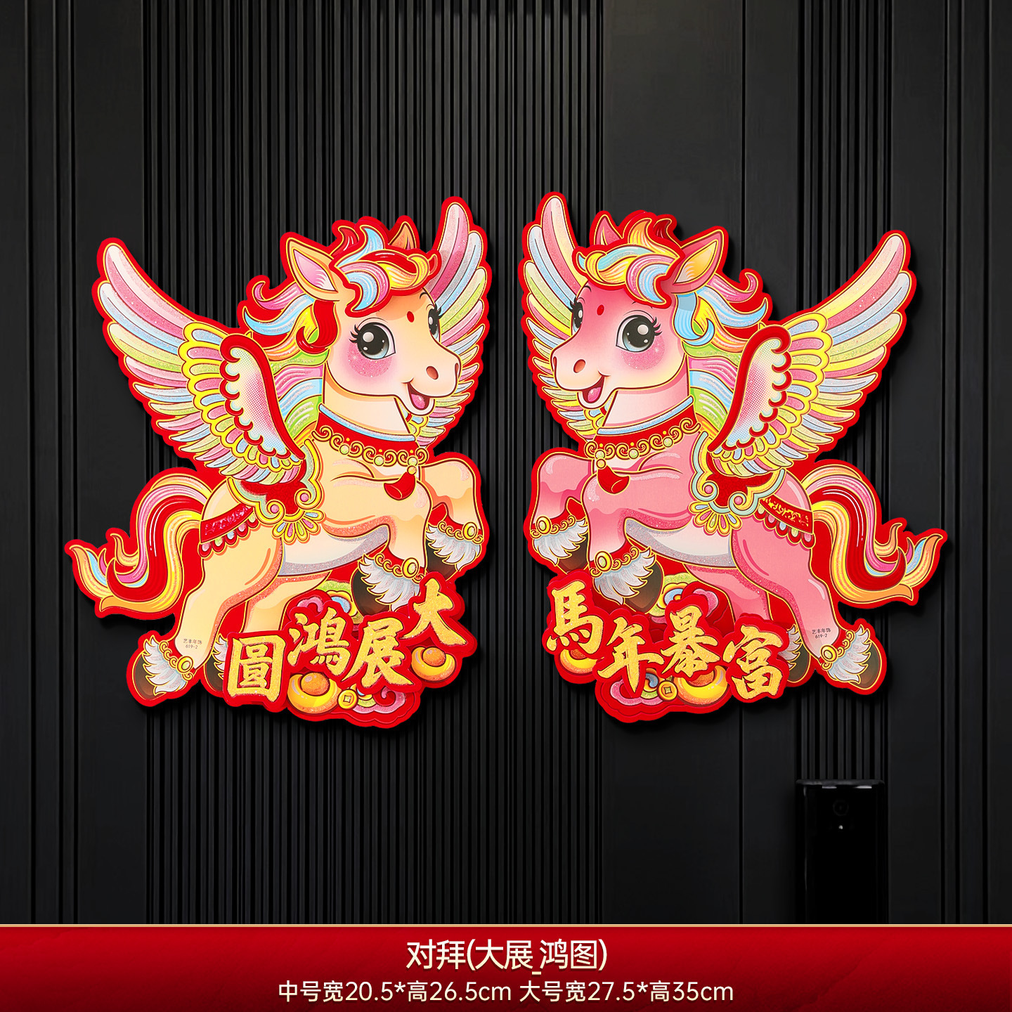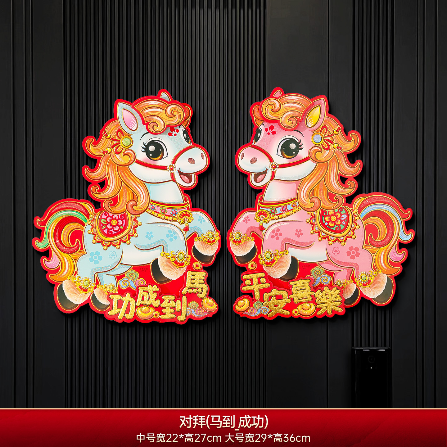 2026马年对贴新年装饰福字门贴立体卡通生肖对拜春节过年布置用品