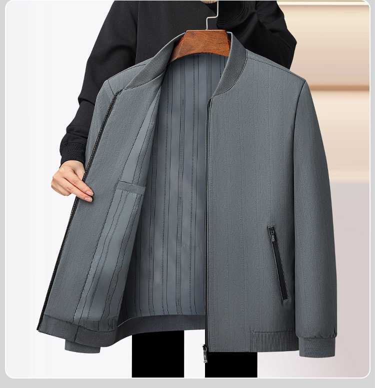 中年男士夹克轻商务男装开衫外套中老年新款春秋装棒领爸爸装