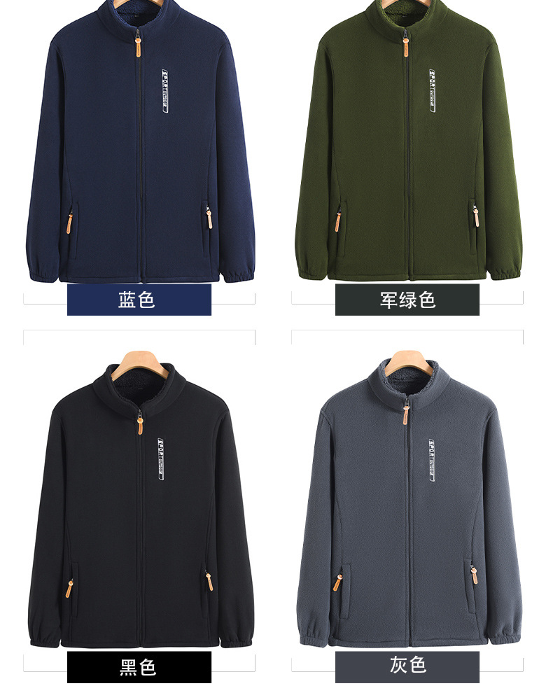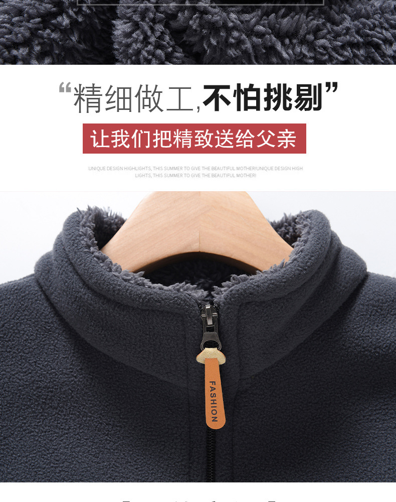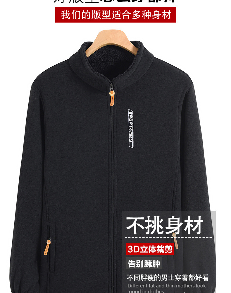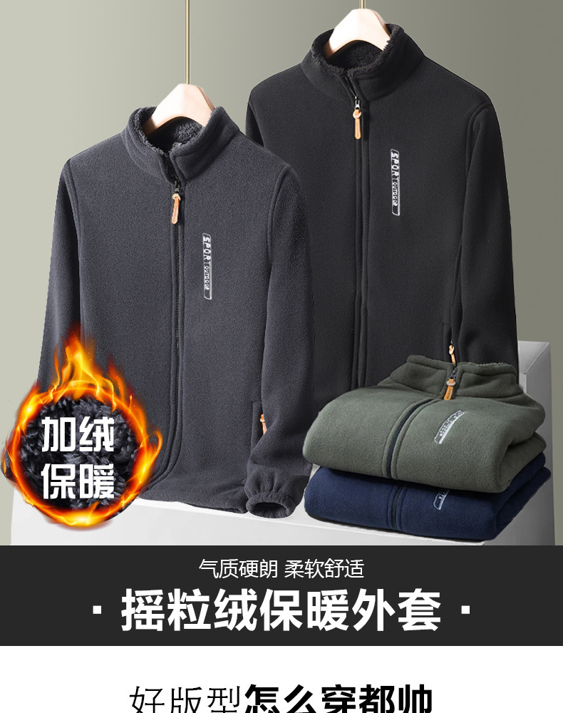 秋冬摇粒绒外套男加绒加厚宽松立领开衫抓绒上衣卫衣中老年爸爸装