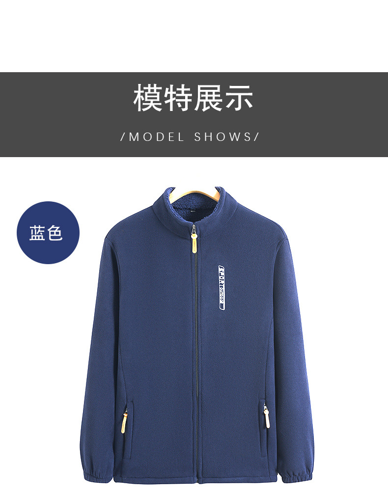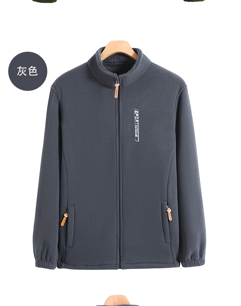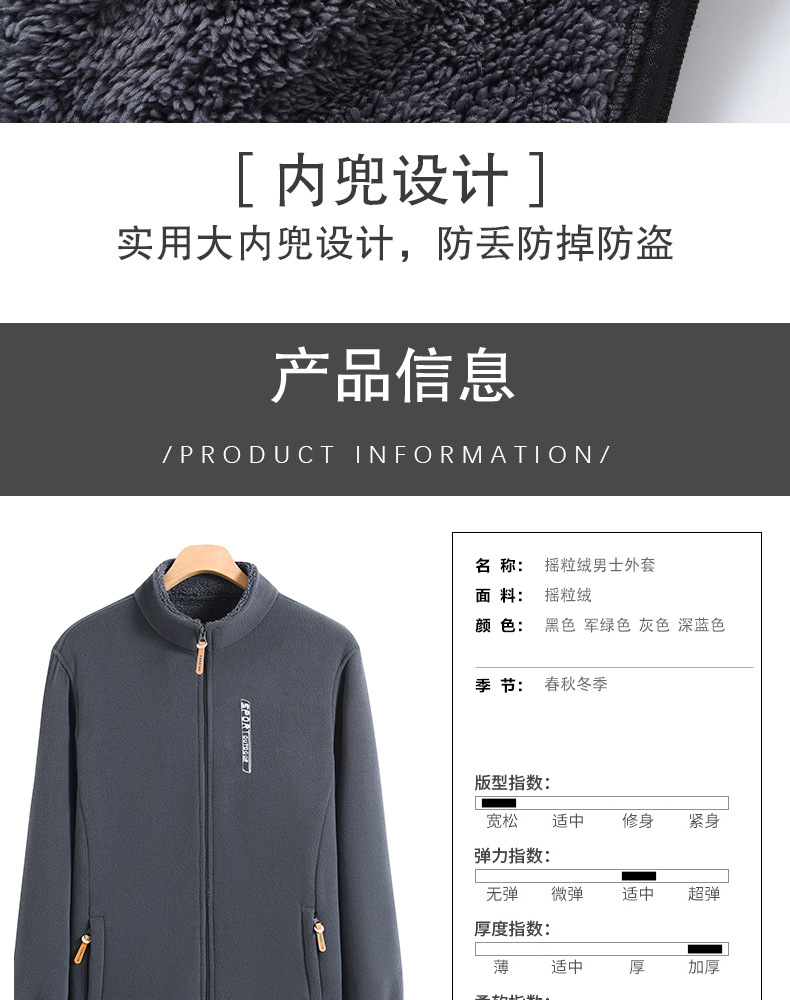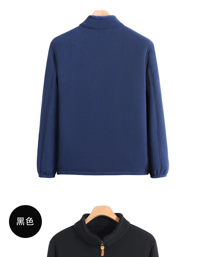 秋冬摇粒绒外套男加绒加厚宽松立领开衫抓绒上衣卫衣中老年爸爸装