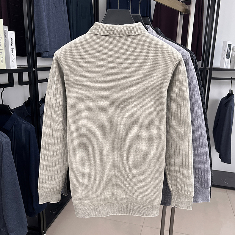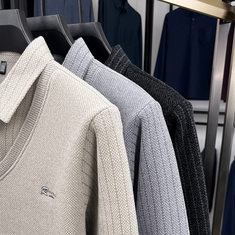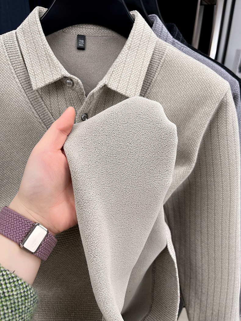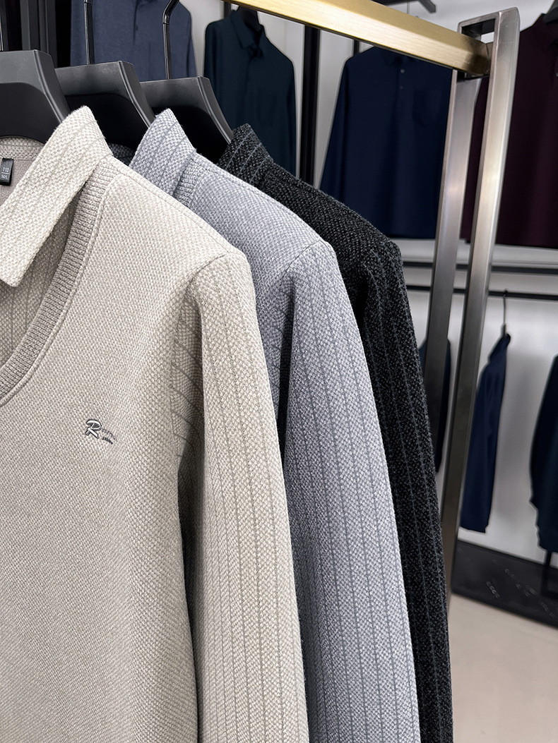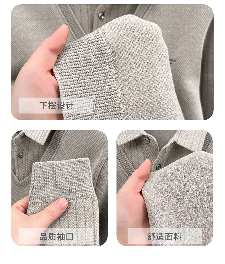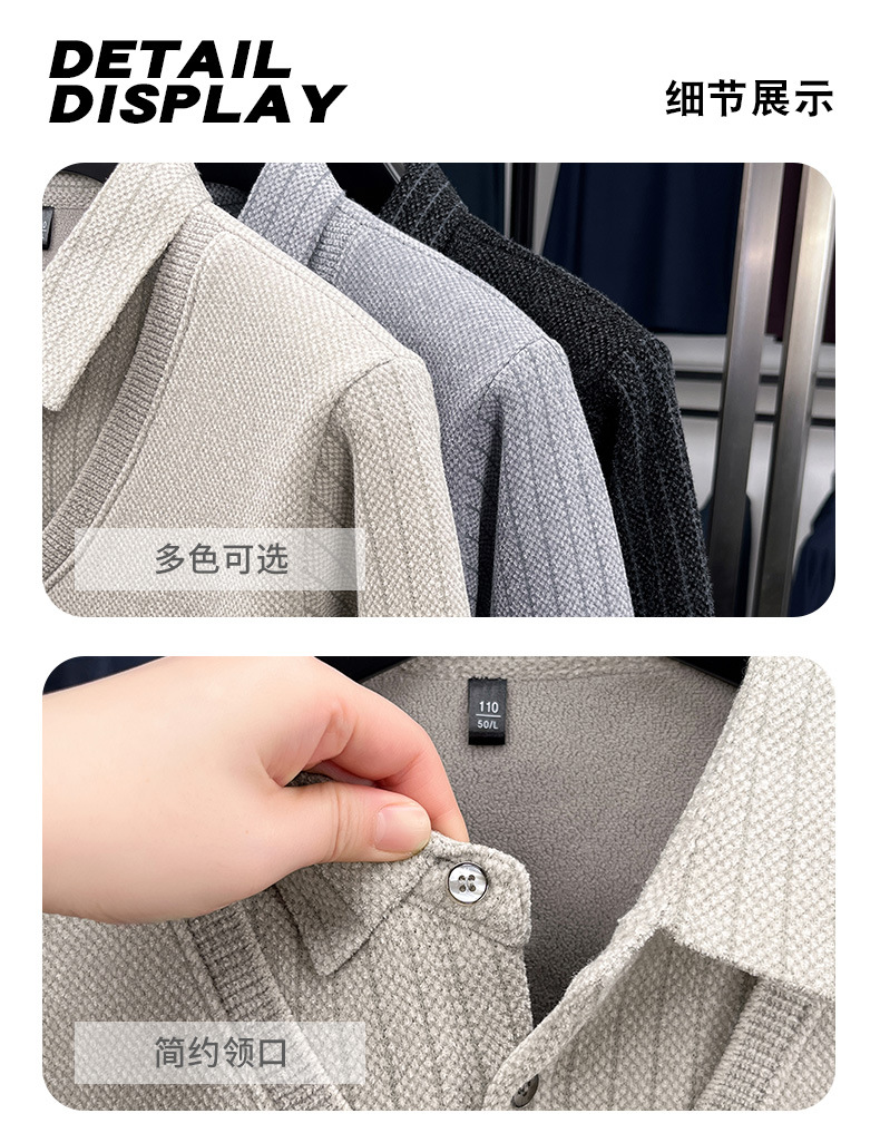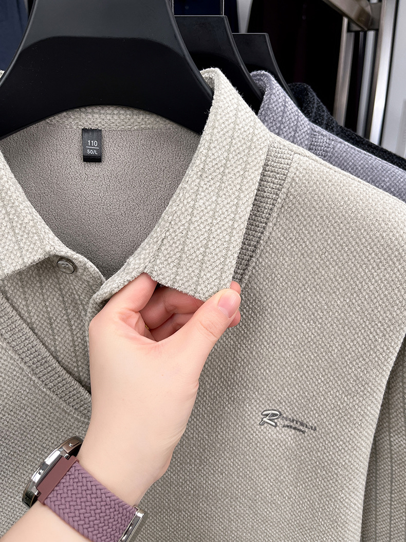 男士假两件加绒加厚冬季爆款中年男士保暖上衣翻领纯色打底衫男装