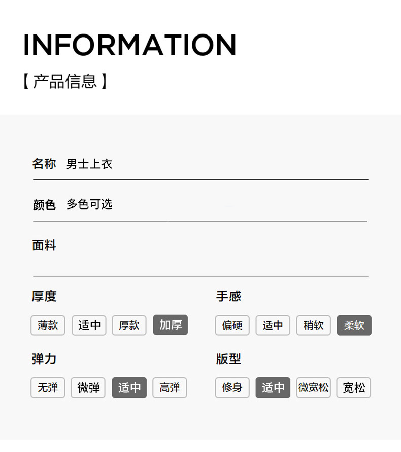 | 4xl recommended 95.00 kg-105.00 kg(4XL推荐190-210斤) | USD $0.0 | 5554 piece available |