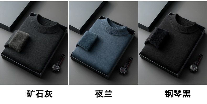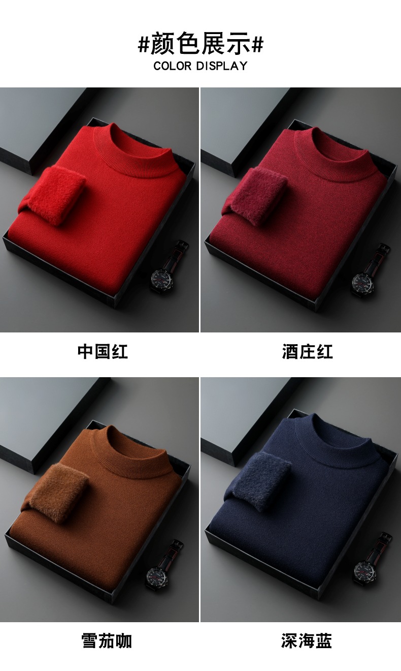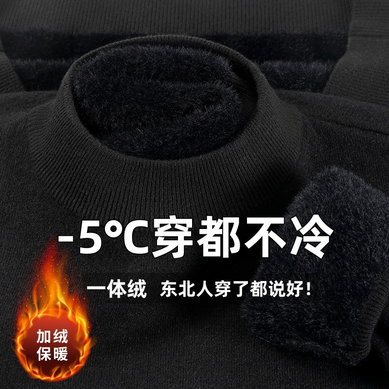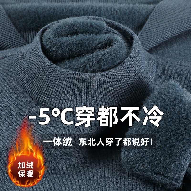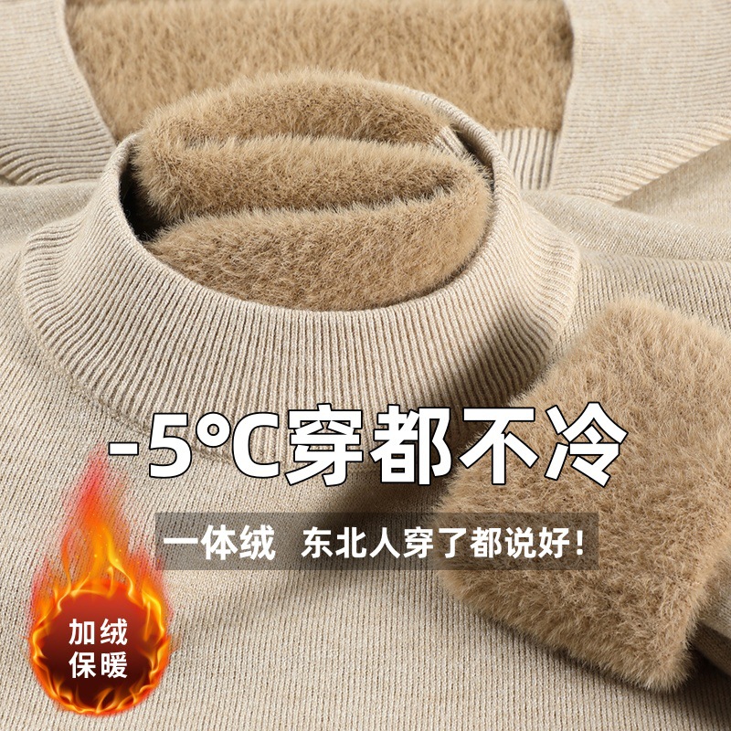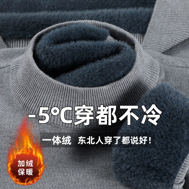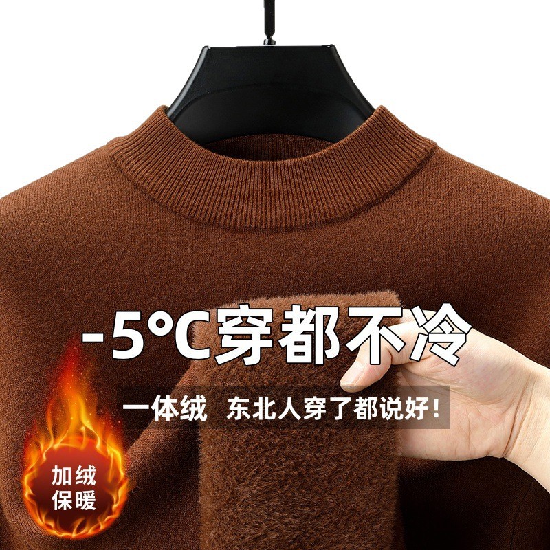 直播爆款男士羊毛衫一体绒2025秋冬季新款半高领加绒轻奢毛衣男装