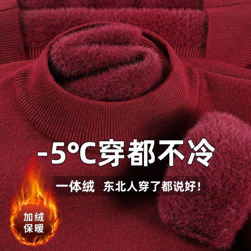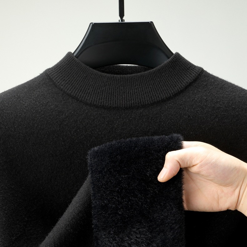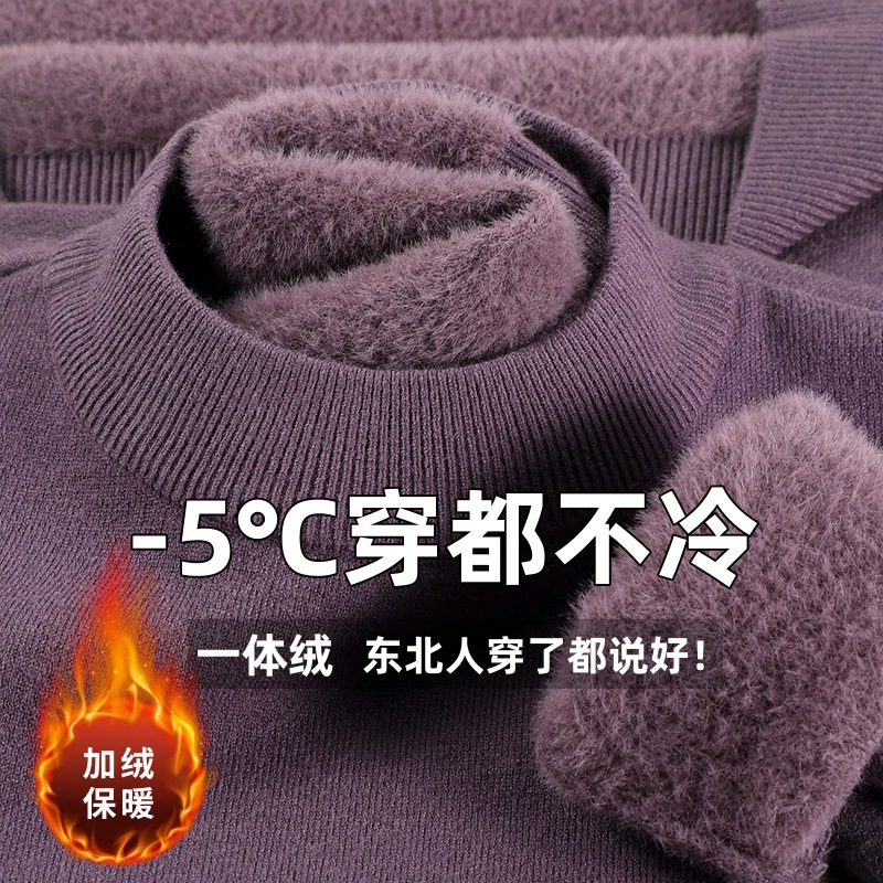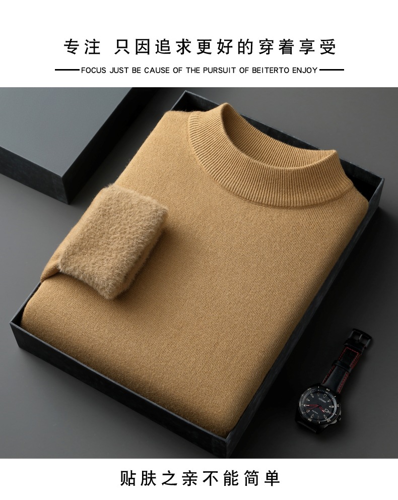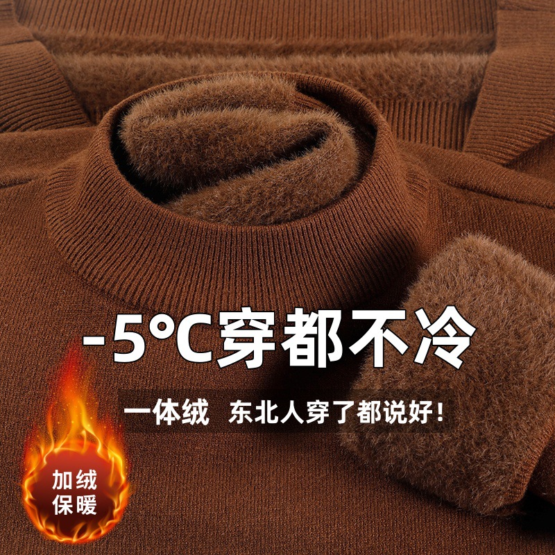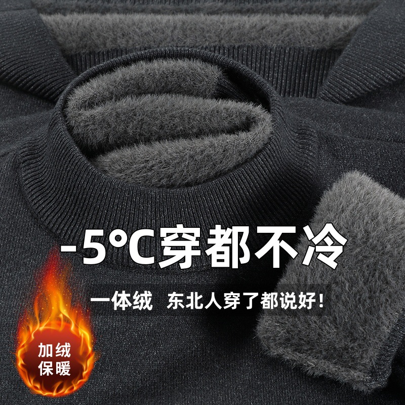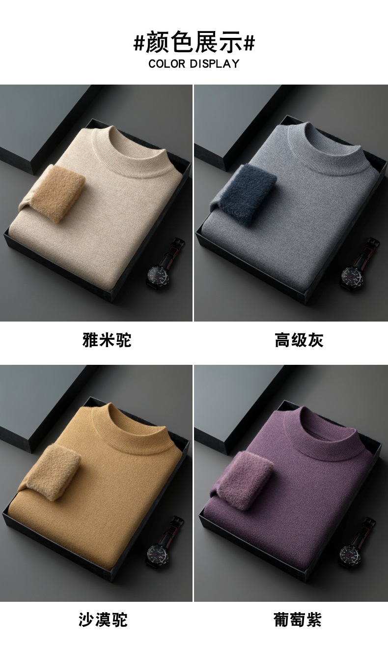 直播爆款男士羊毛衫一体绒2025秋冬季新款半高领加绒轻奢毛衣男装