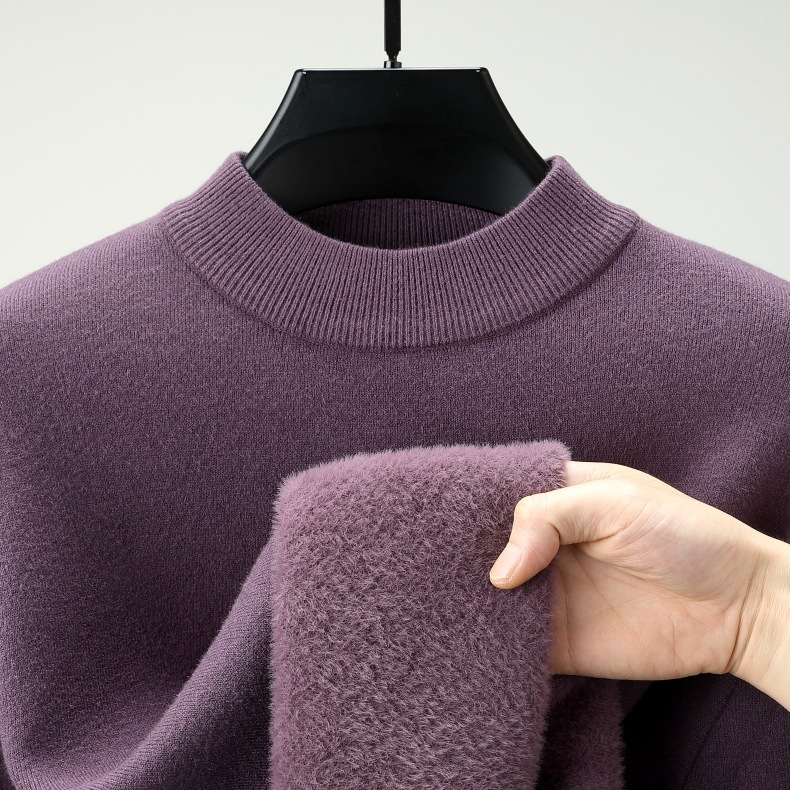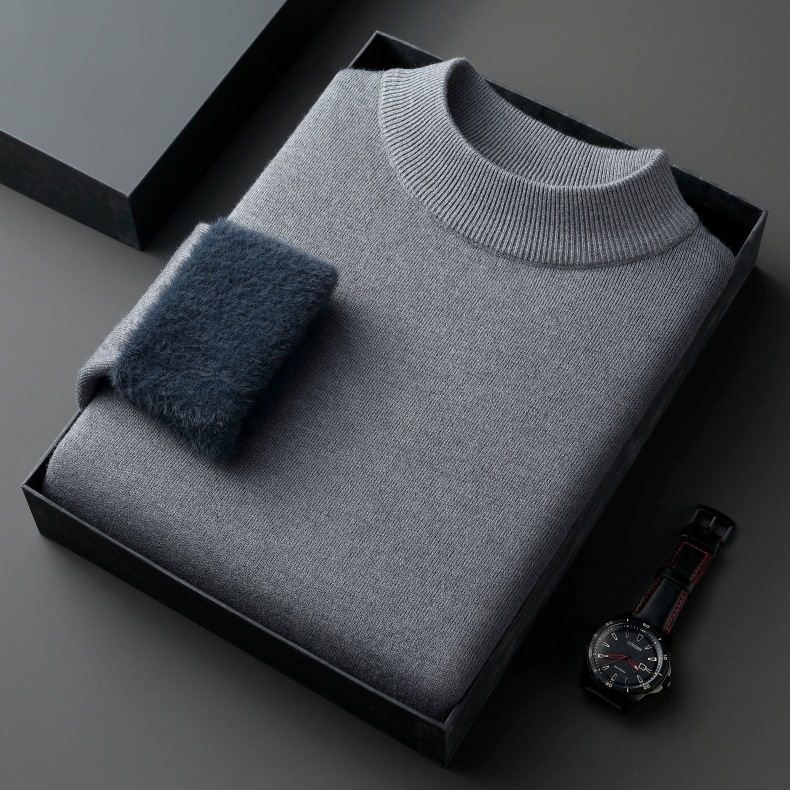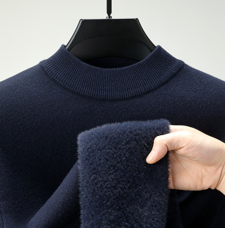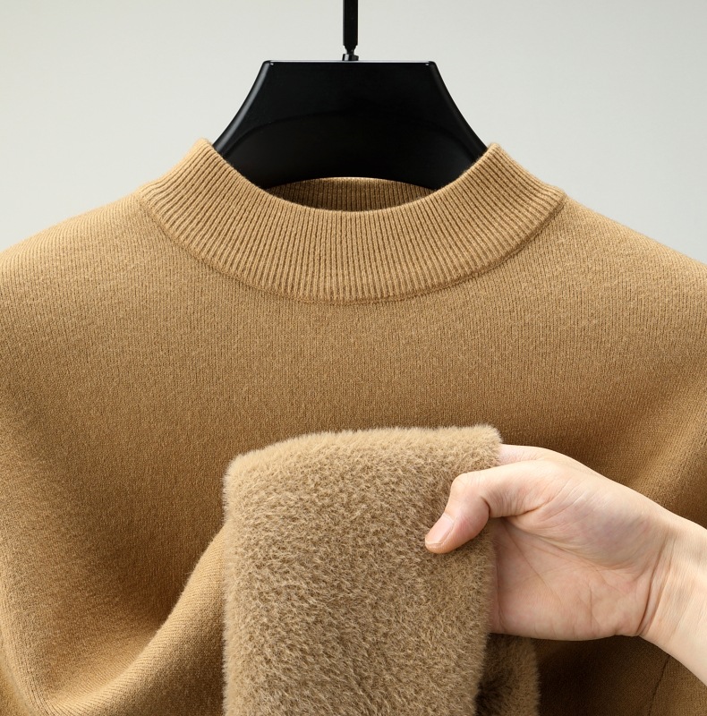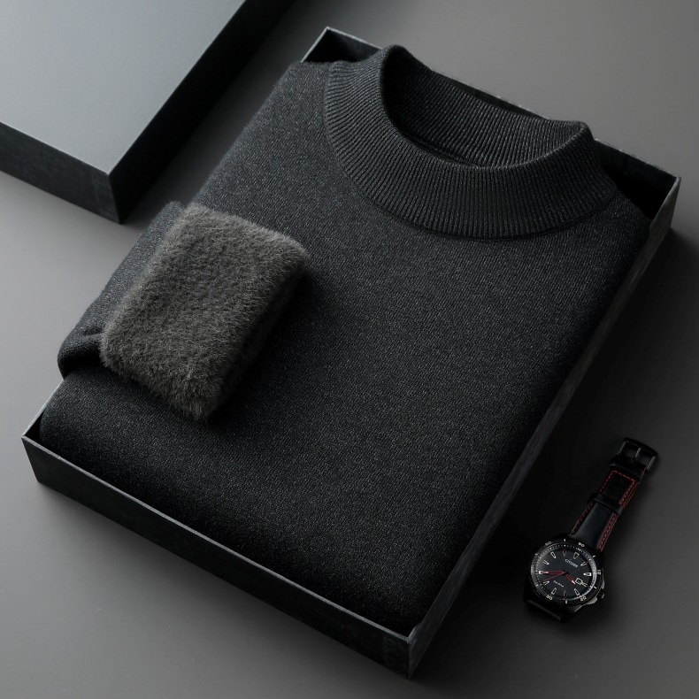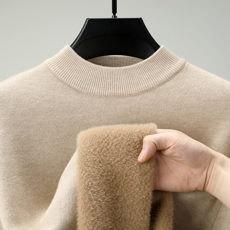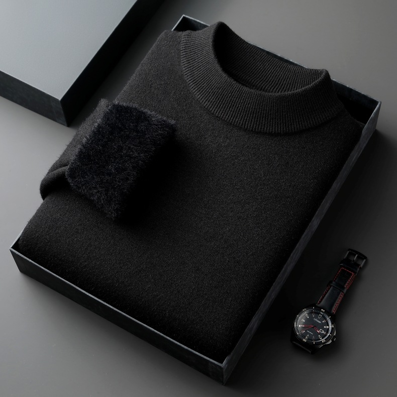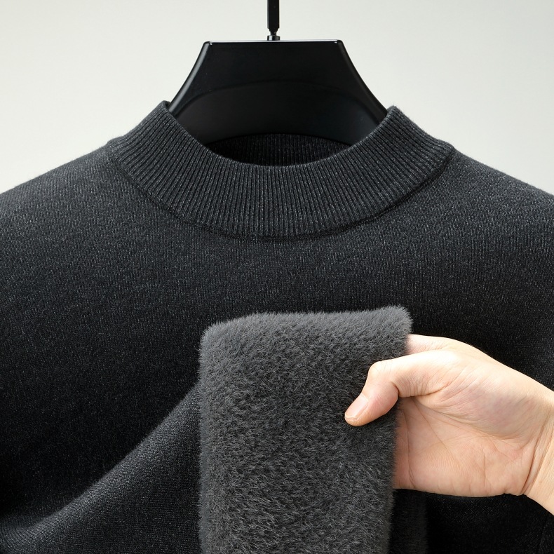 直播爆款男士羊毛衫一体绒2025秋冬季新款半高领加绒轻奢毛衣男装