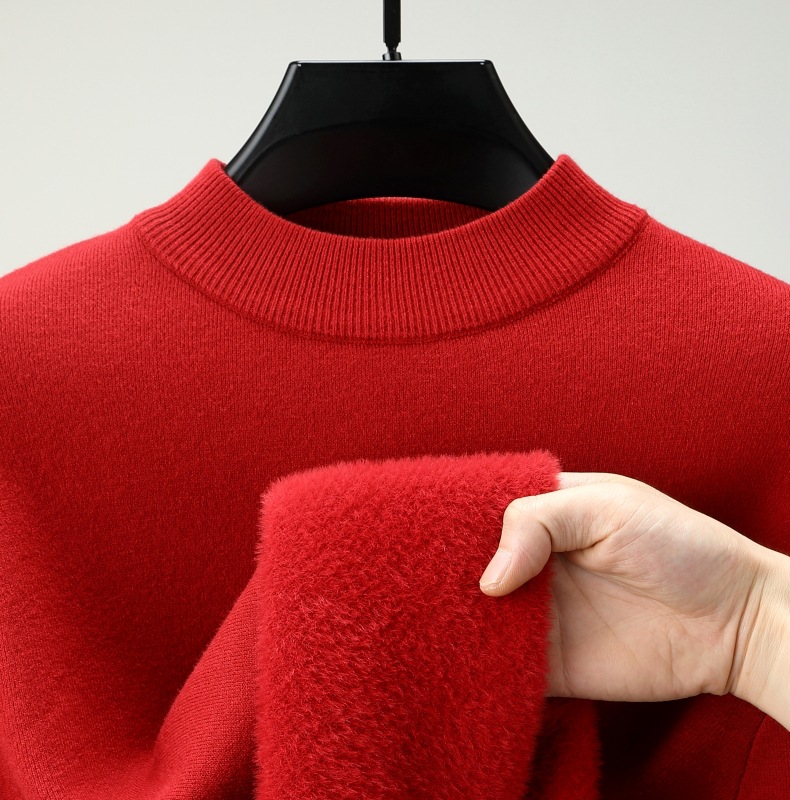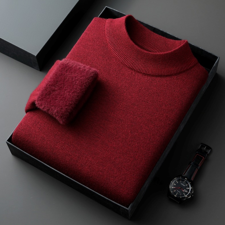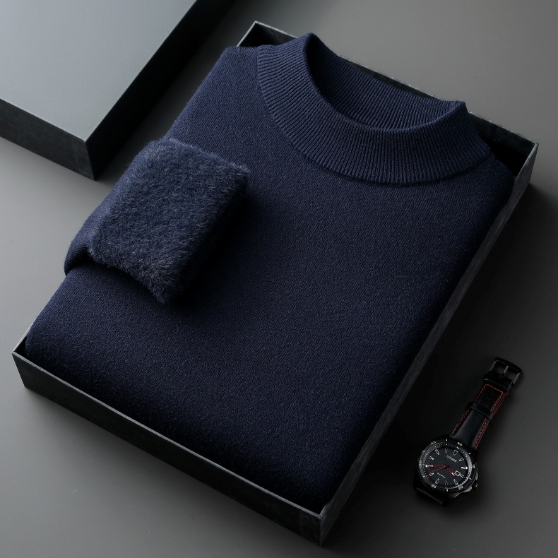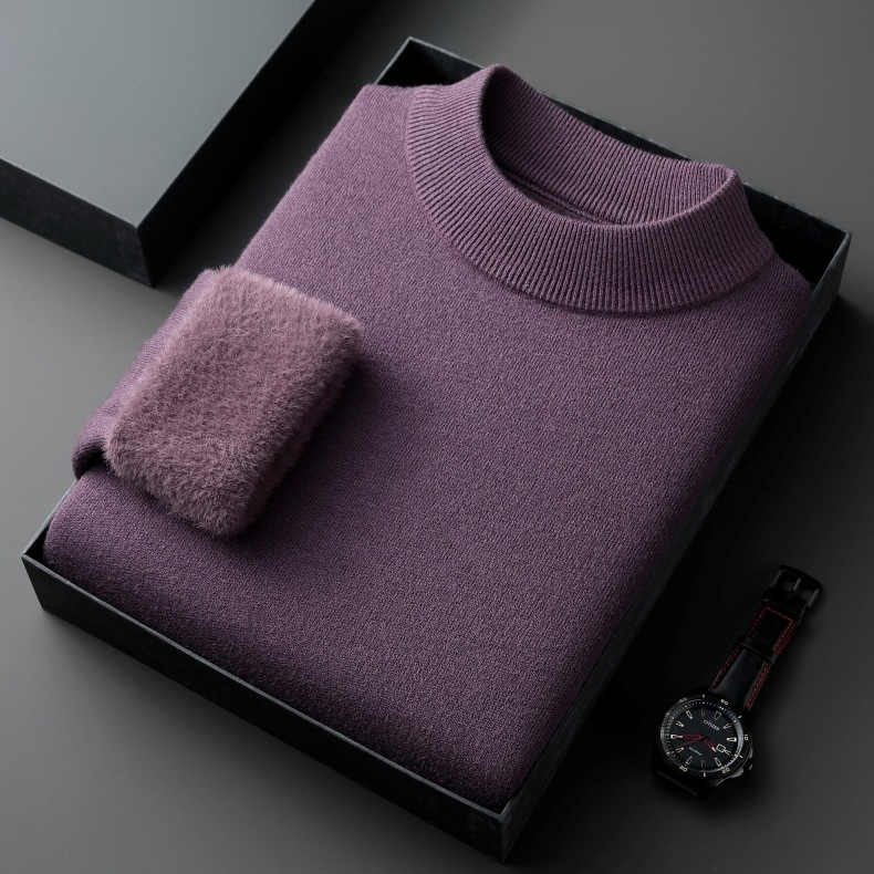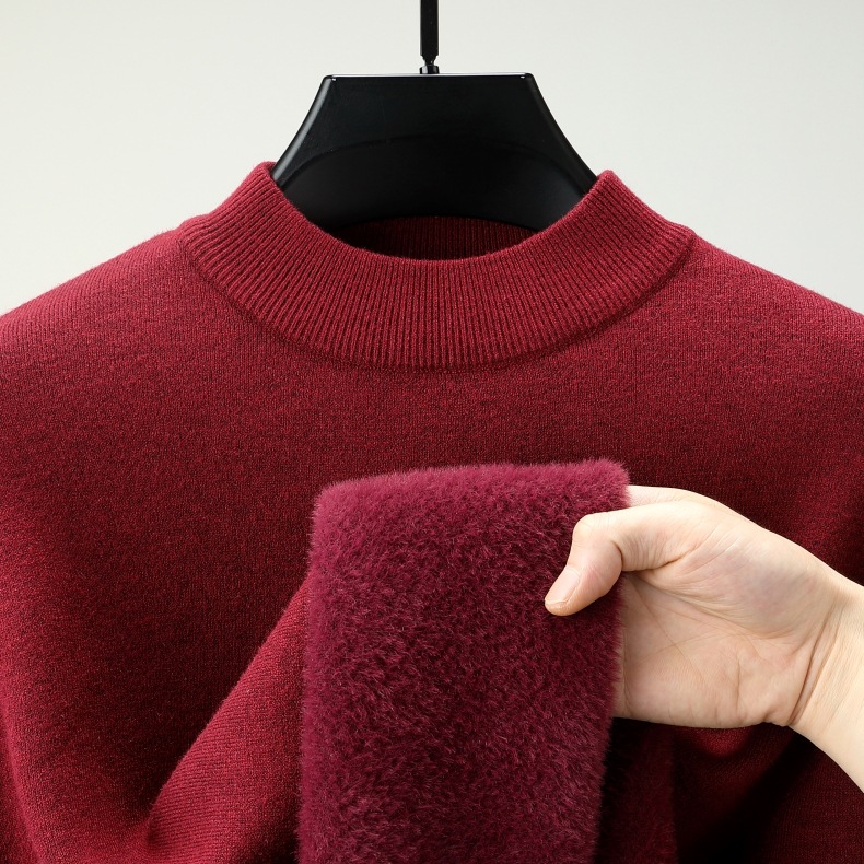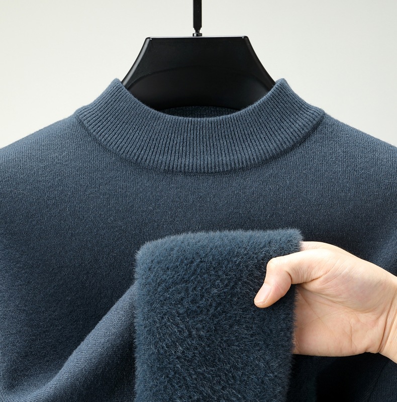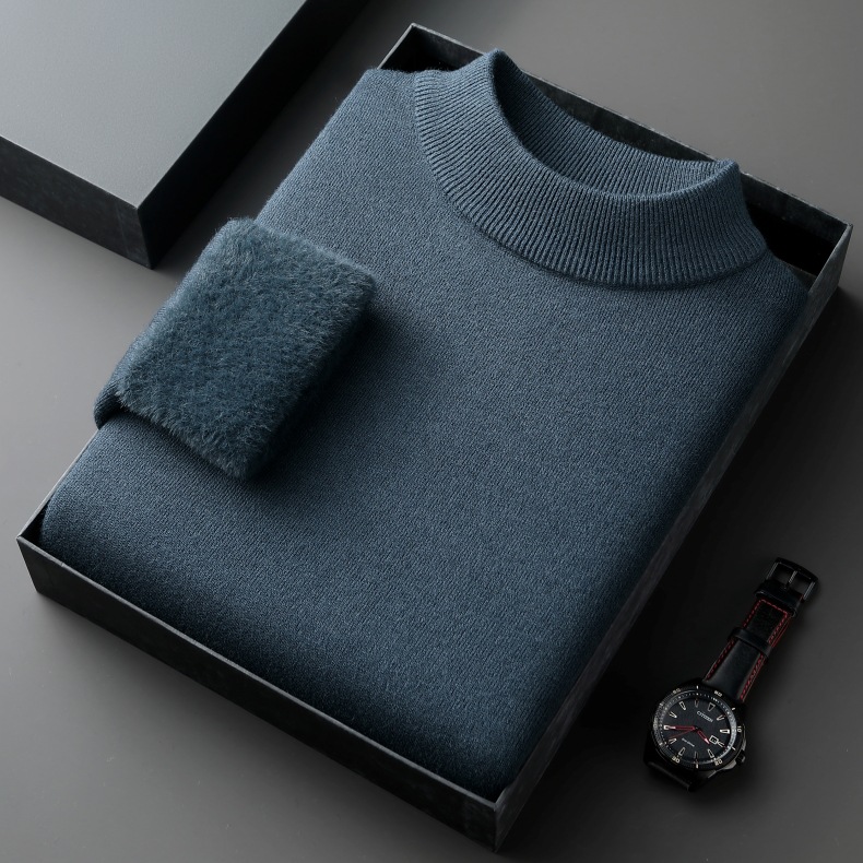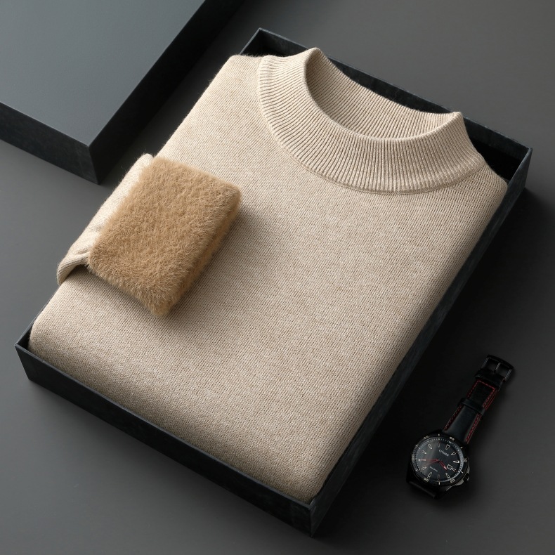 直播爆款男士羊毛衫一体绒2025秋冬季新款半高领加绒轻奢毛衣男装