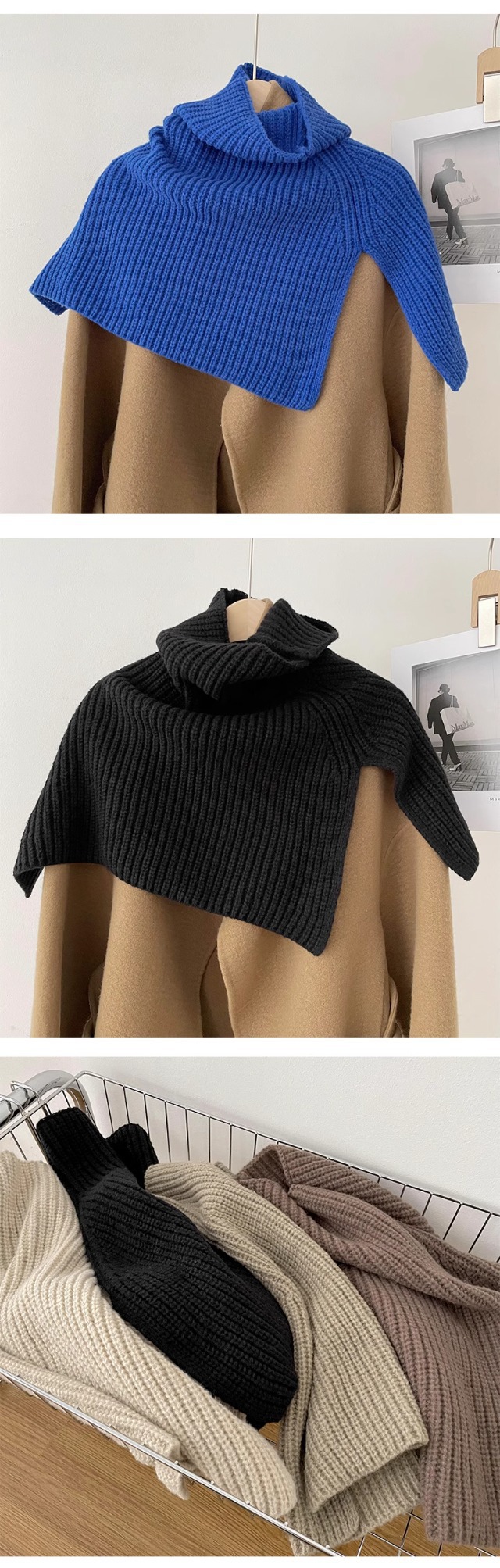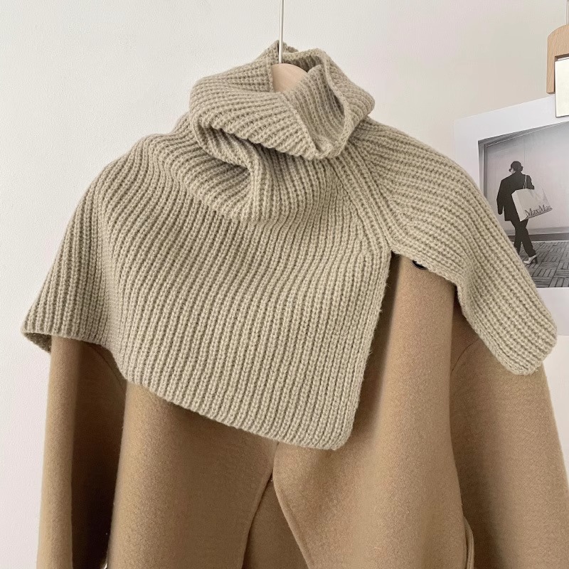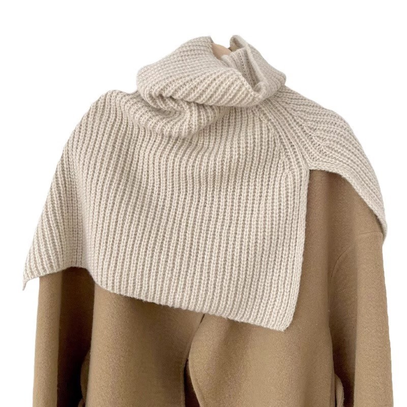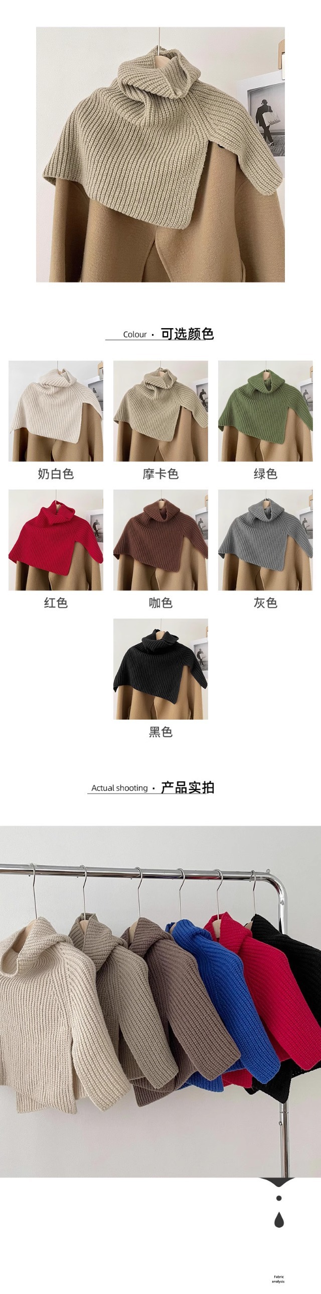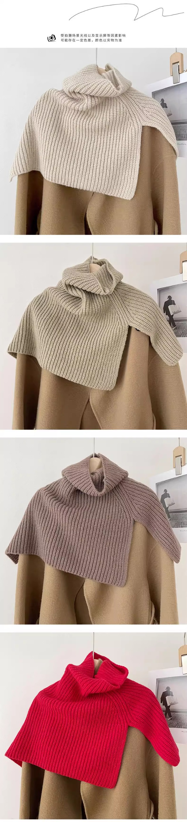 时尚开叉高领披肩女秋冬季韩版百搭针织围巾防寒保暖套头毛线围脖