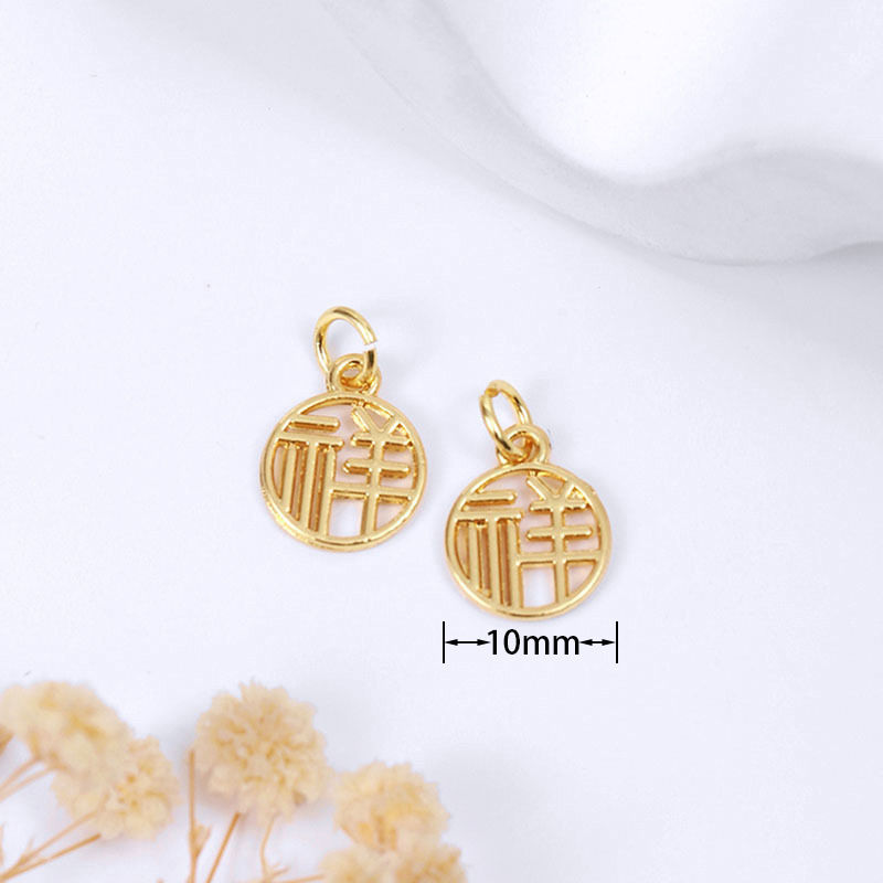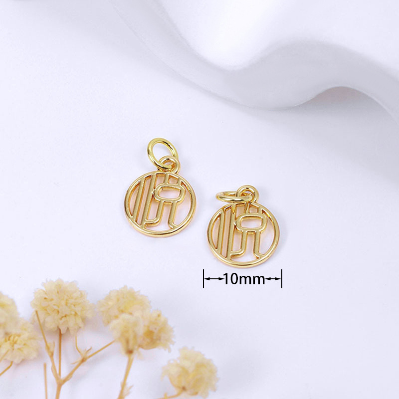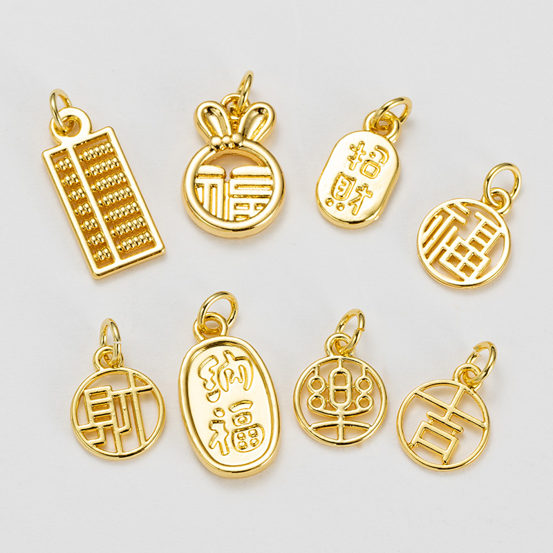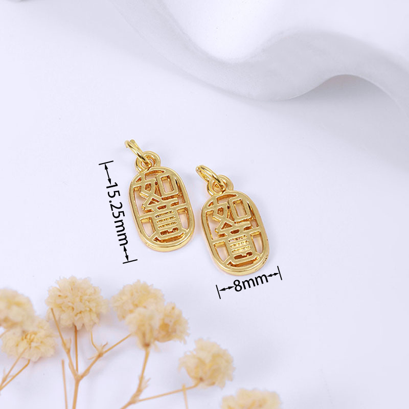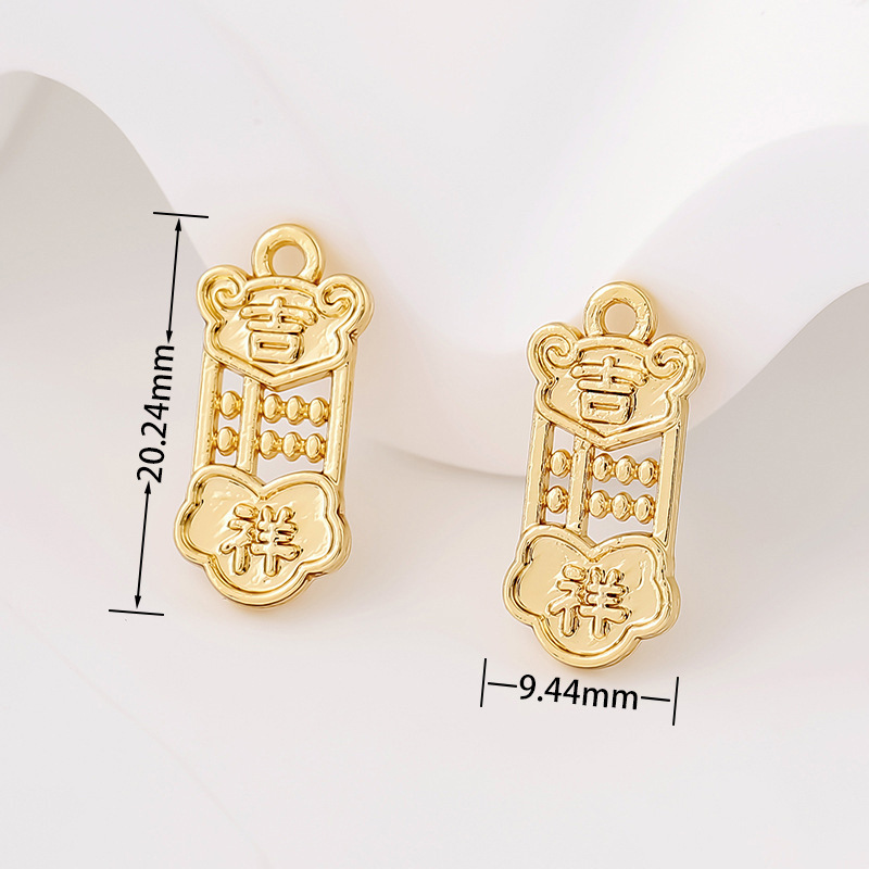 18K真金电镀保色福字算盘小吊坠DIY饰品挂件耳饰耳坠手链项链D104