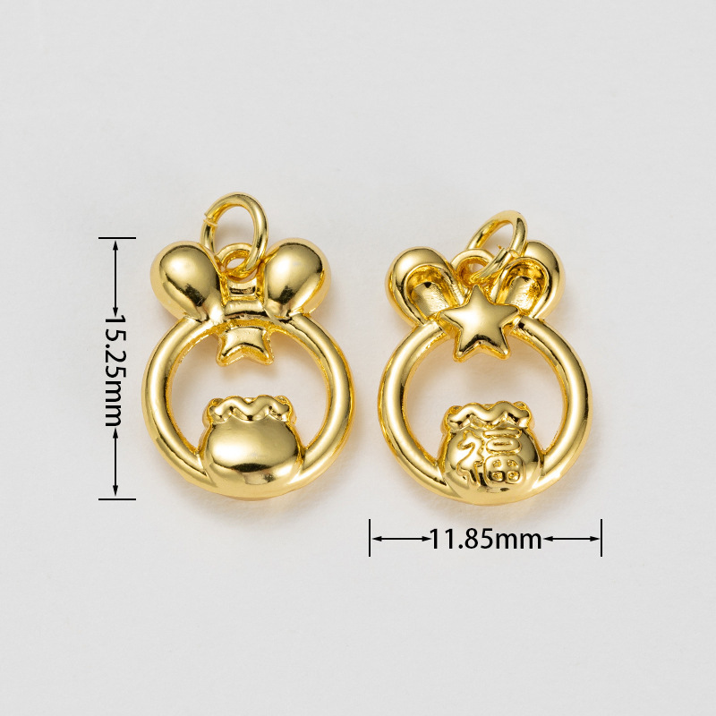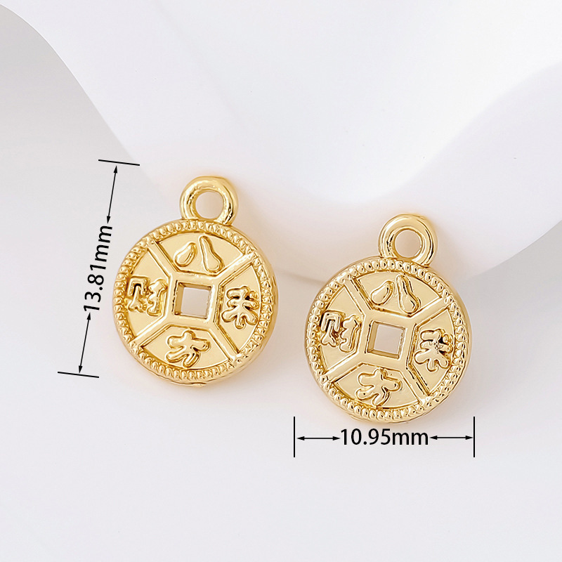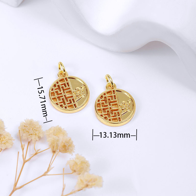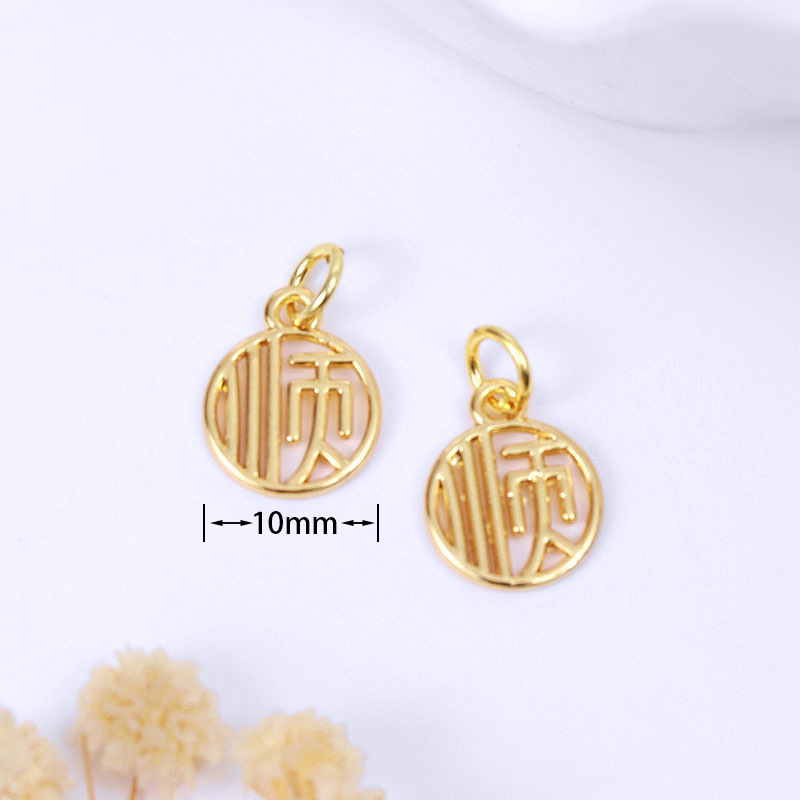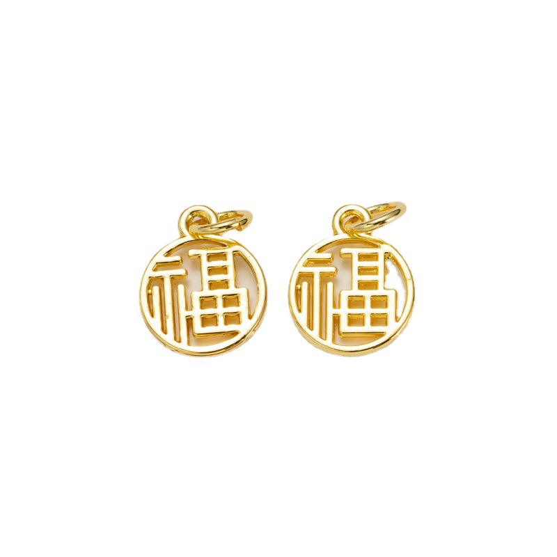 18K真金电镀保色福字算盘小吊坠DIY饰品挂件耳饰耳坠手链项链D104