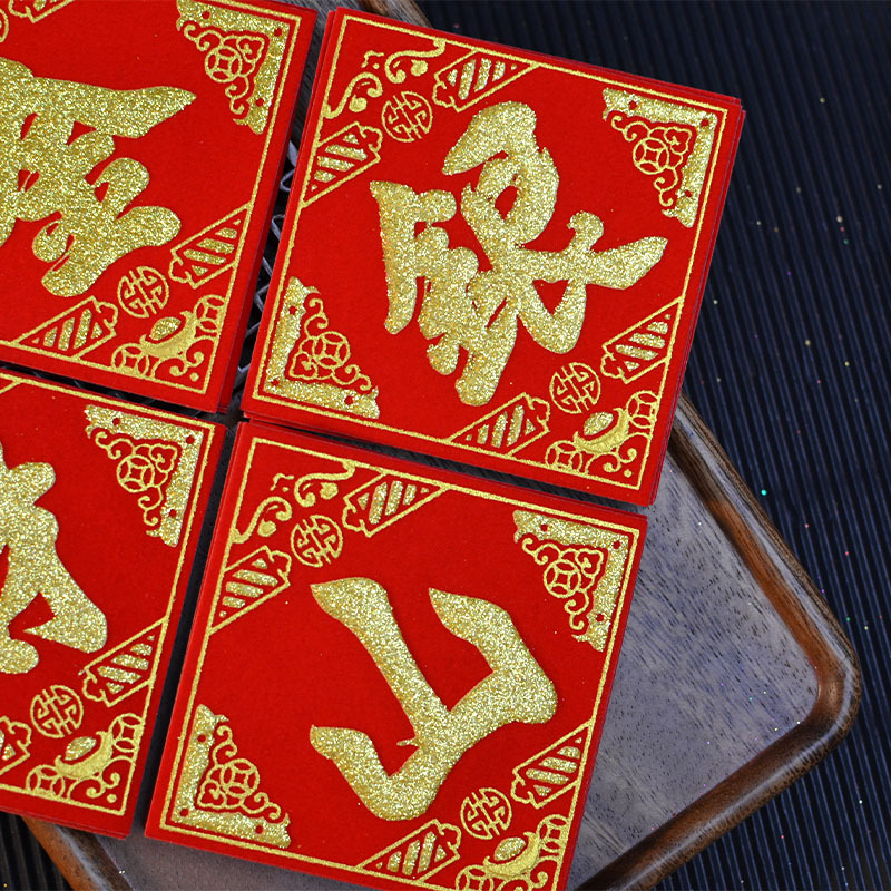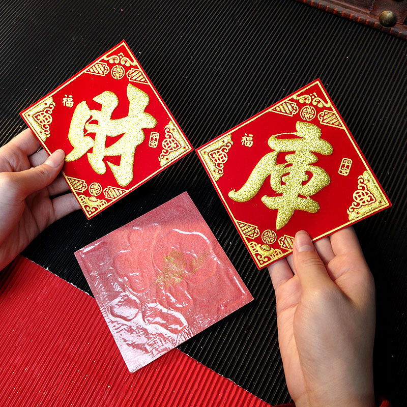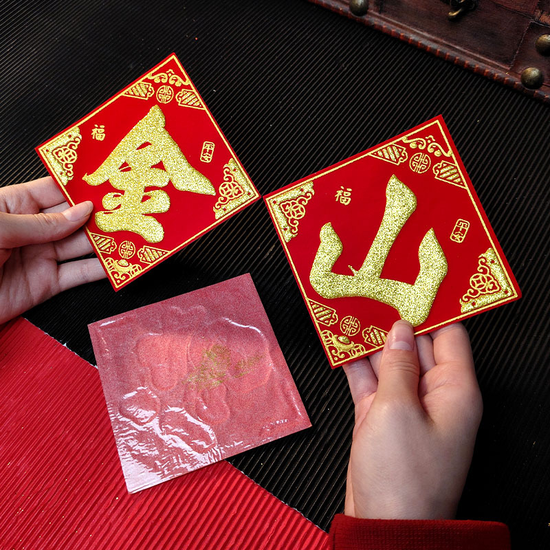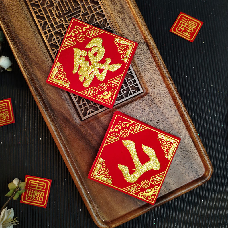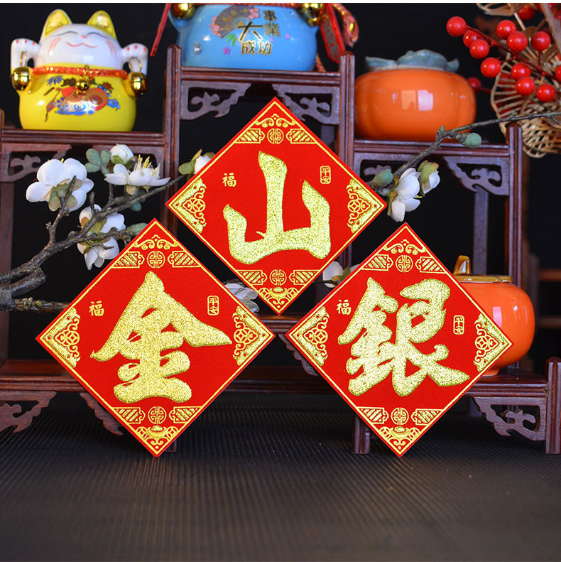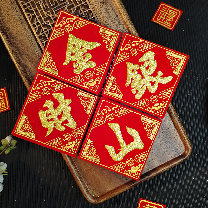 金山银山绒布烫金自粘小福字贴金银财库一桶潮汕中秋节庆折塔装饰