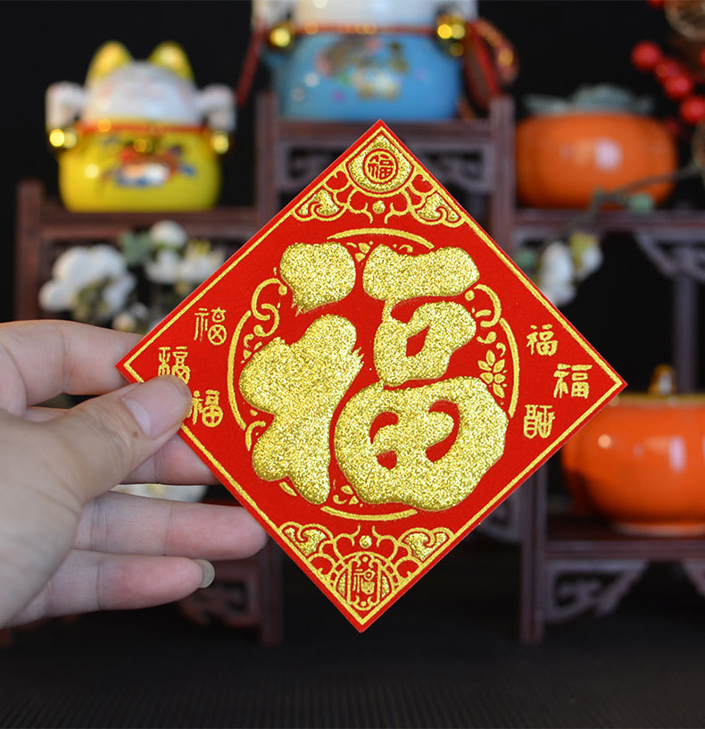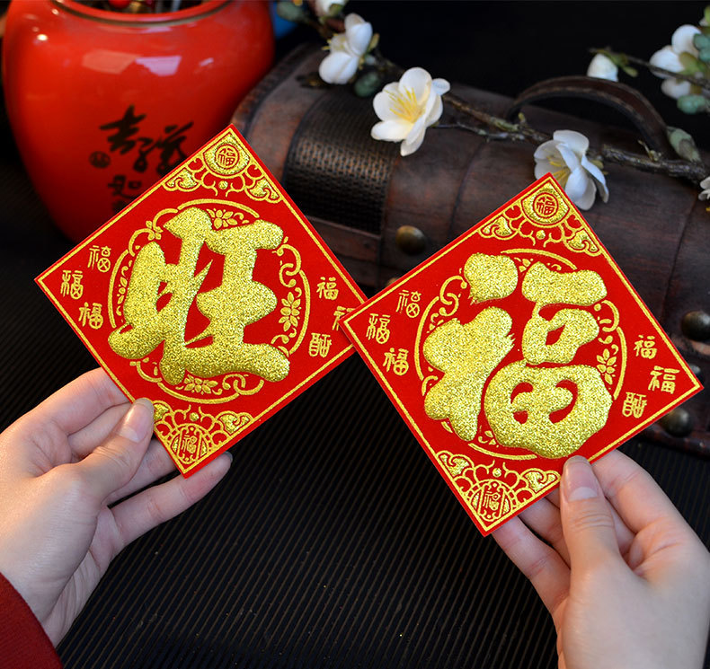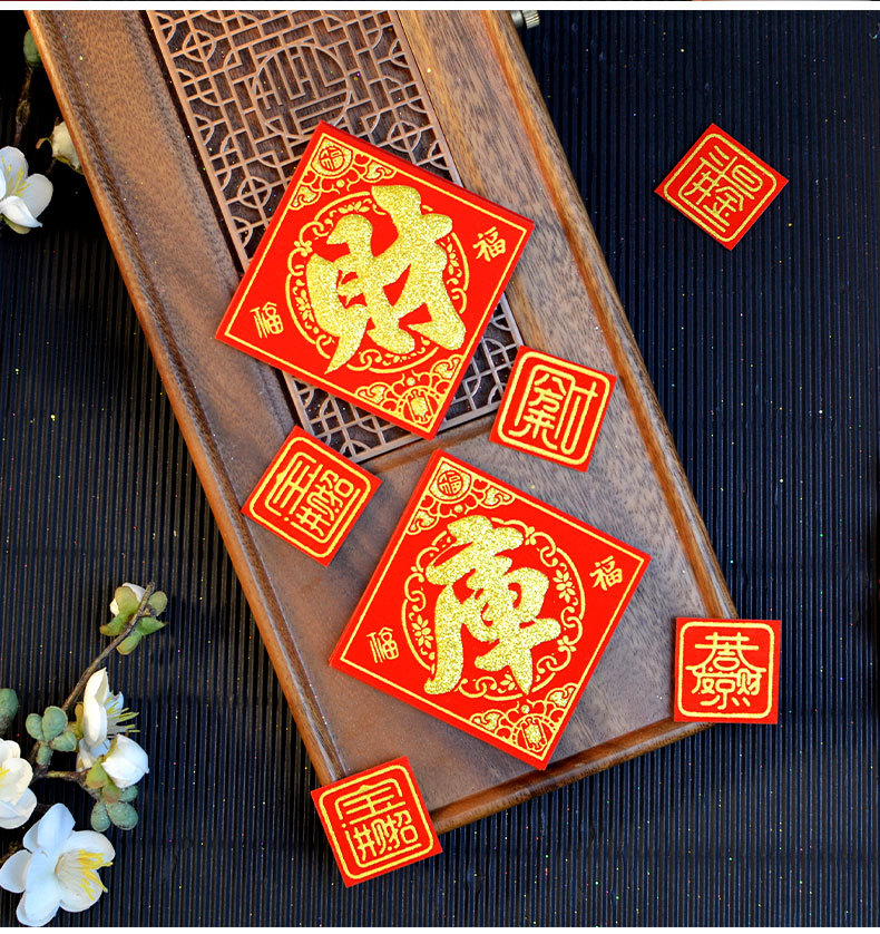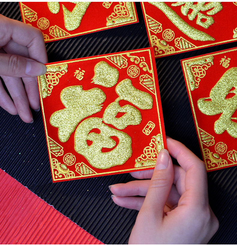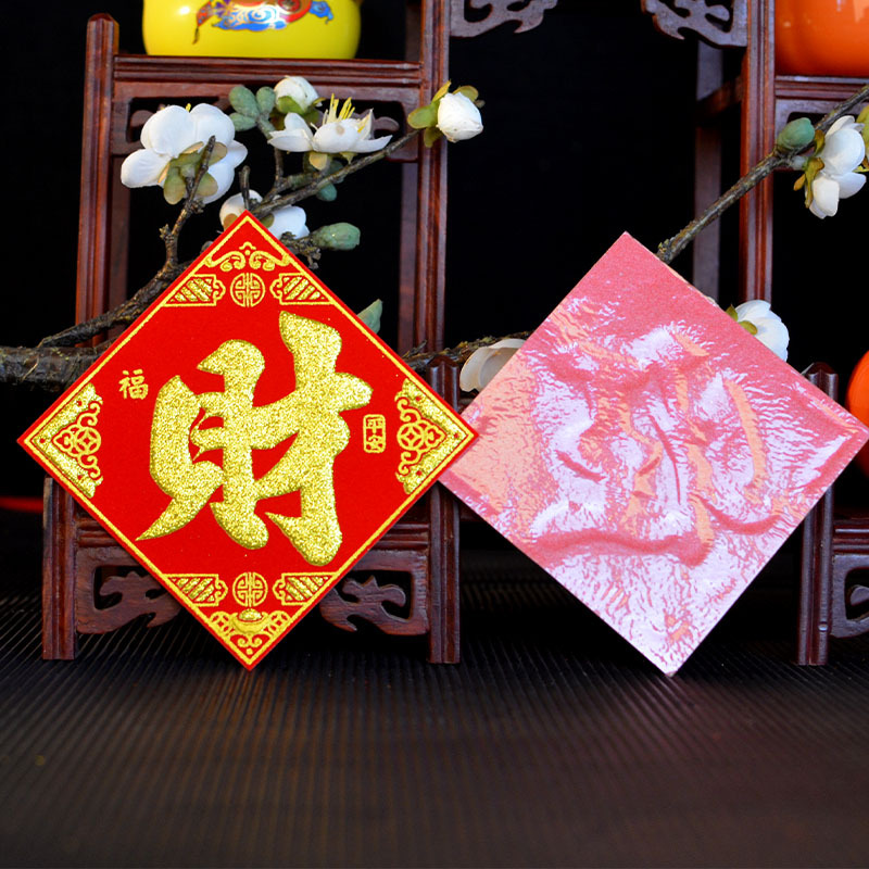 金山银山绒布烫金自粘小福字贴金银财库一桶潮汕中秋节庆折塔装饰