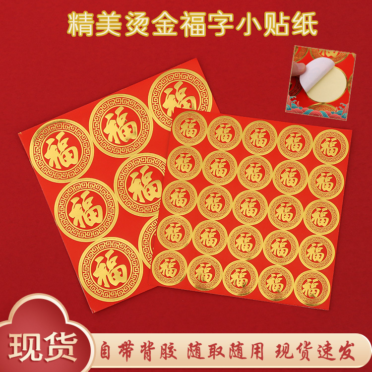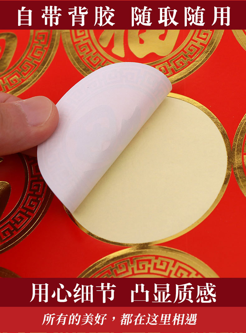 烫金新年福字贴自粘春节乔迁福字封口贴pvc红包请柬装饰贴纸现货