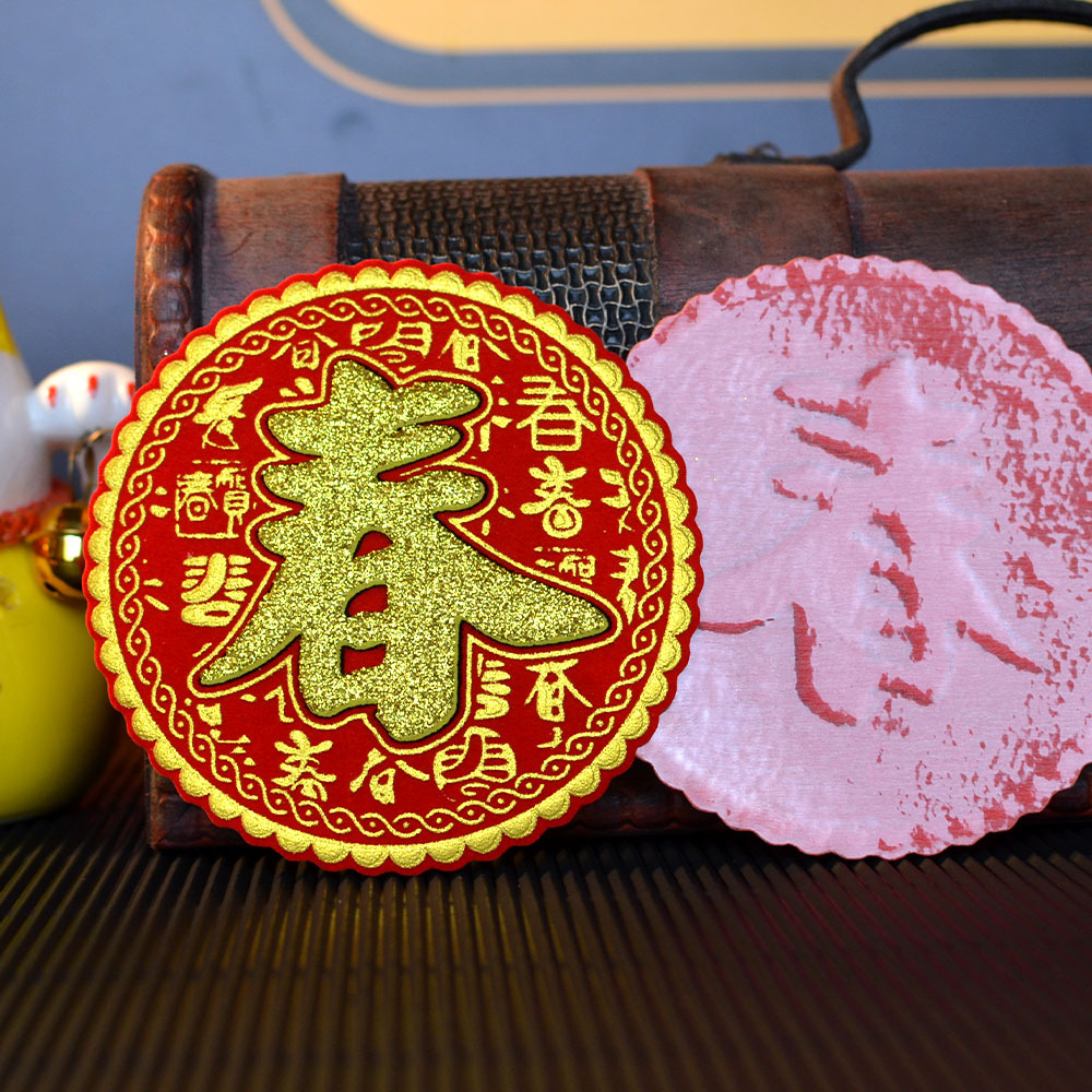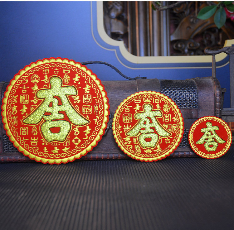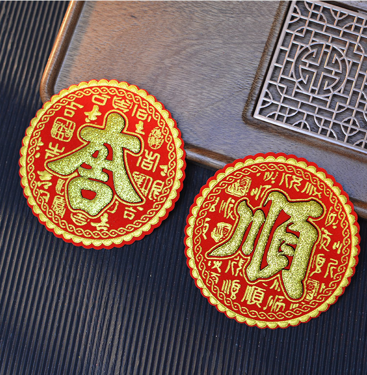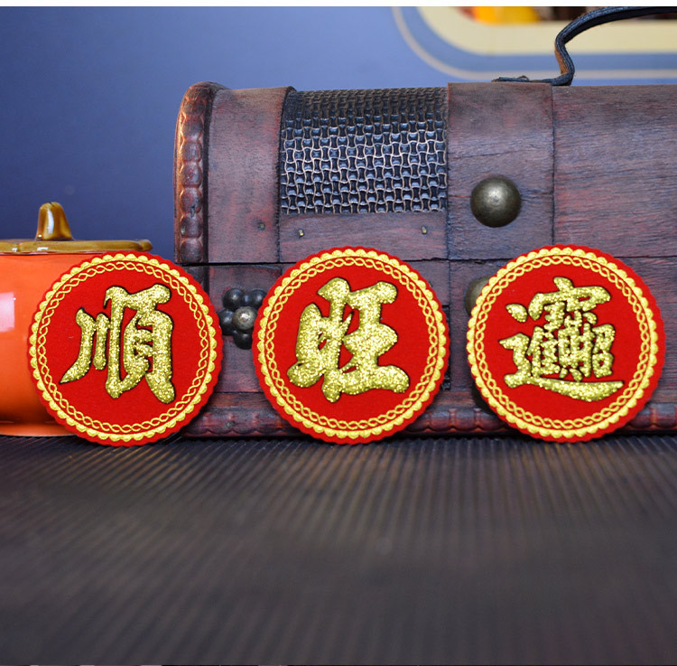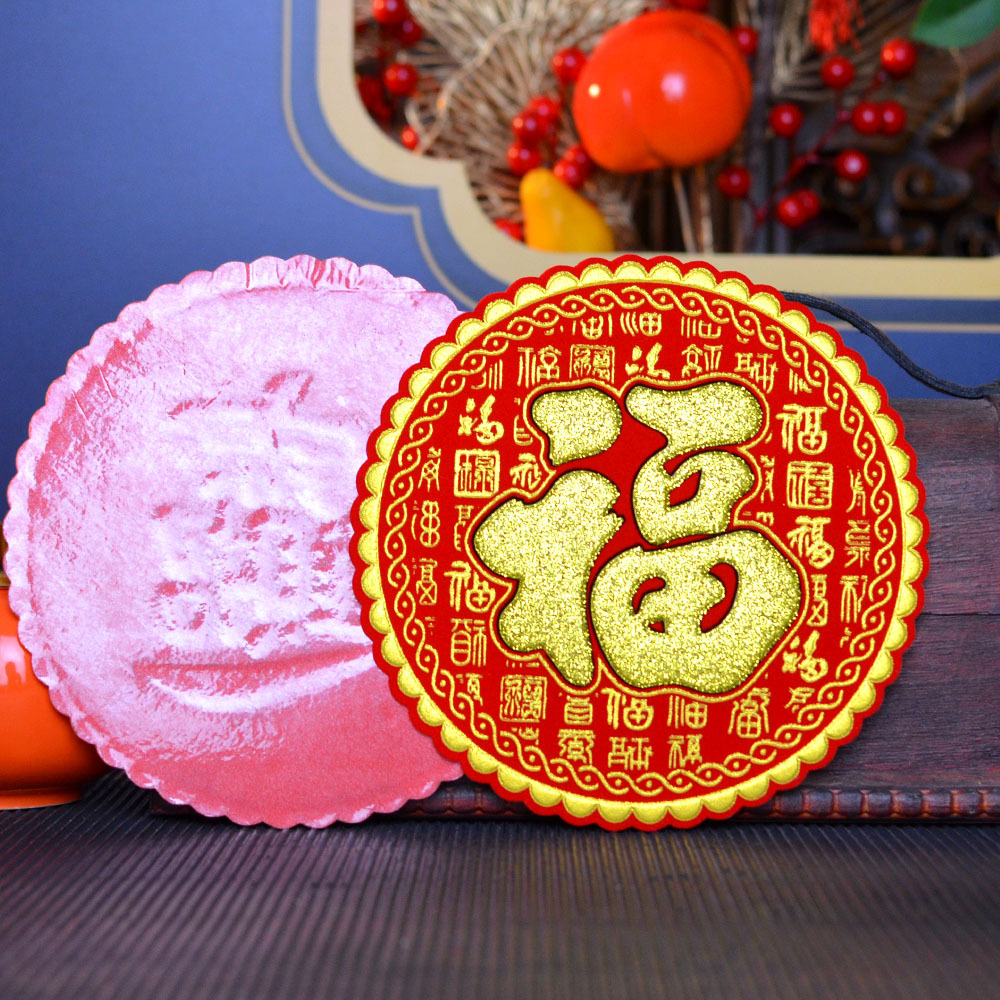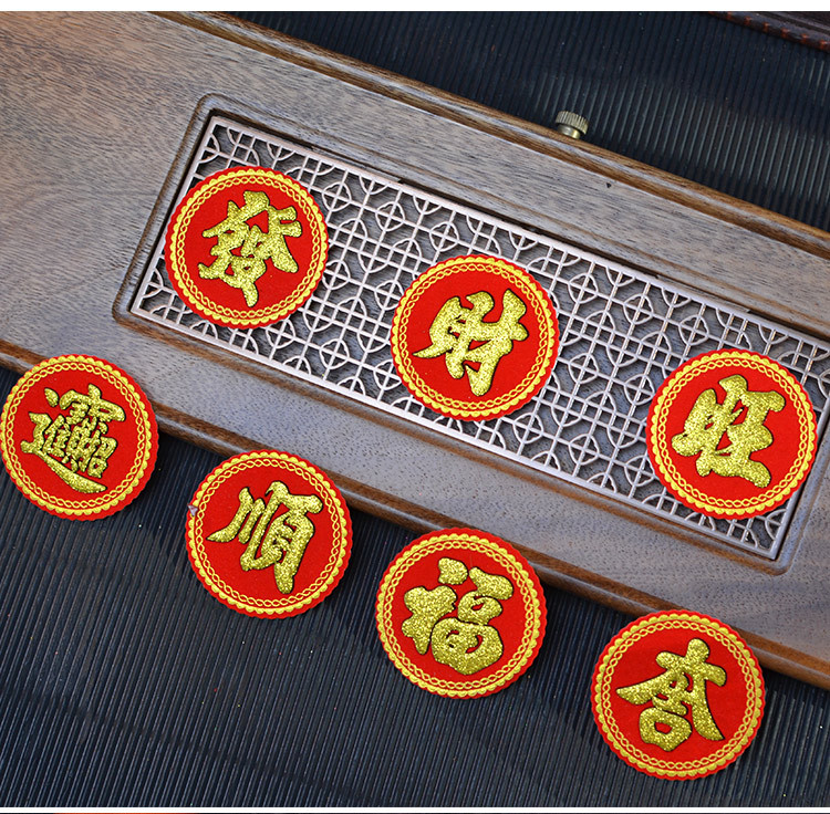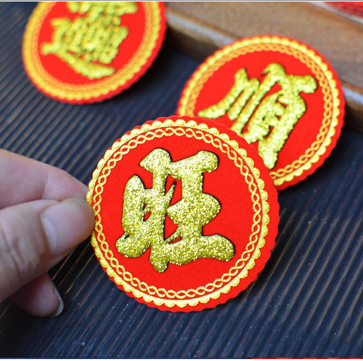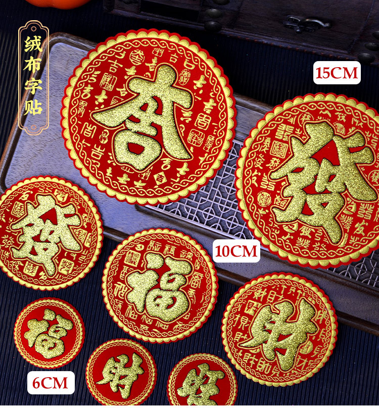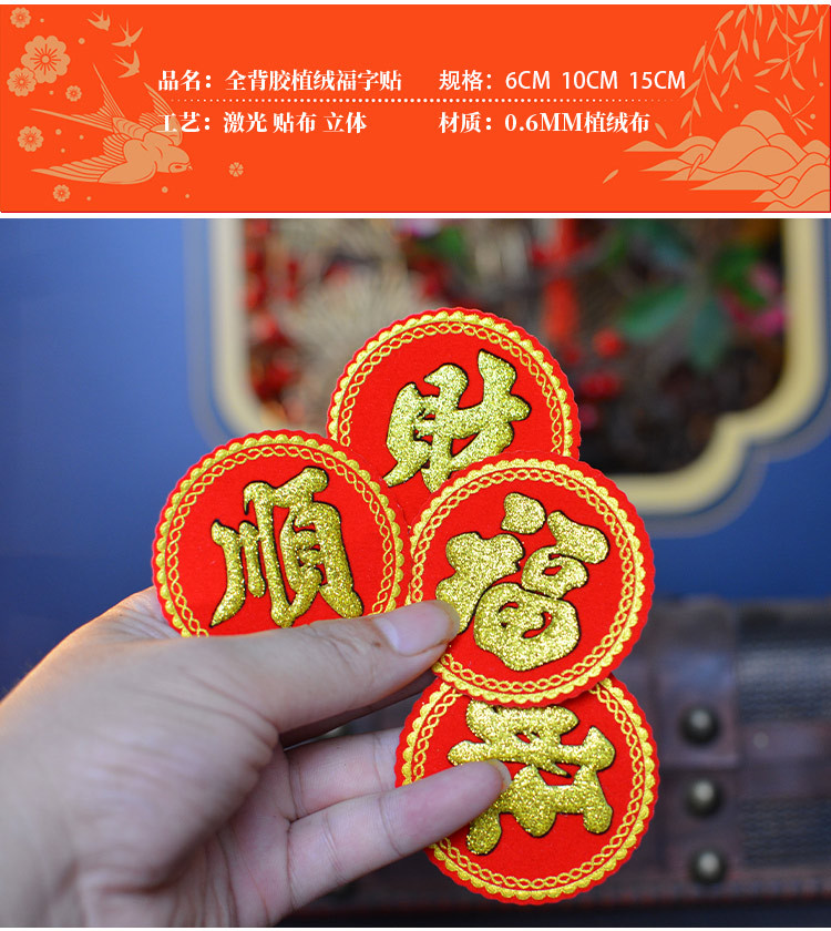 迷你小福字贴百财旺发宝大吉绒布自粘烫金中秋春节元宵折糖塔配饰