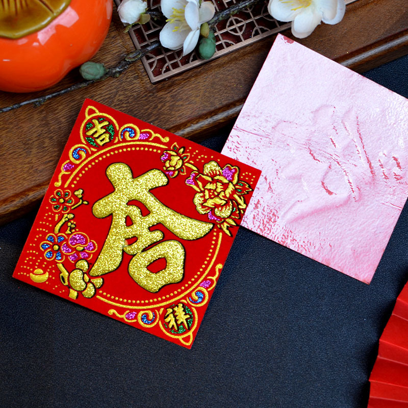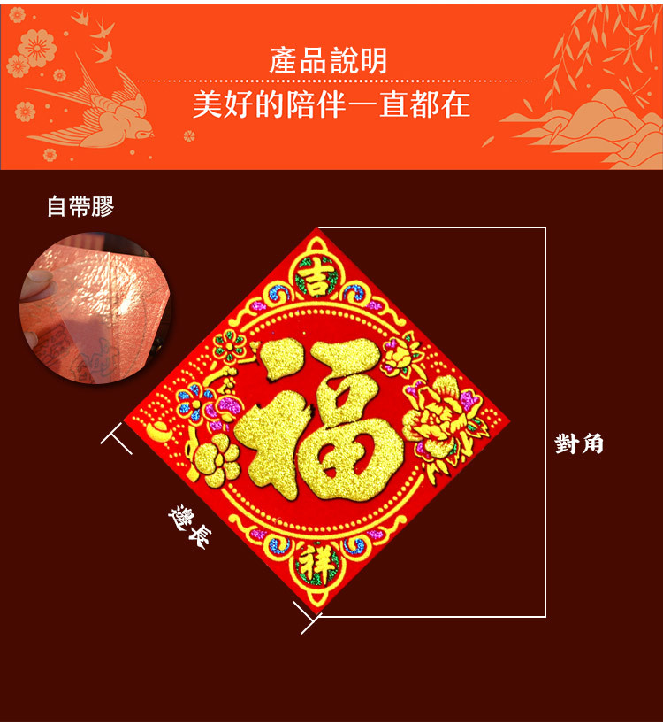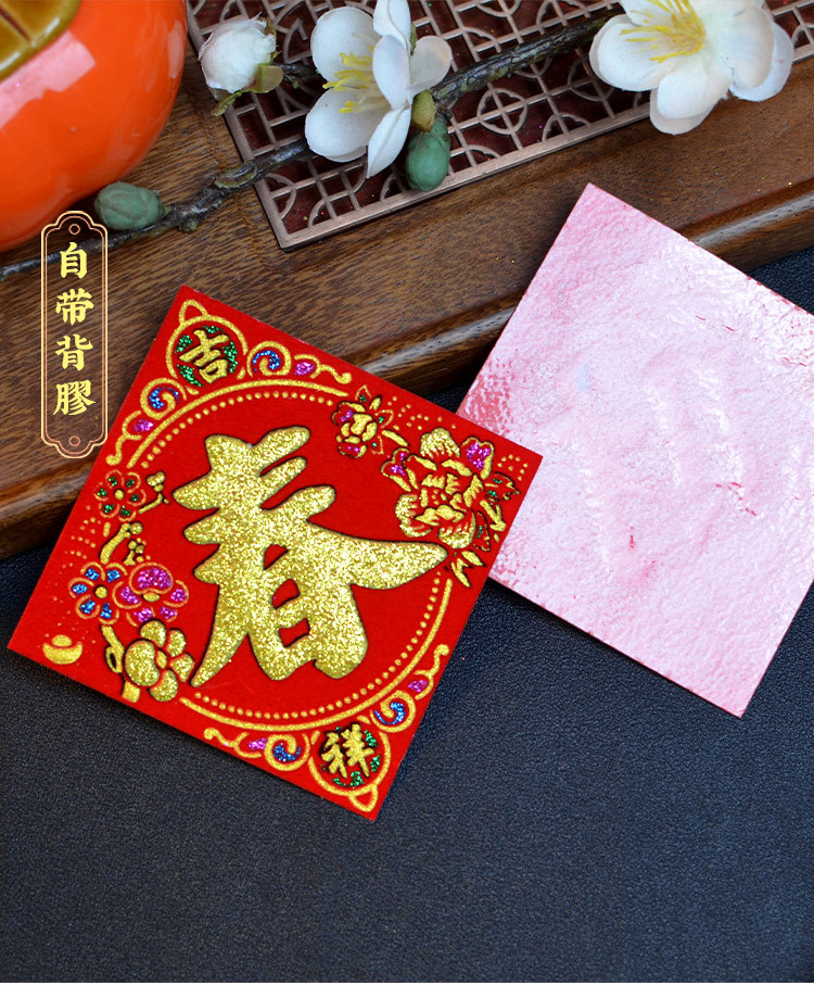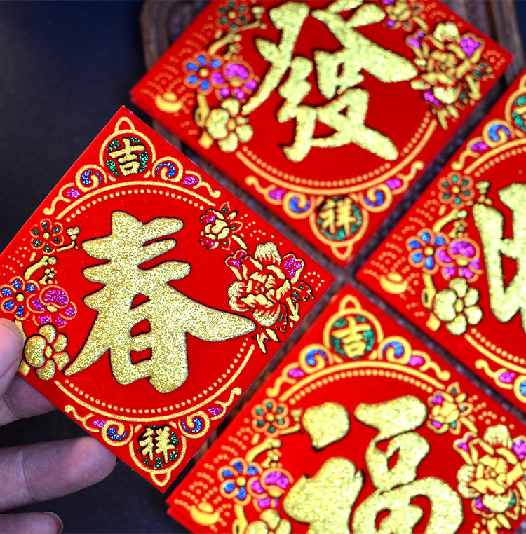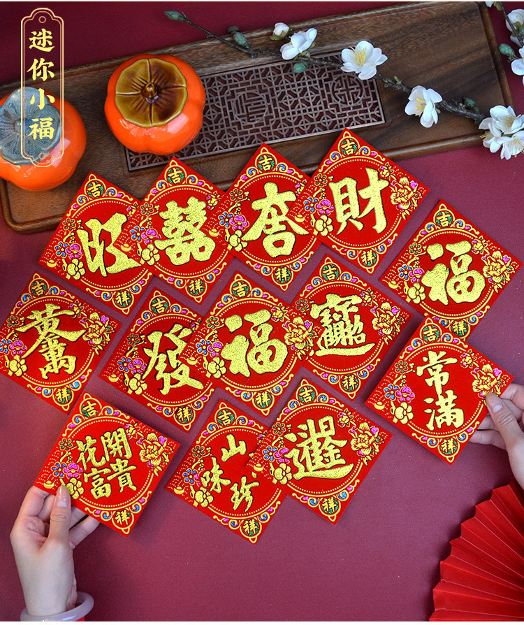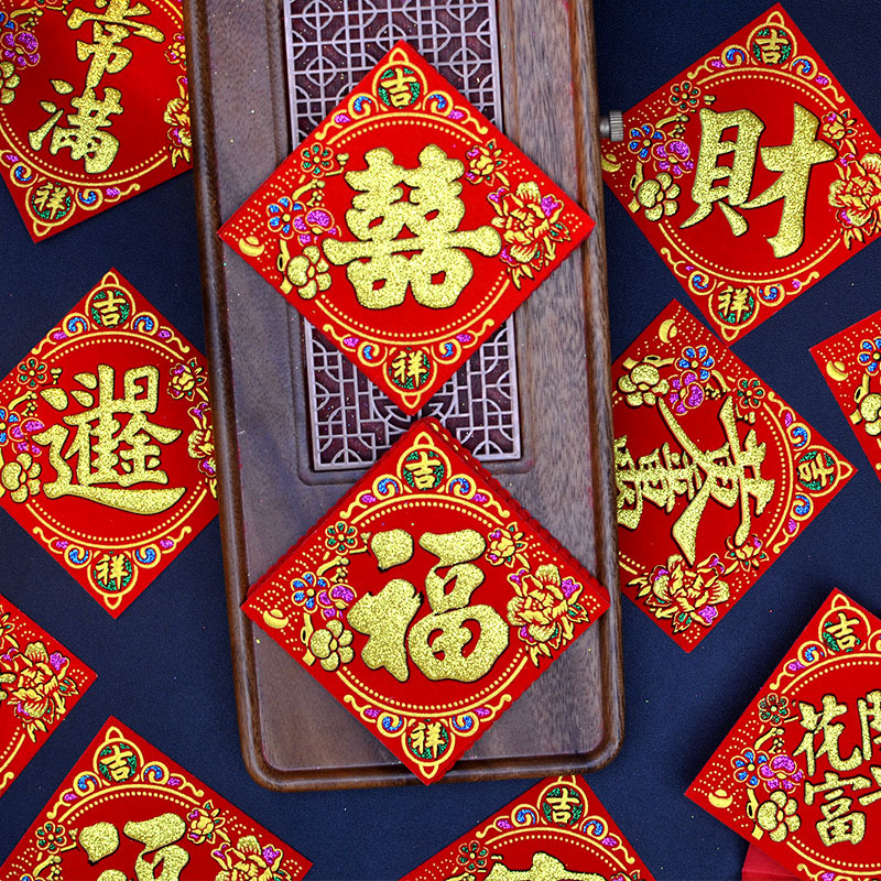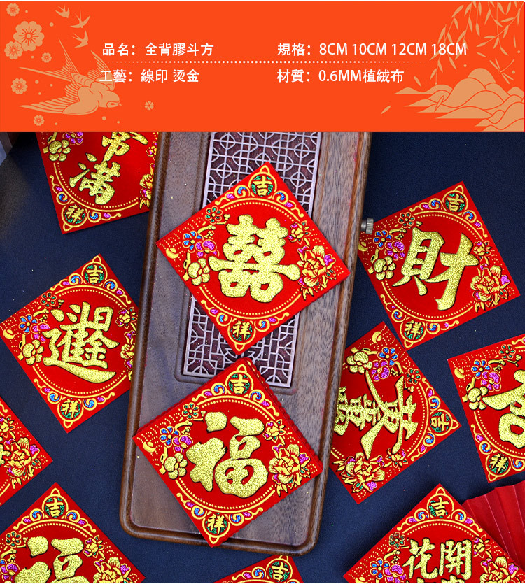 台湾版绒布小福字贴8cm福宝大吉春字10常满米桶贴自带胶山珍海味
