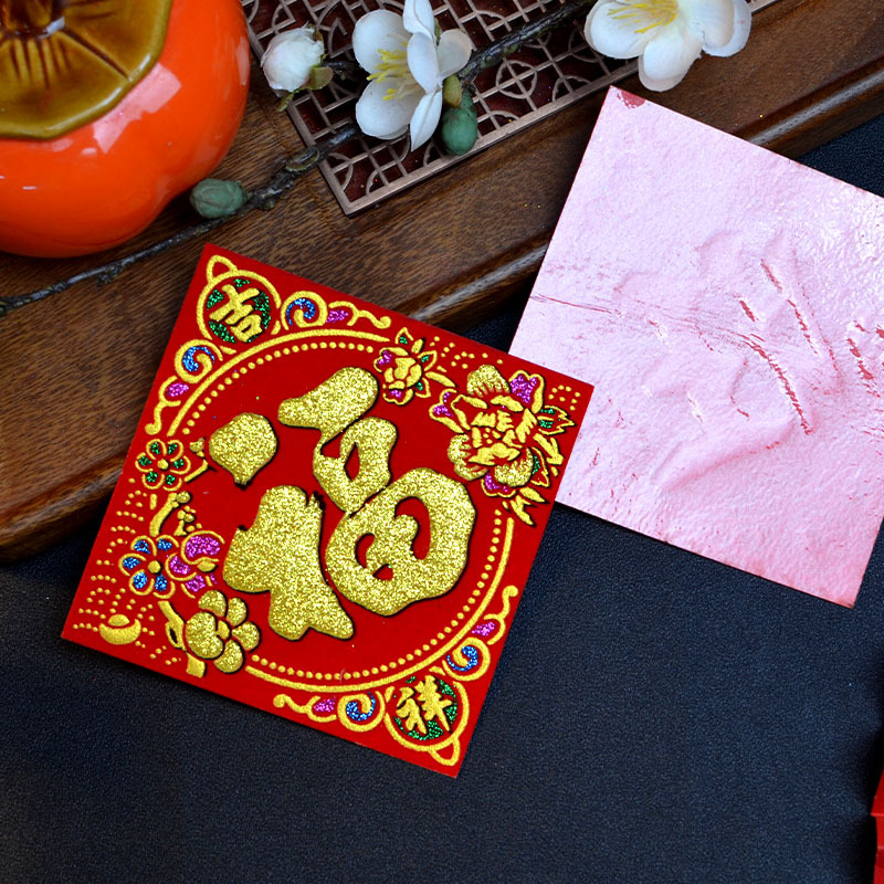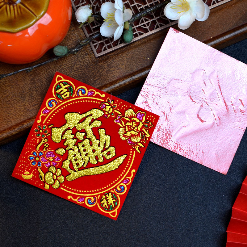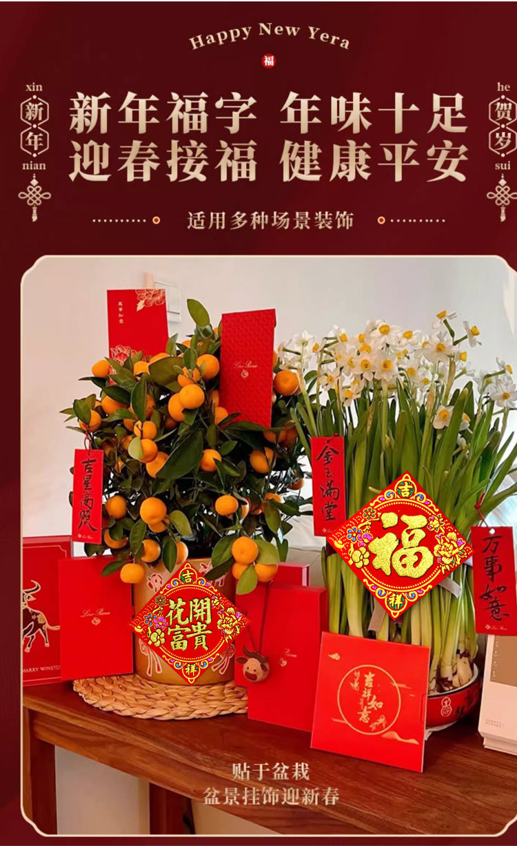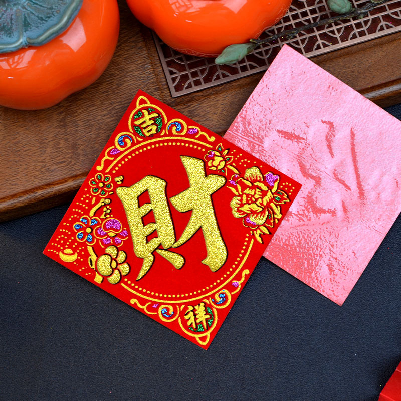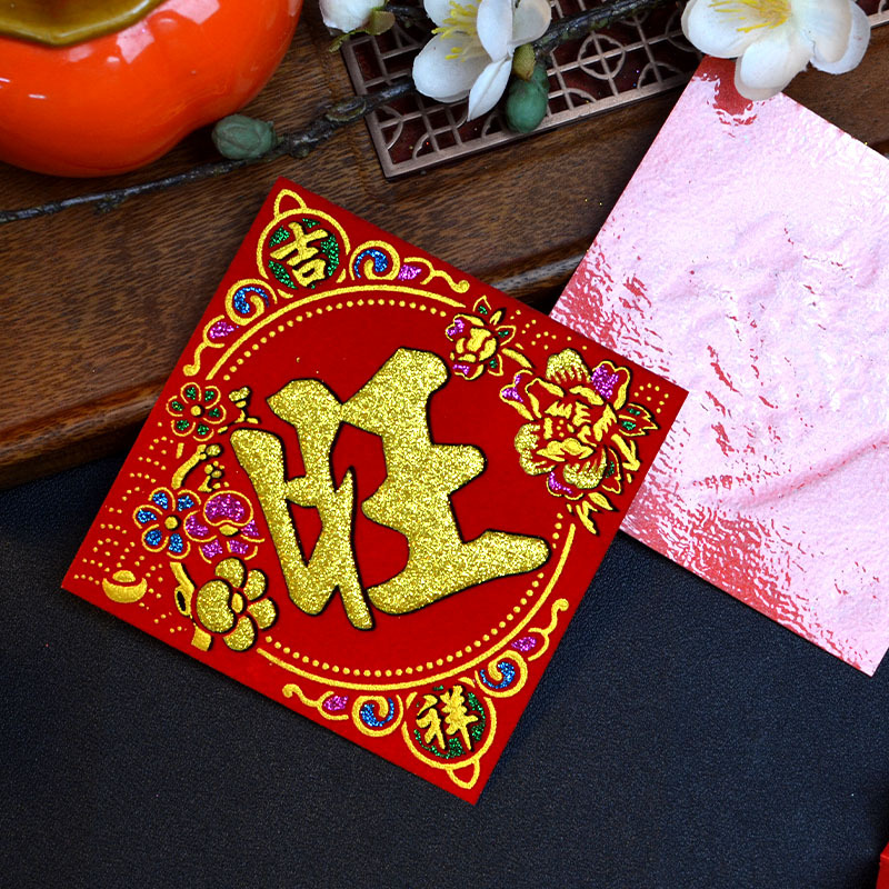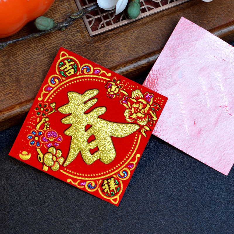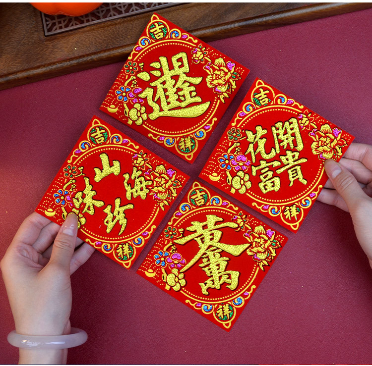 台湾版绒布小福字贴8cm福宝大吉春字10常满米桶贴自带胶山珍海味