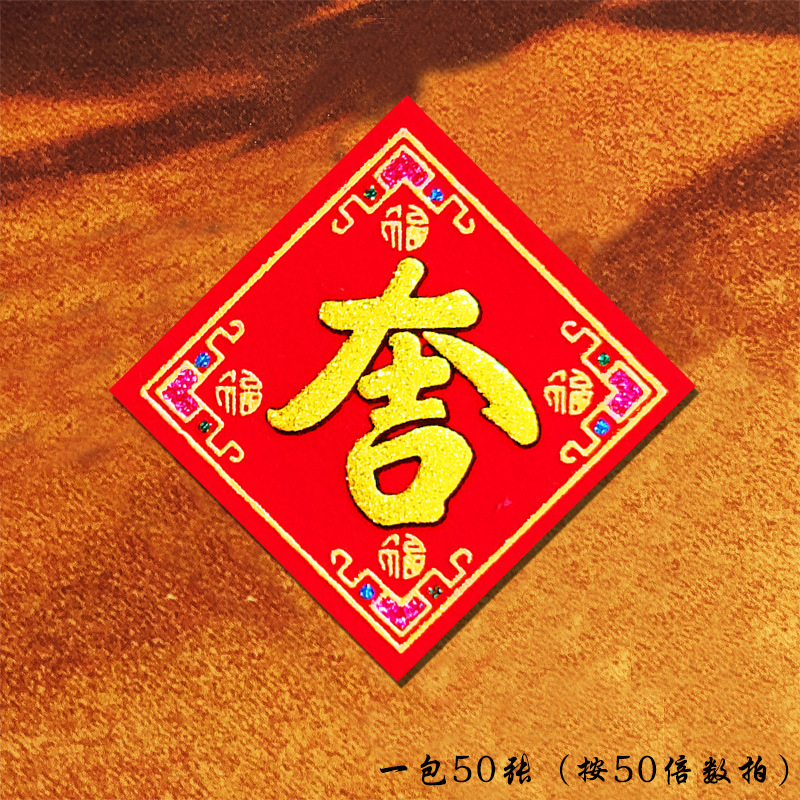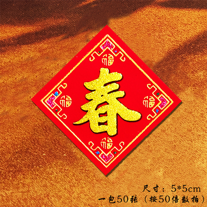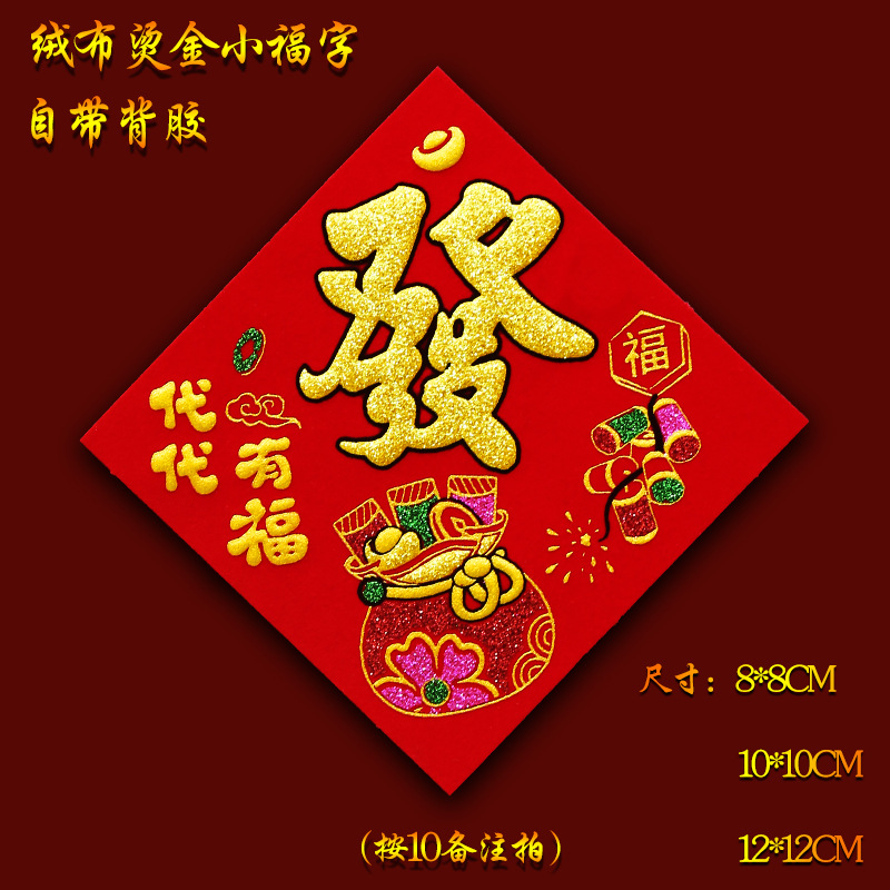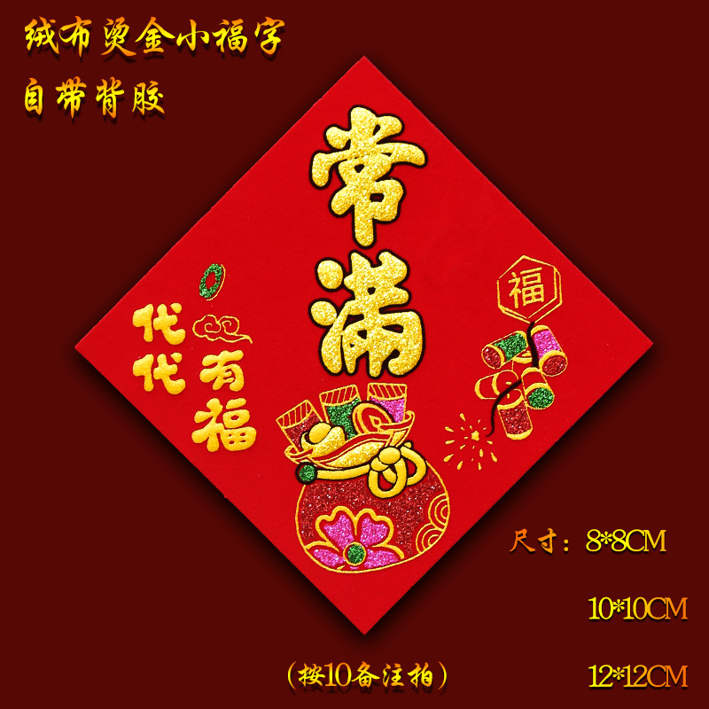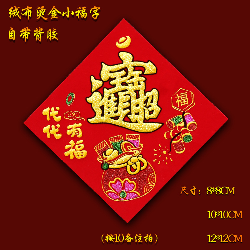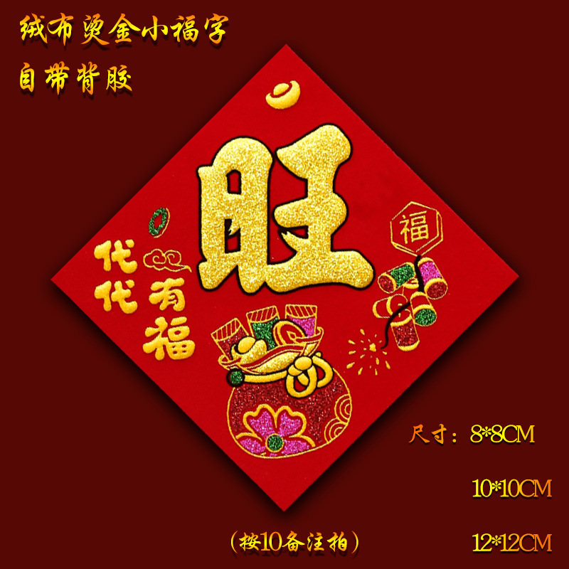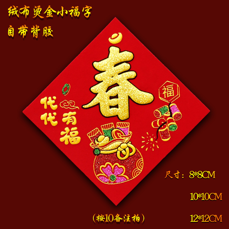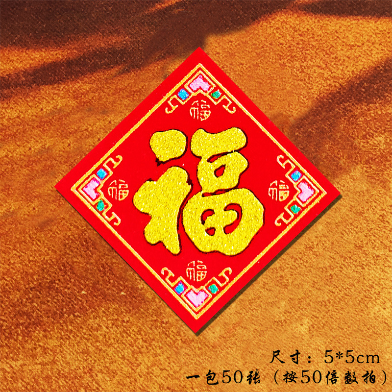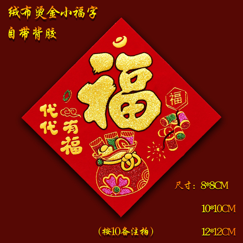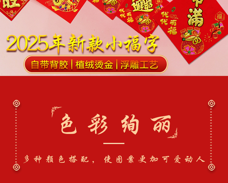 2025过新年小福字贴绒布自带胶年画批发迷你小型贴纸室内装饰用品