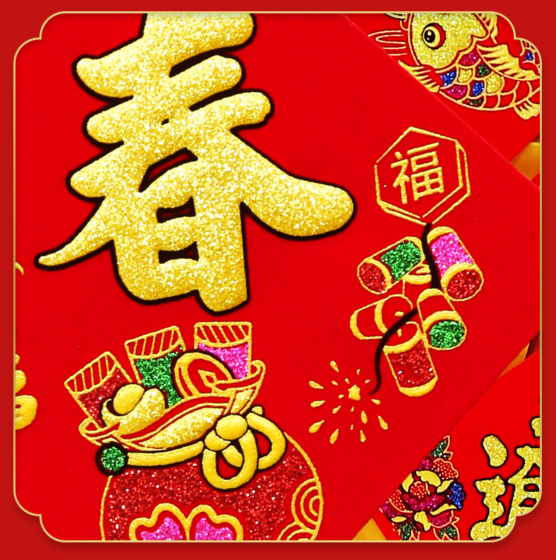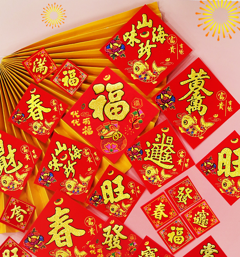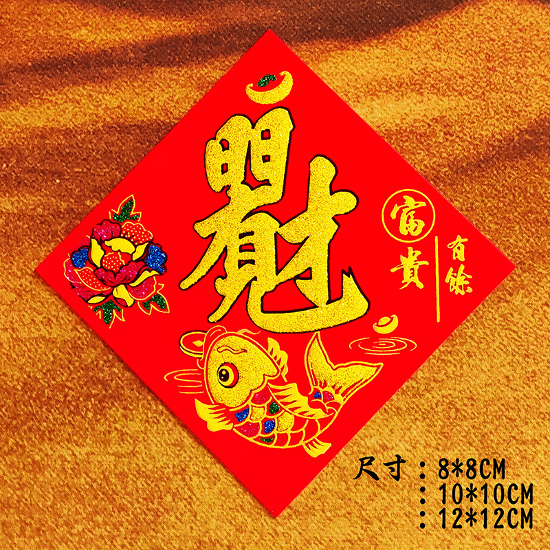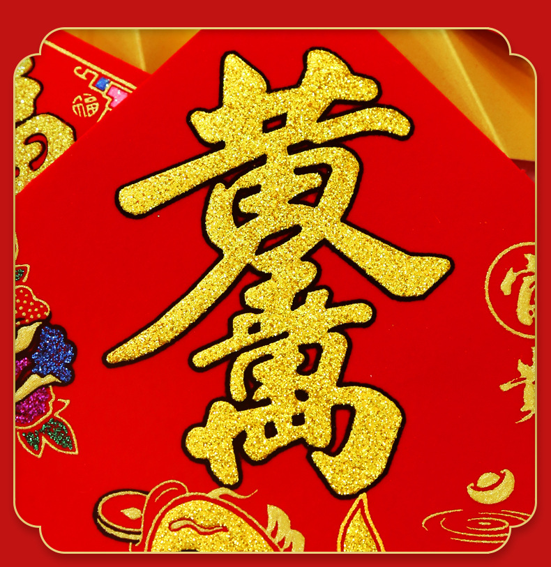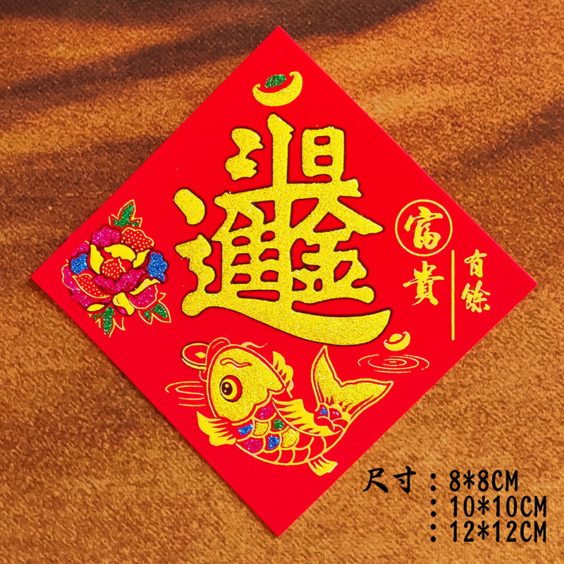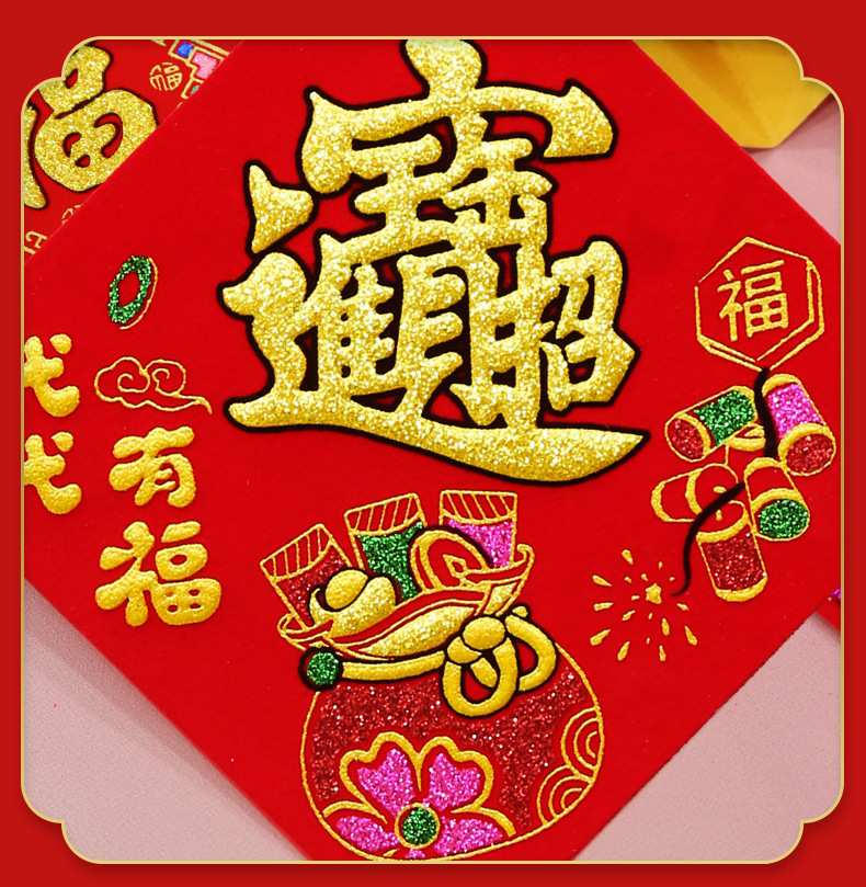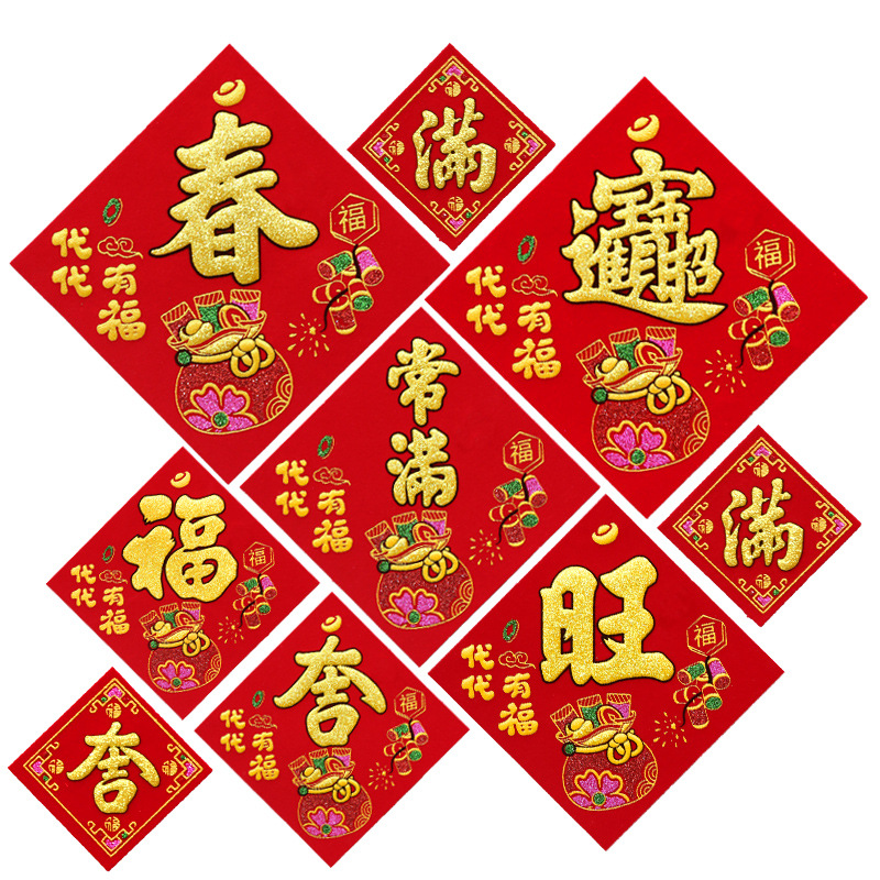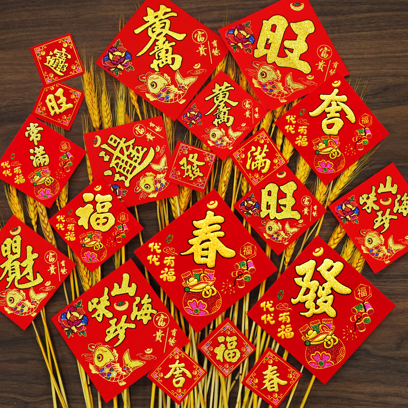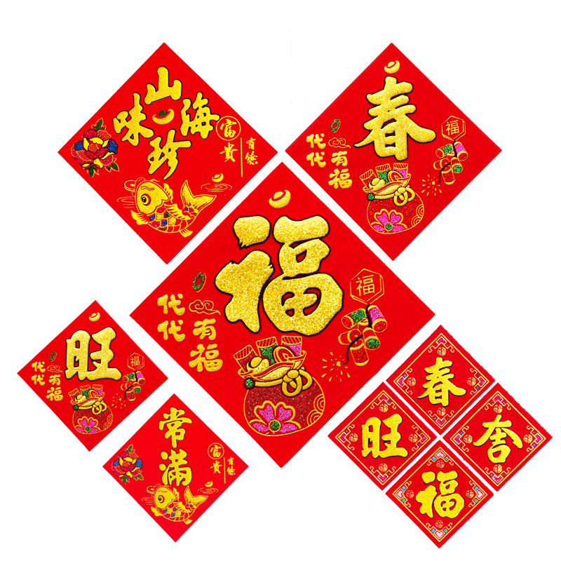 2025过新年小福字贴绒布自带胶年画批发迷你小型贴纸室内装饰用品