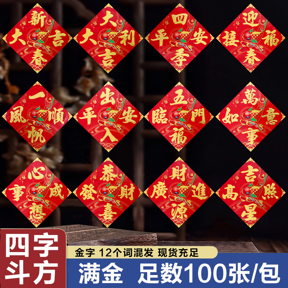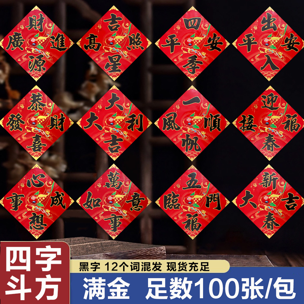 新年四字斗方满金门贴金字黑字烫金春节贴画福字贴门年画厂家直销