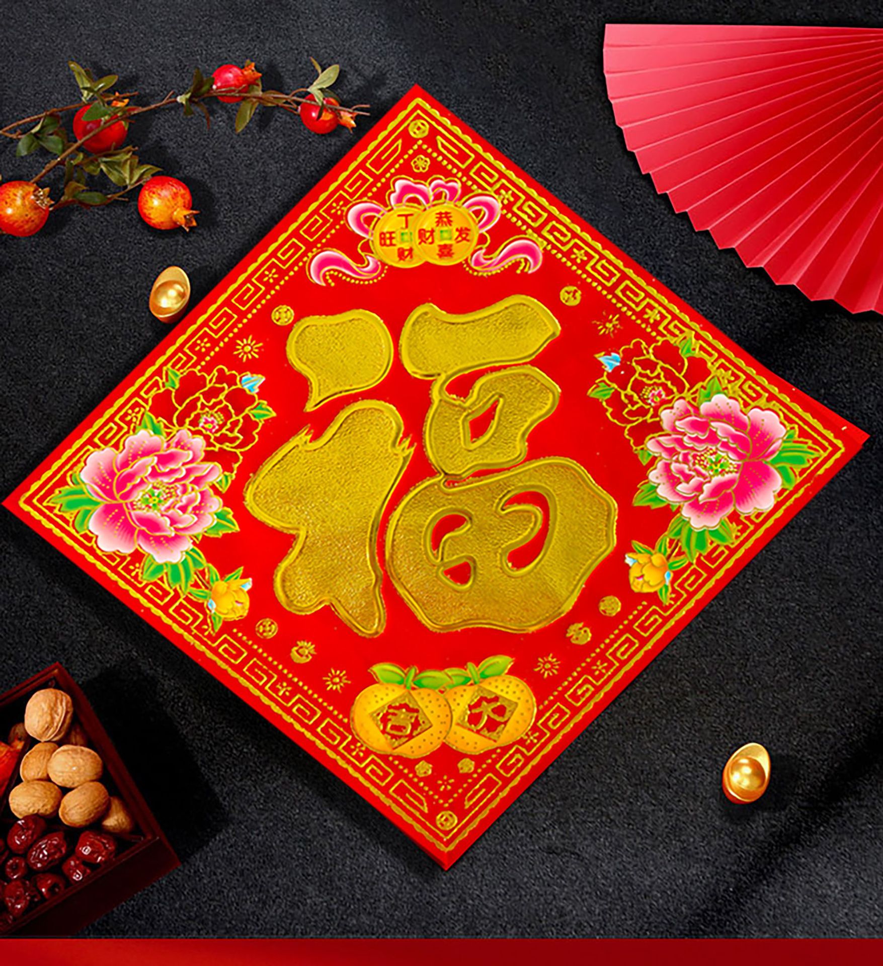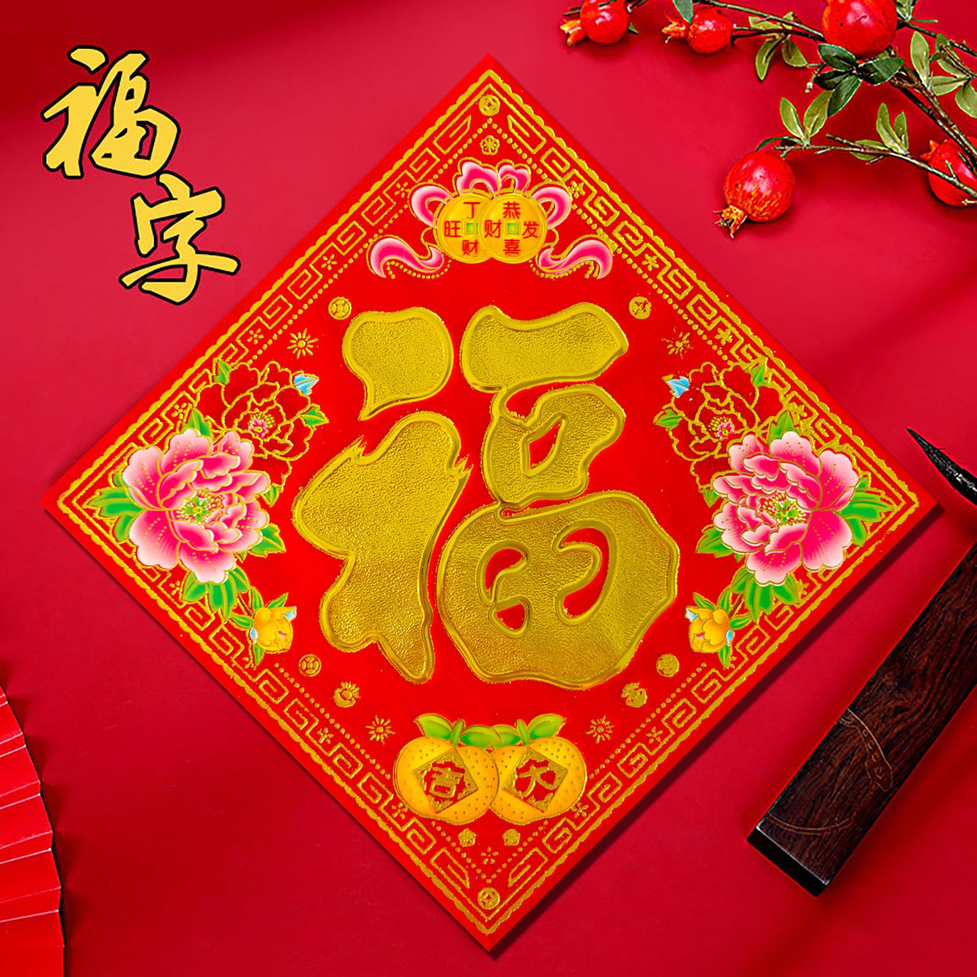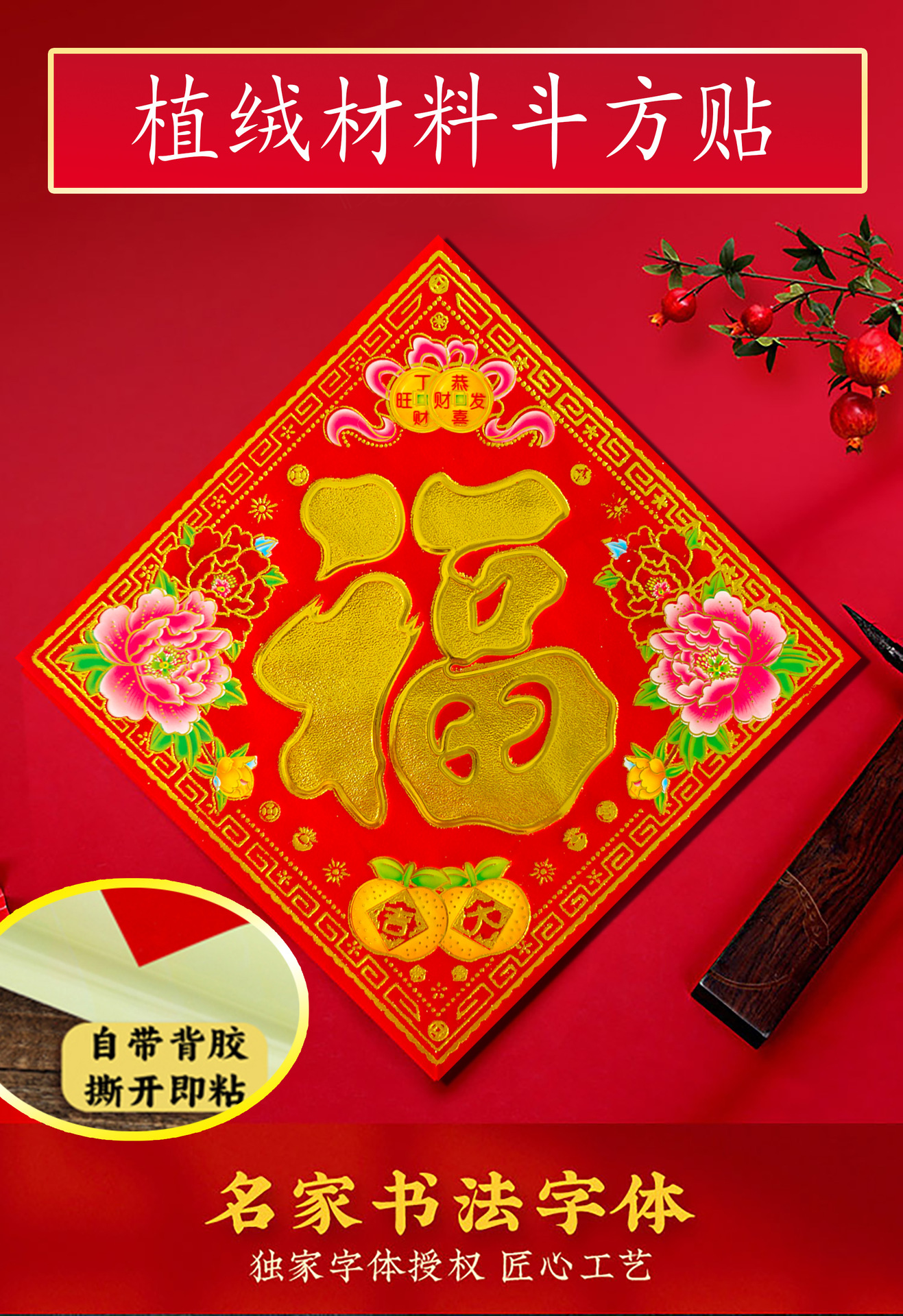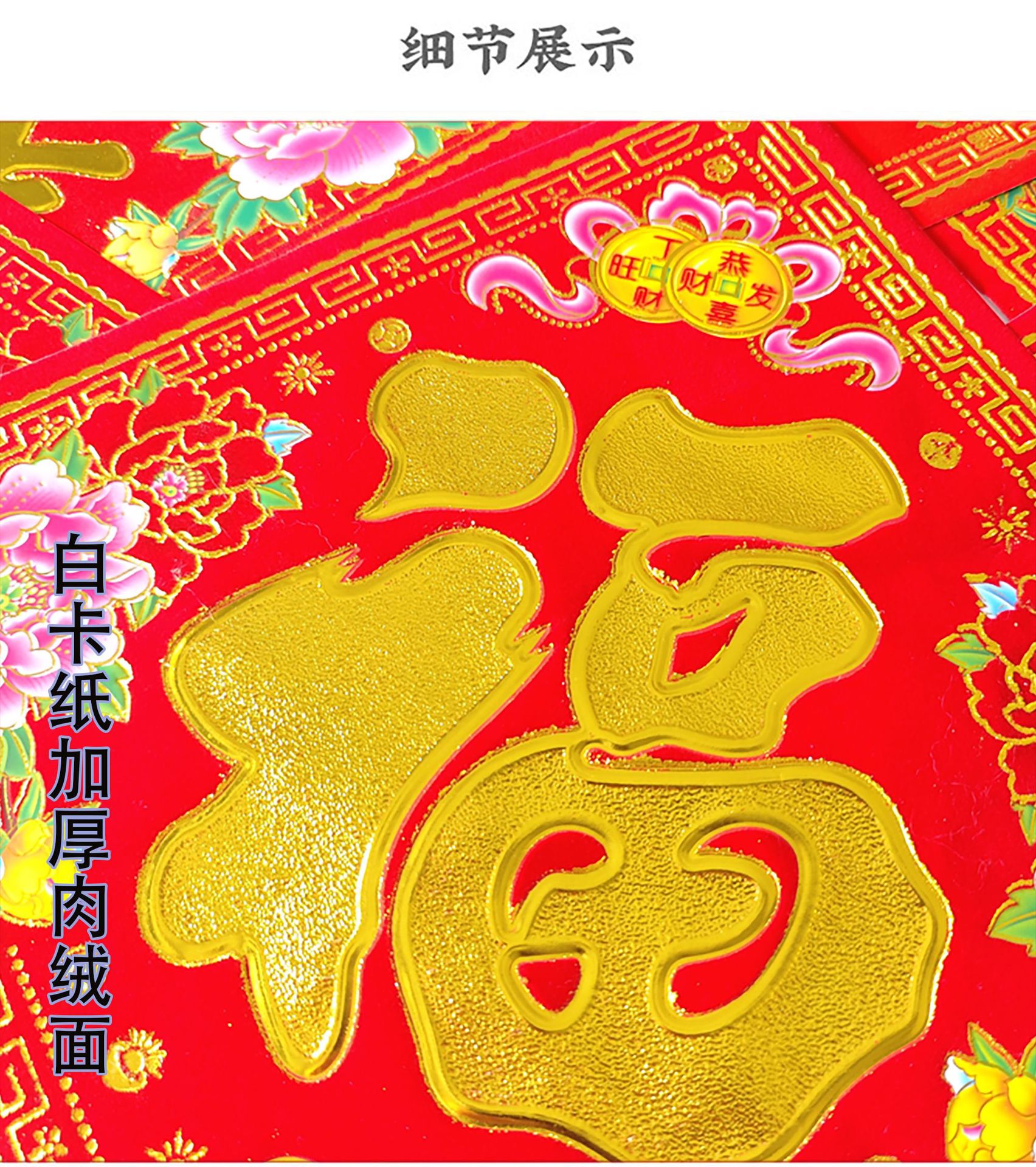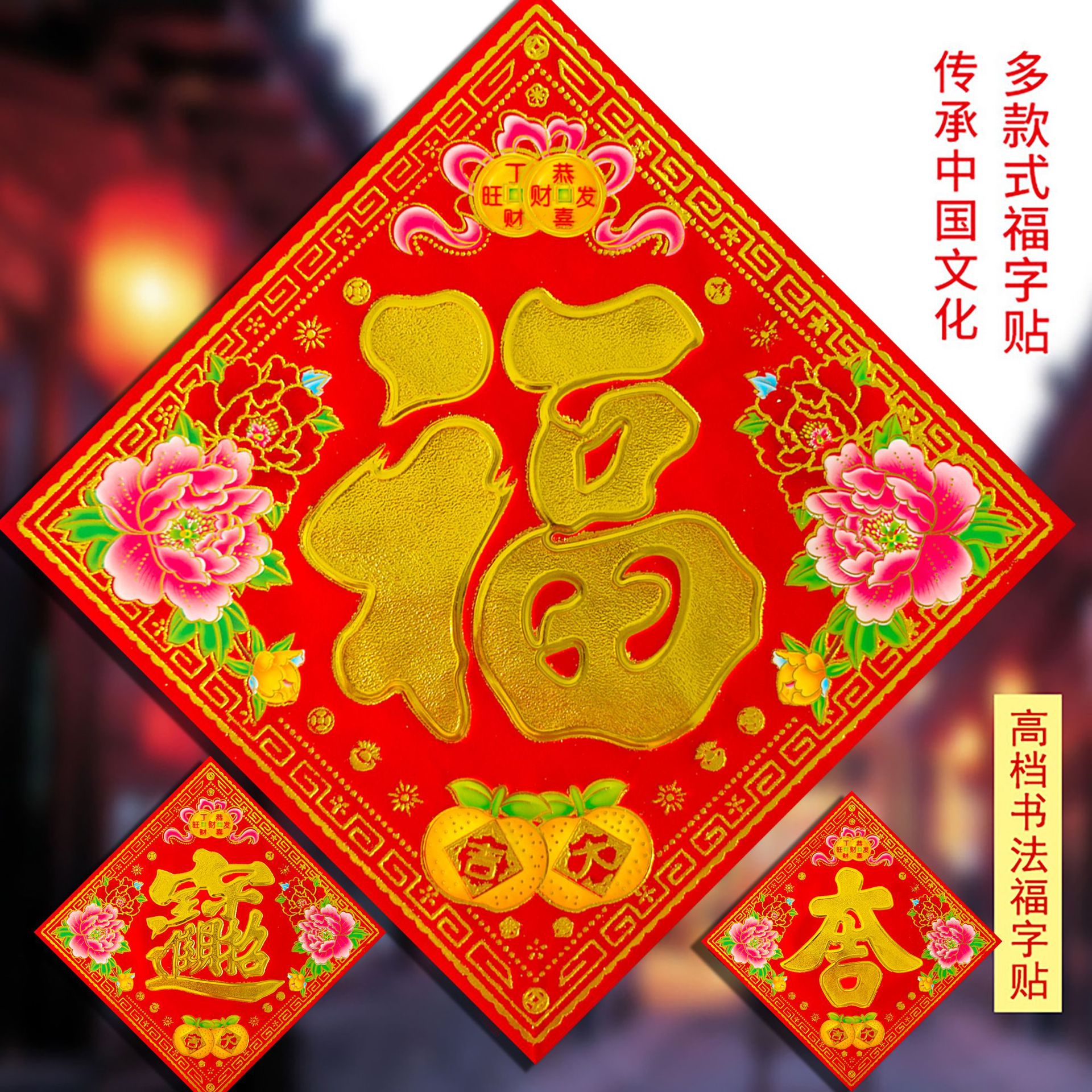 植绒自粘新款福字贴福吉宝字贴纸门贴福贴对联春节过年用品批货