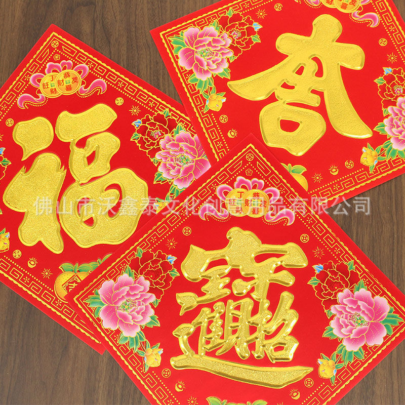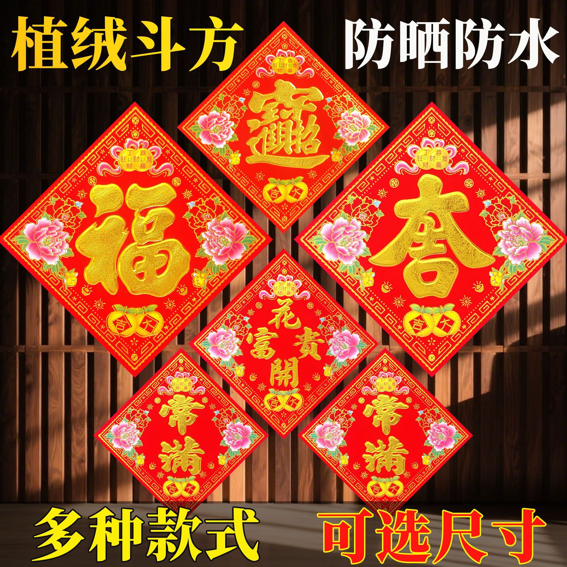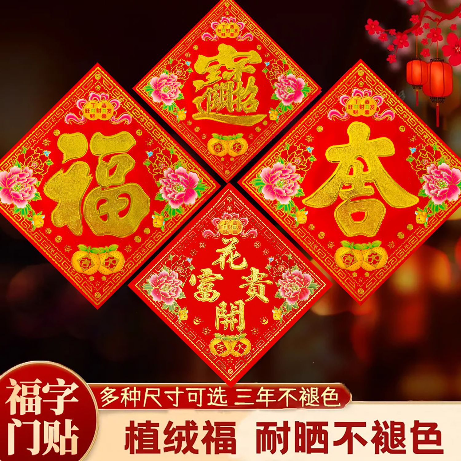 福字2026马年门贴植绒立体福新年春节用品贴纸对联厂家批发福字贴