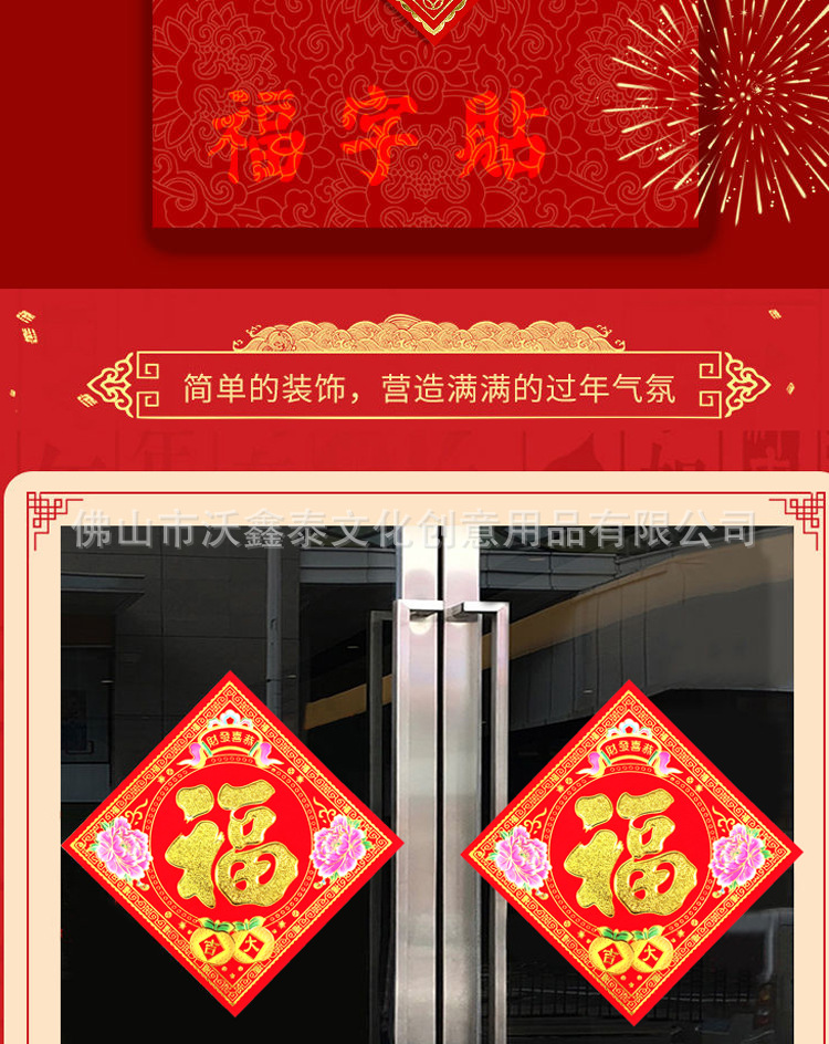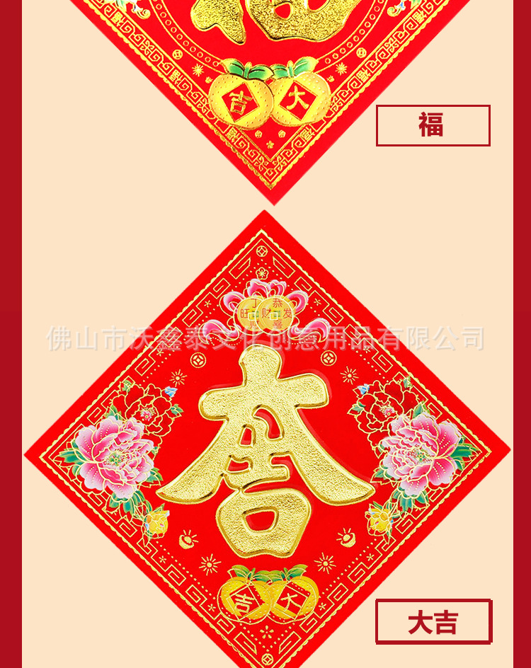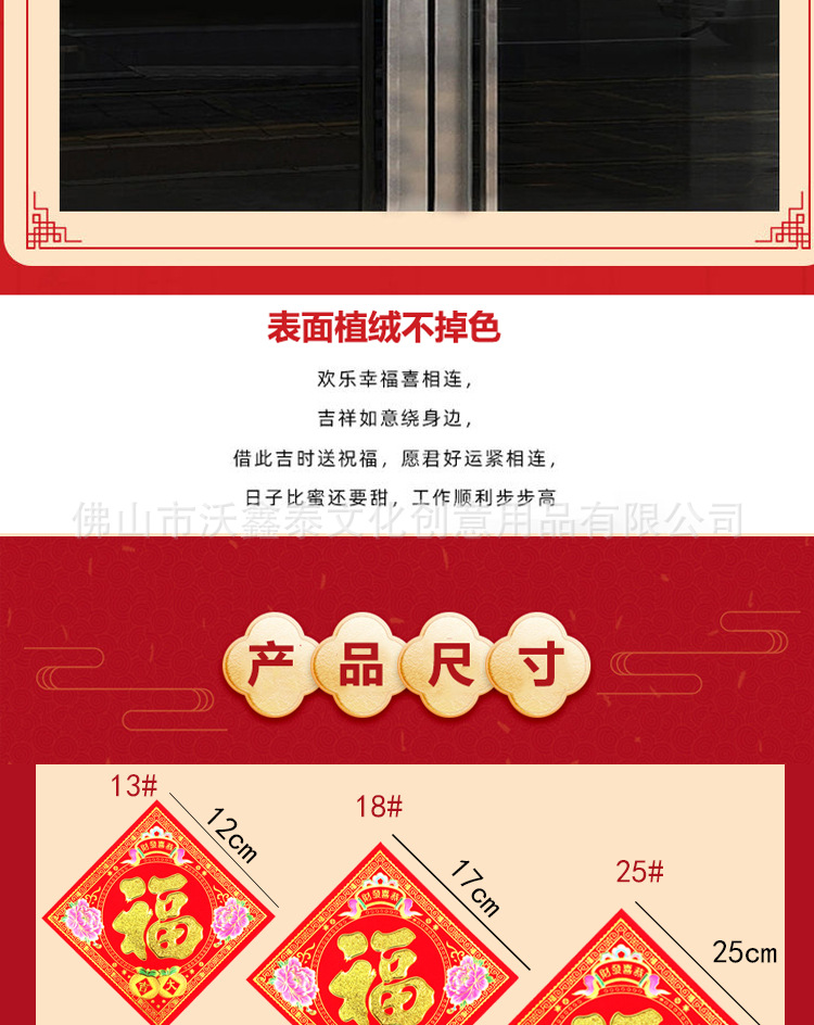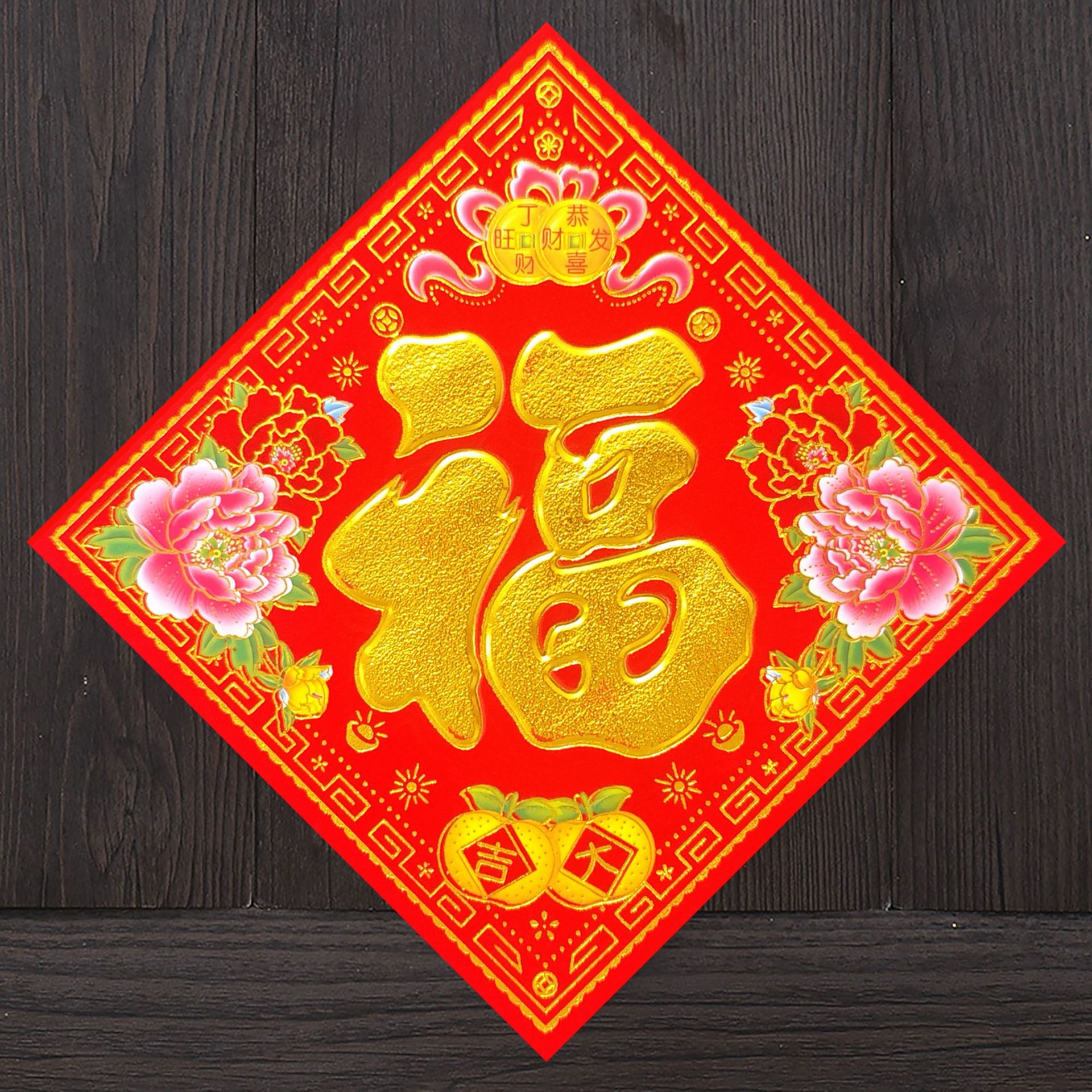 福字2026马年门贴植绒立体福新年春节用品贴纸对联厂家批发福字贴