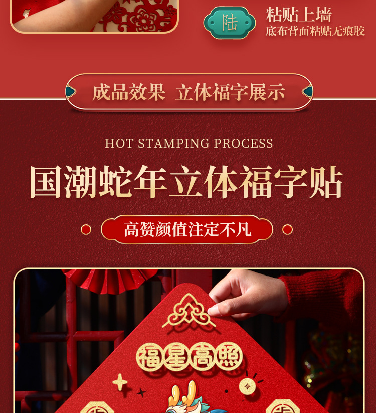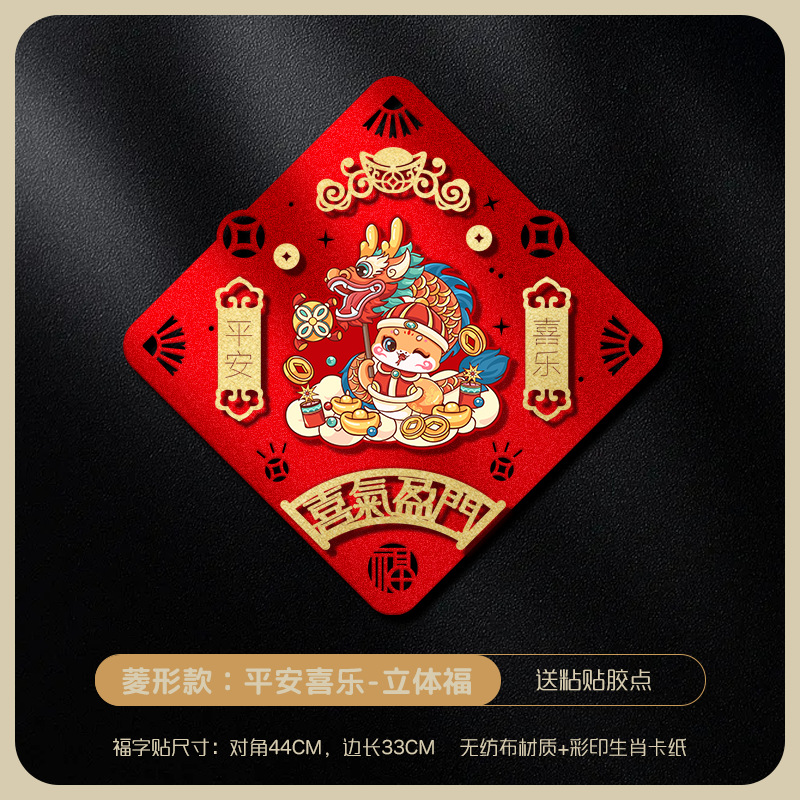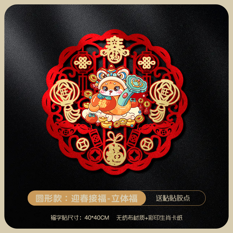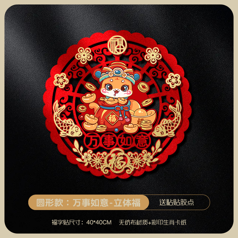 | 40# specification non-woven fabric three-dimensional fu character door sticker (send magnetic glue)(40#规格无纺布立体福字门贴(送磁吸胶)) | USD $1.03 | 8721 zhang available |