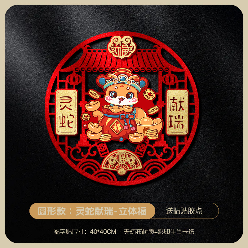 新款春节2025年福字磁吸蛇年福字门贴纸新年入户门立体福字贴装饰
