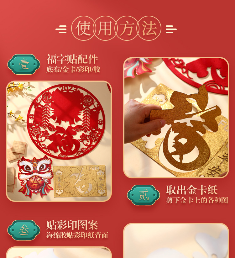 | 40# specification non-woven fabric three-dimensional fu character door sticker (send magnetic glue)(40#规格无纺布立体福字门贴(送磁吸胶)) | USD $1.1 | 8695 zhang available |