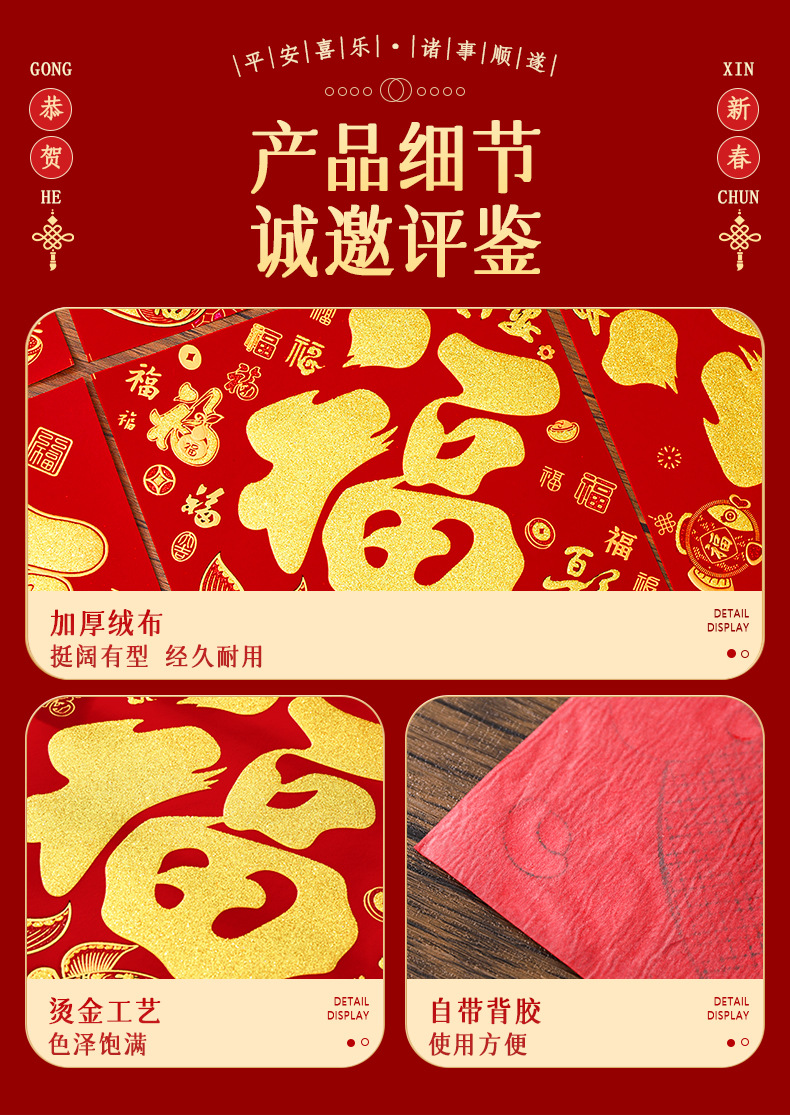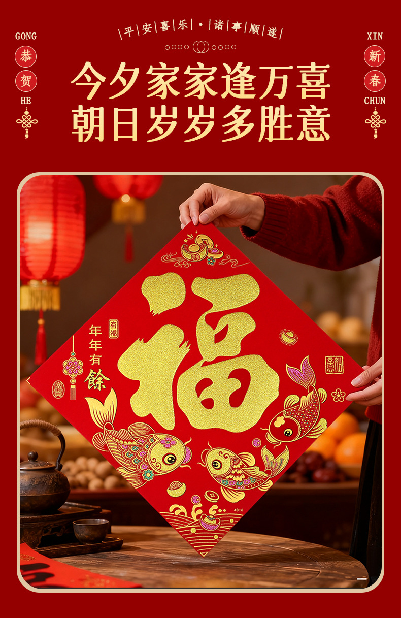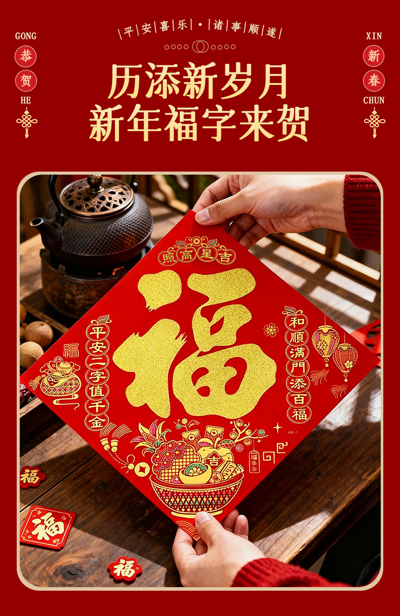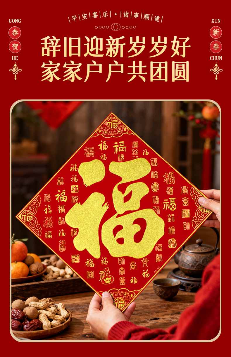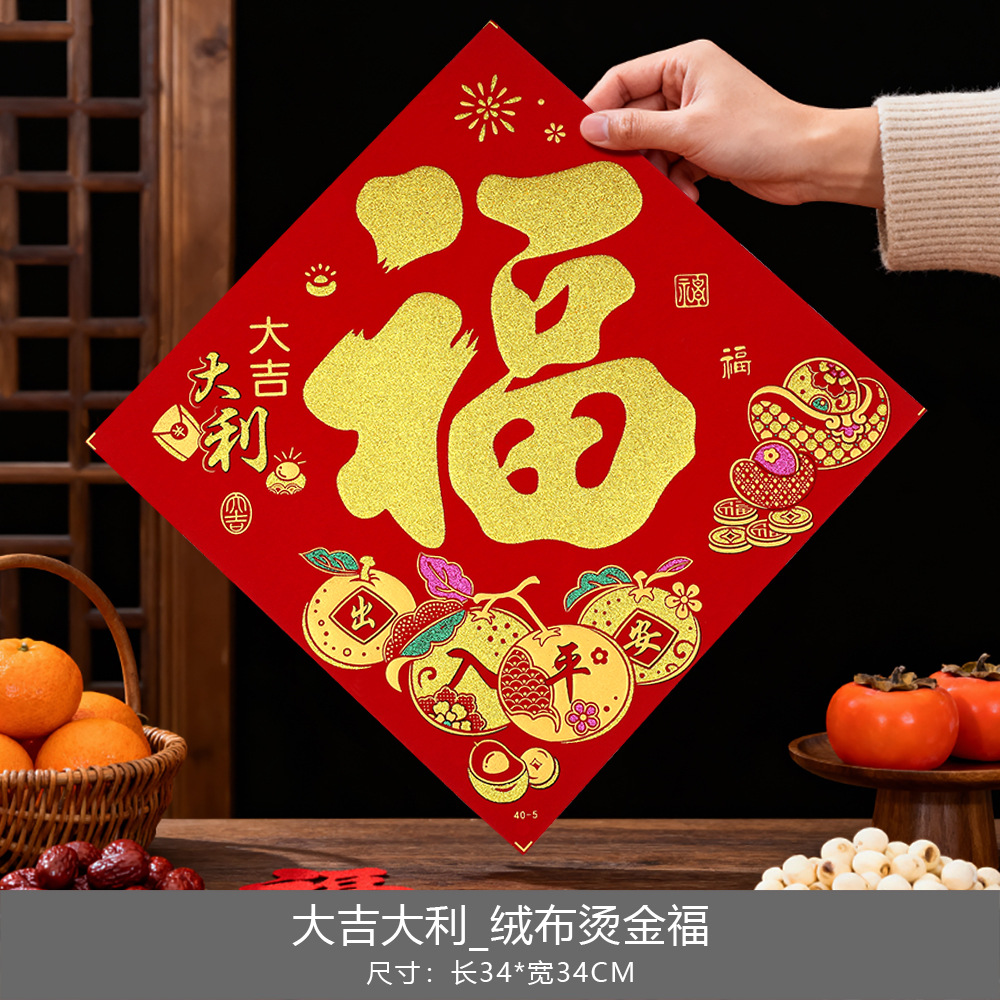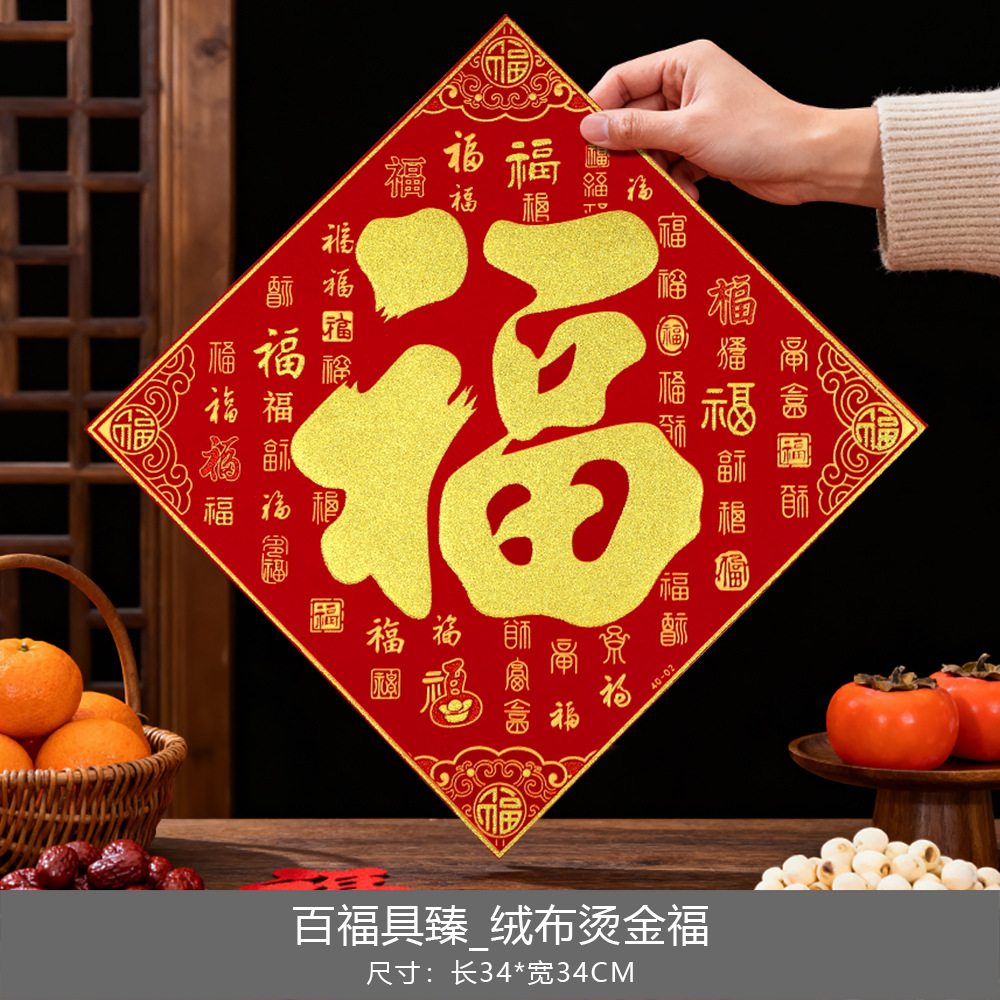 2026马年春节新年福字门贴过年烫金绒布斗方福字帖入户门年画批发