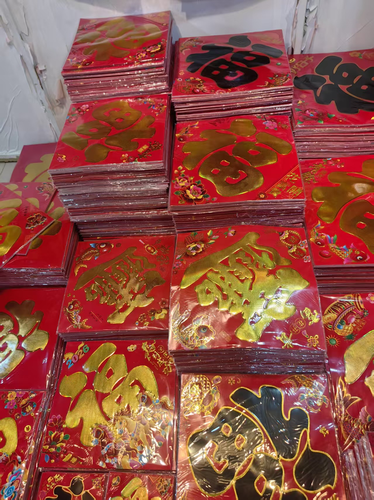 2026春节新款满烫金铜版纸平面福字大门福字贴黑字金字福字门贴批