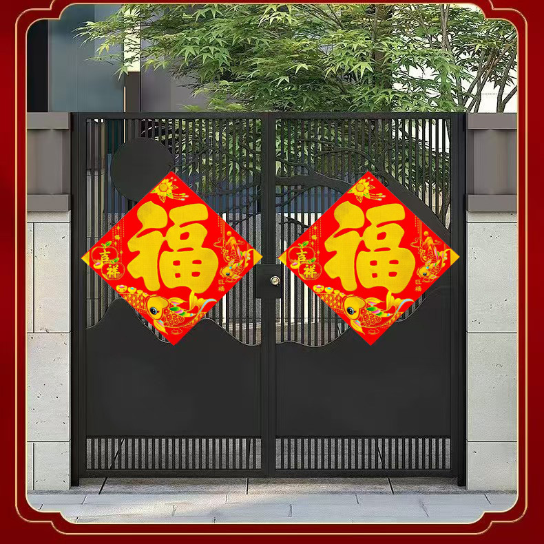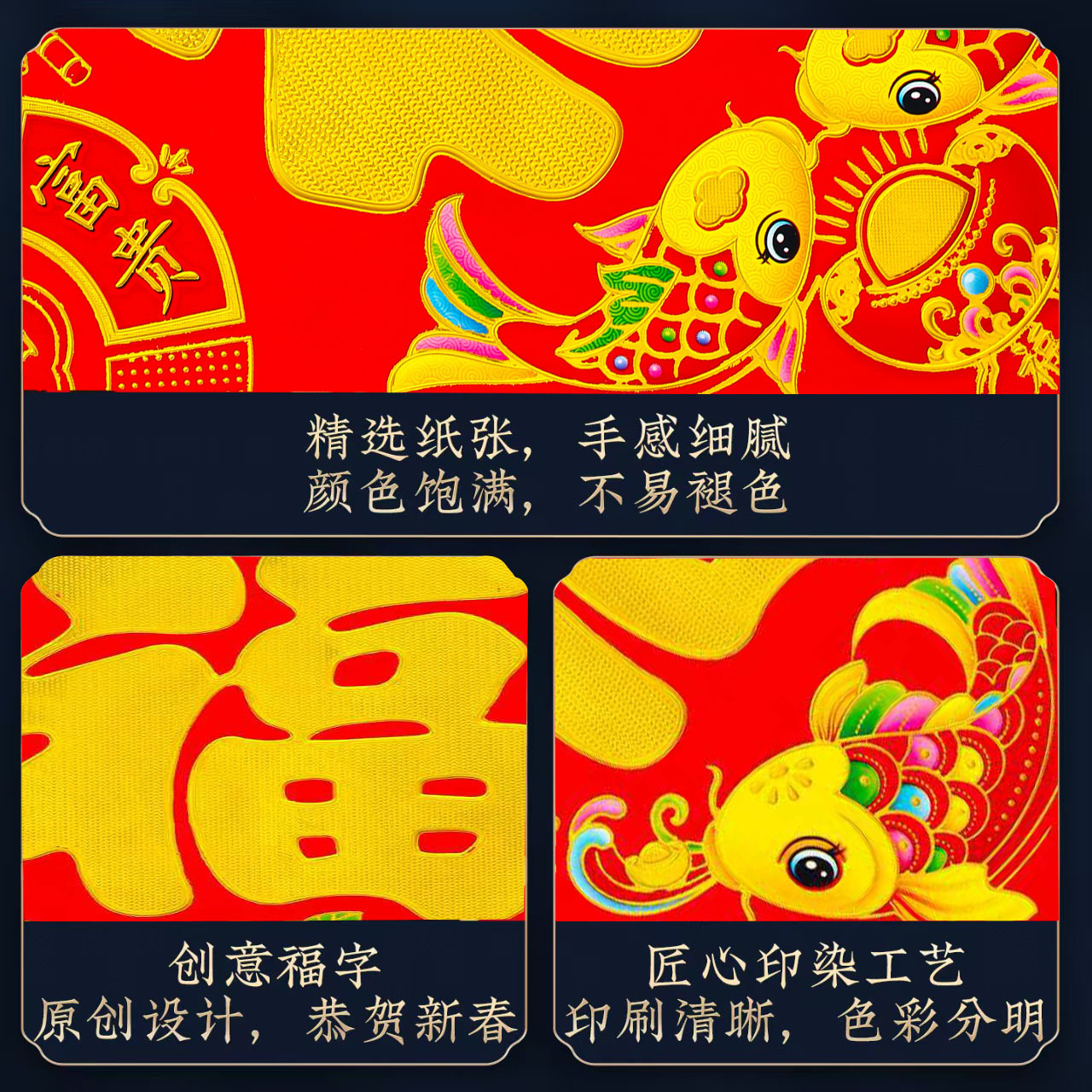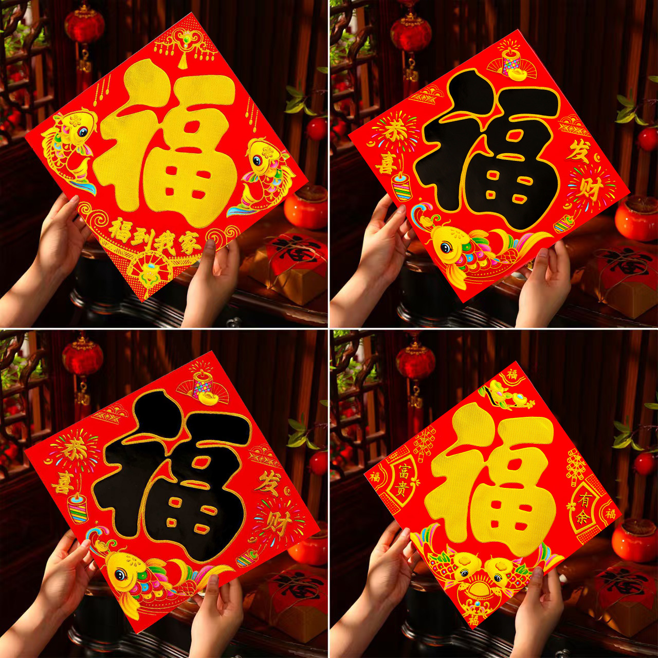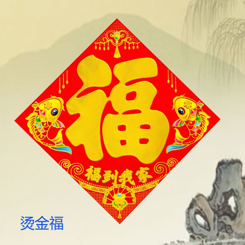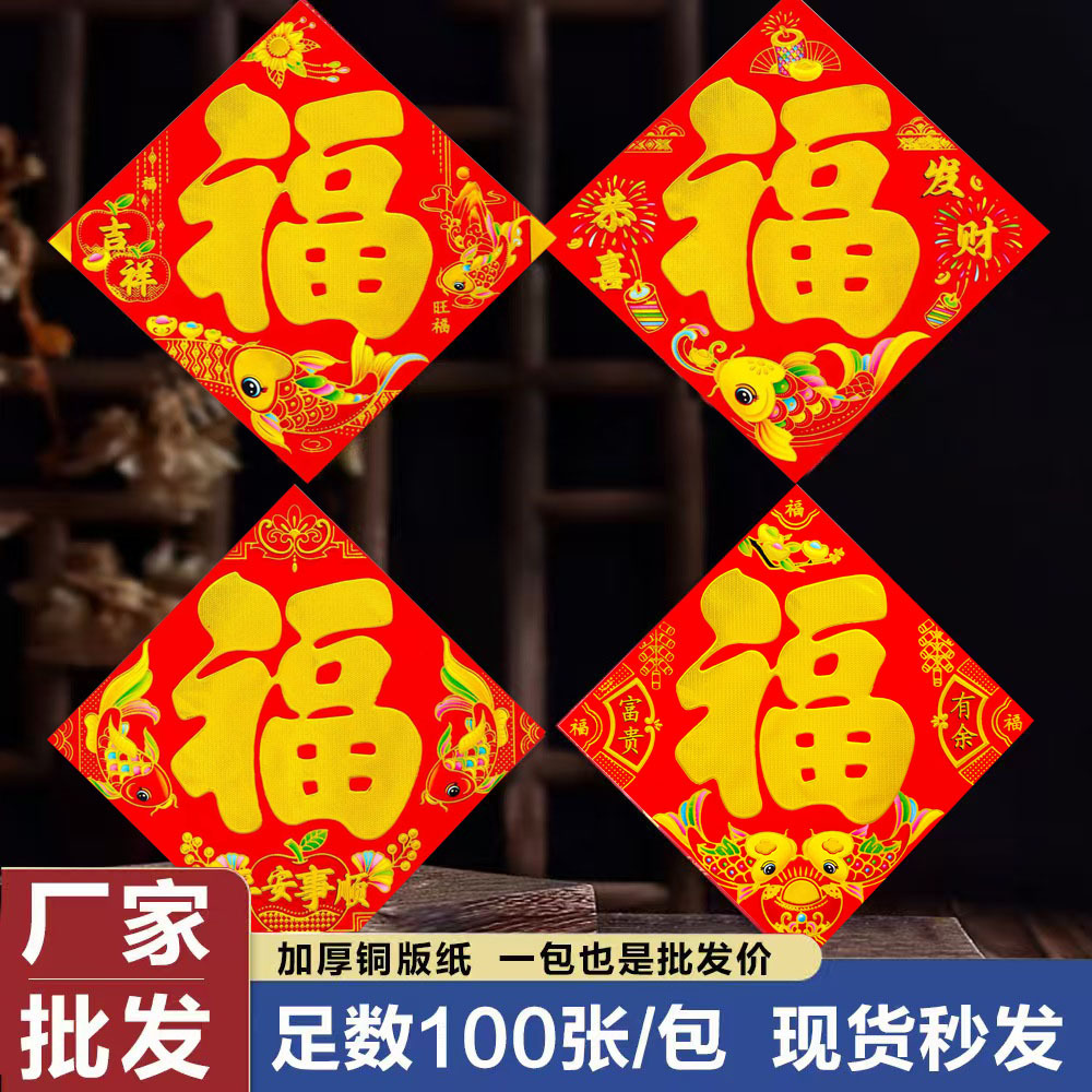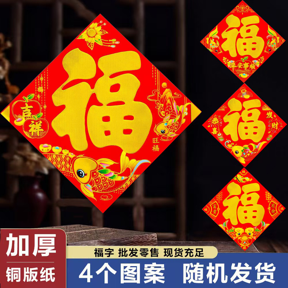 创意新年春节福贴铜版纸烫金福字年画门贴装饰厂金字黑字贴纸批发