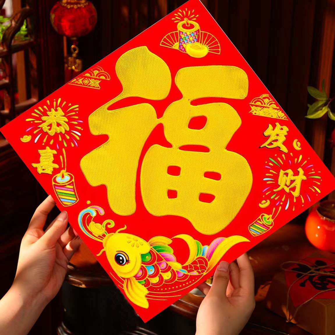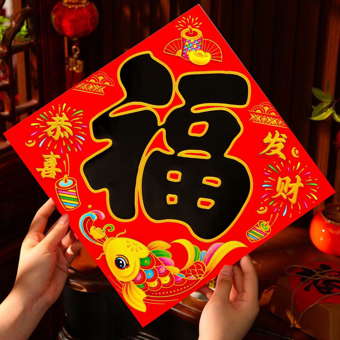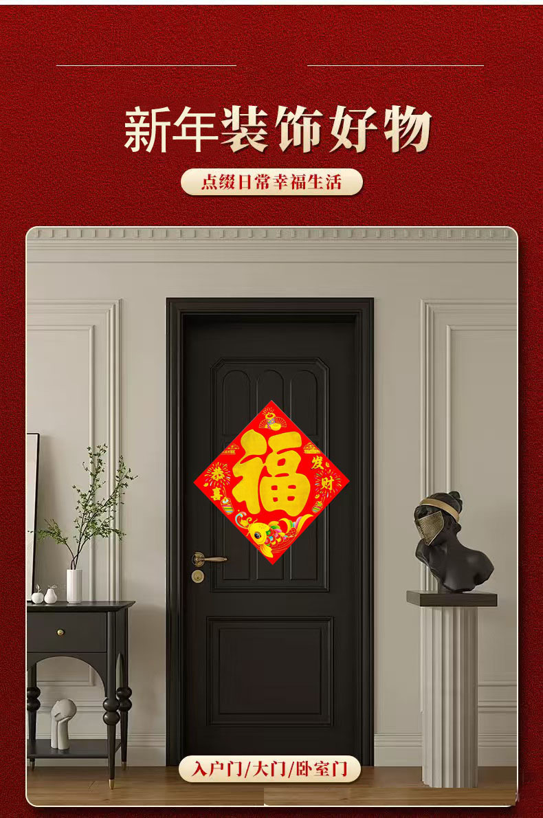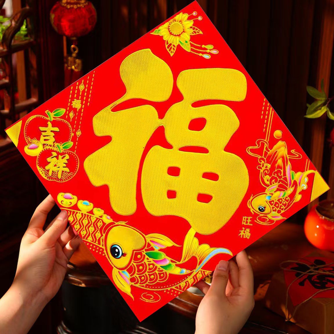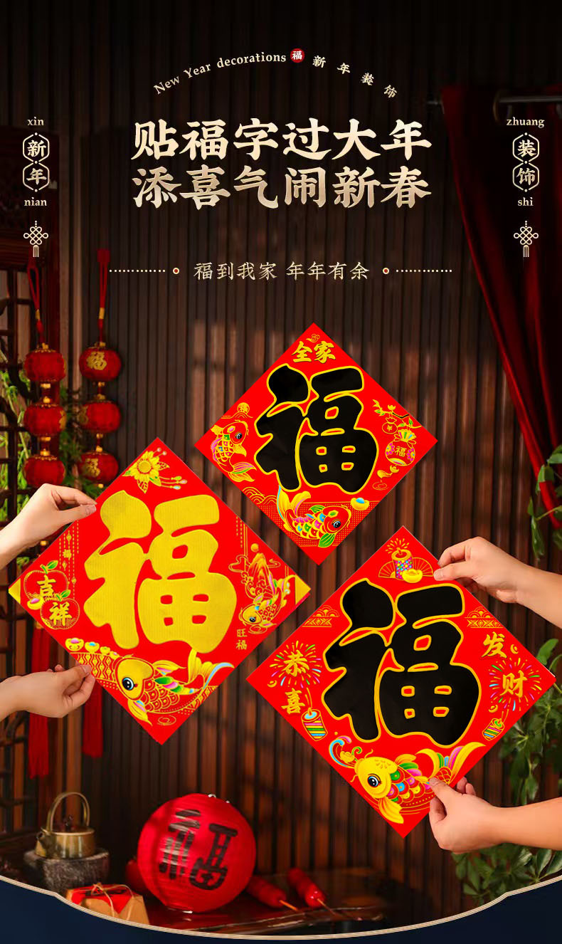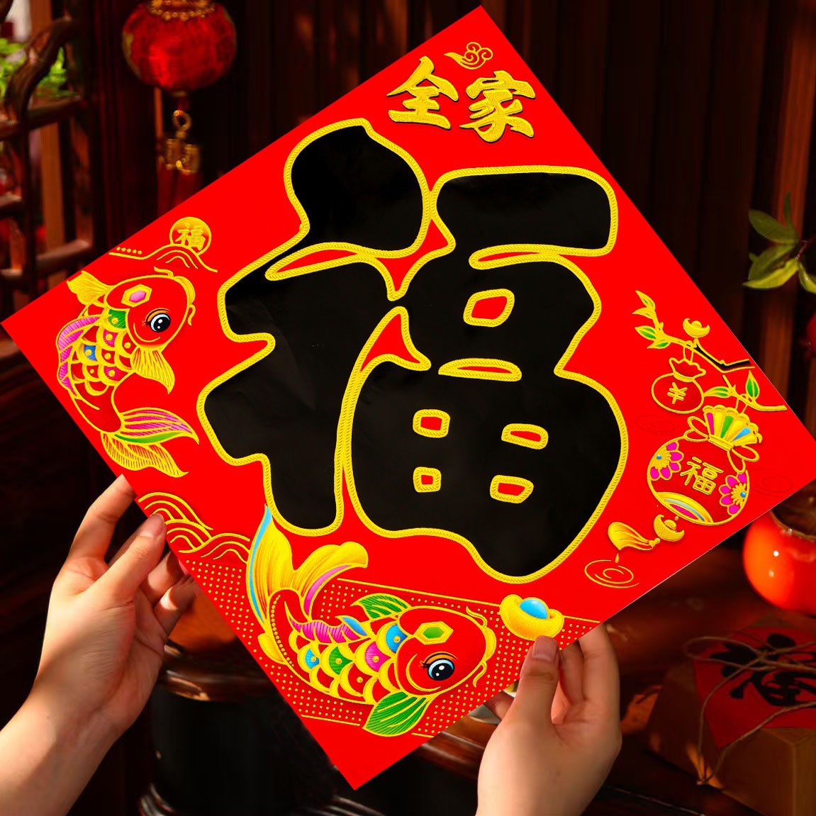 创意新年春节福贴铜版纸烫金福字年画门贴装饰厂金字黑字贴纸批发