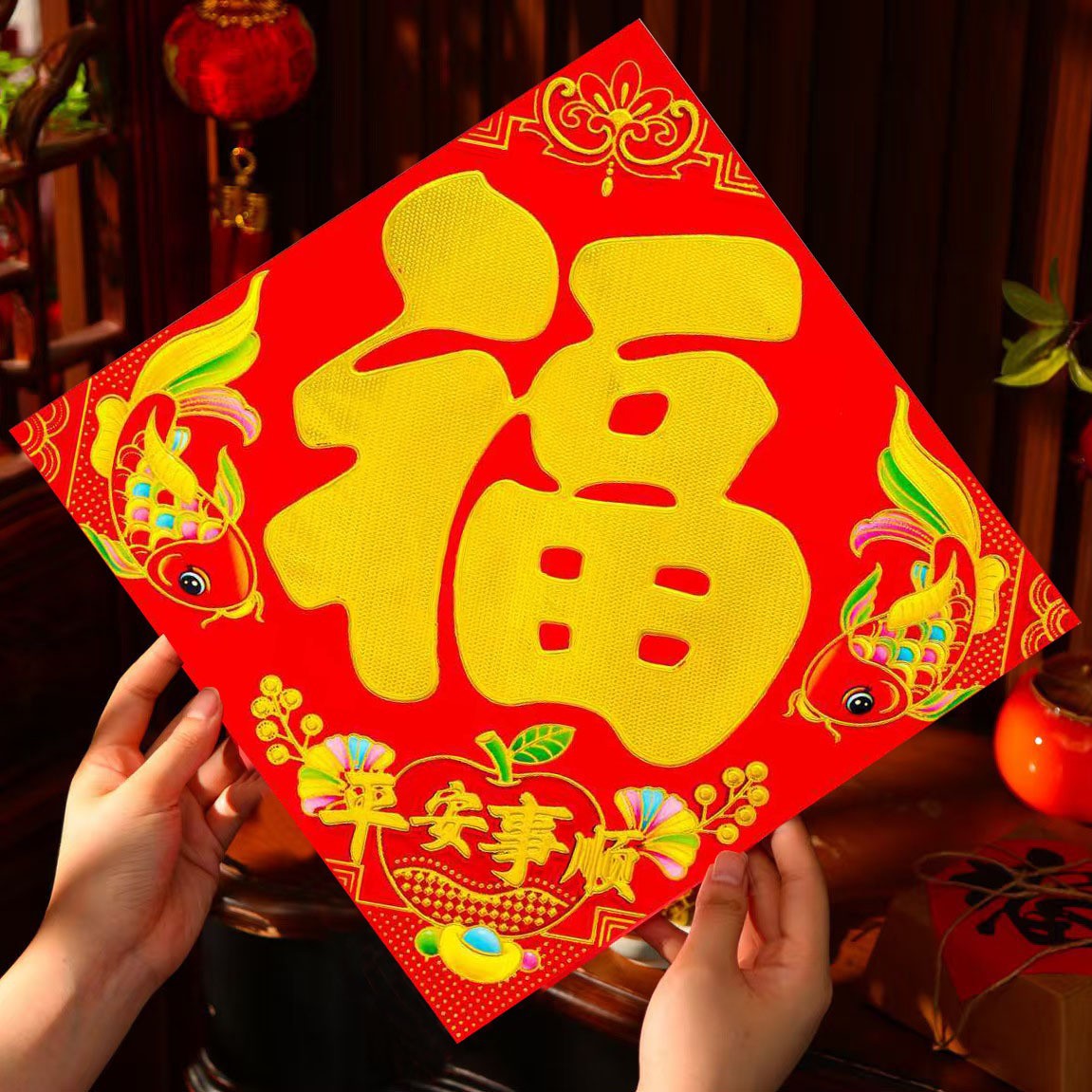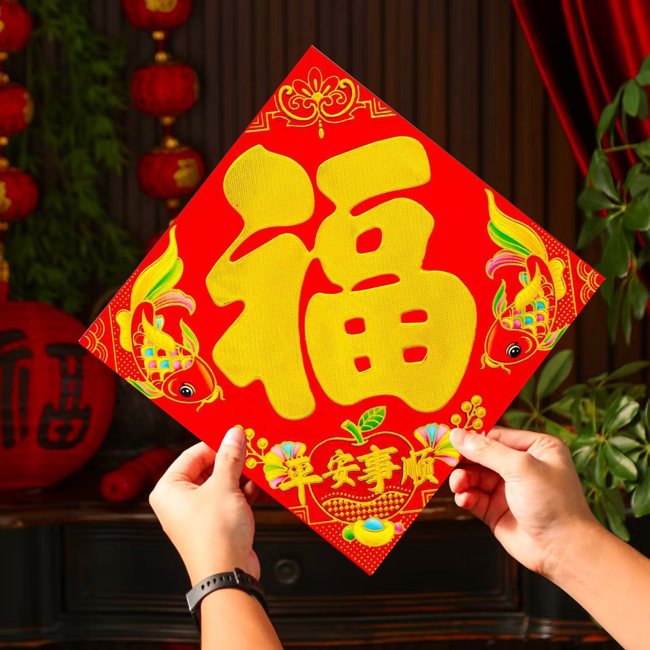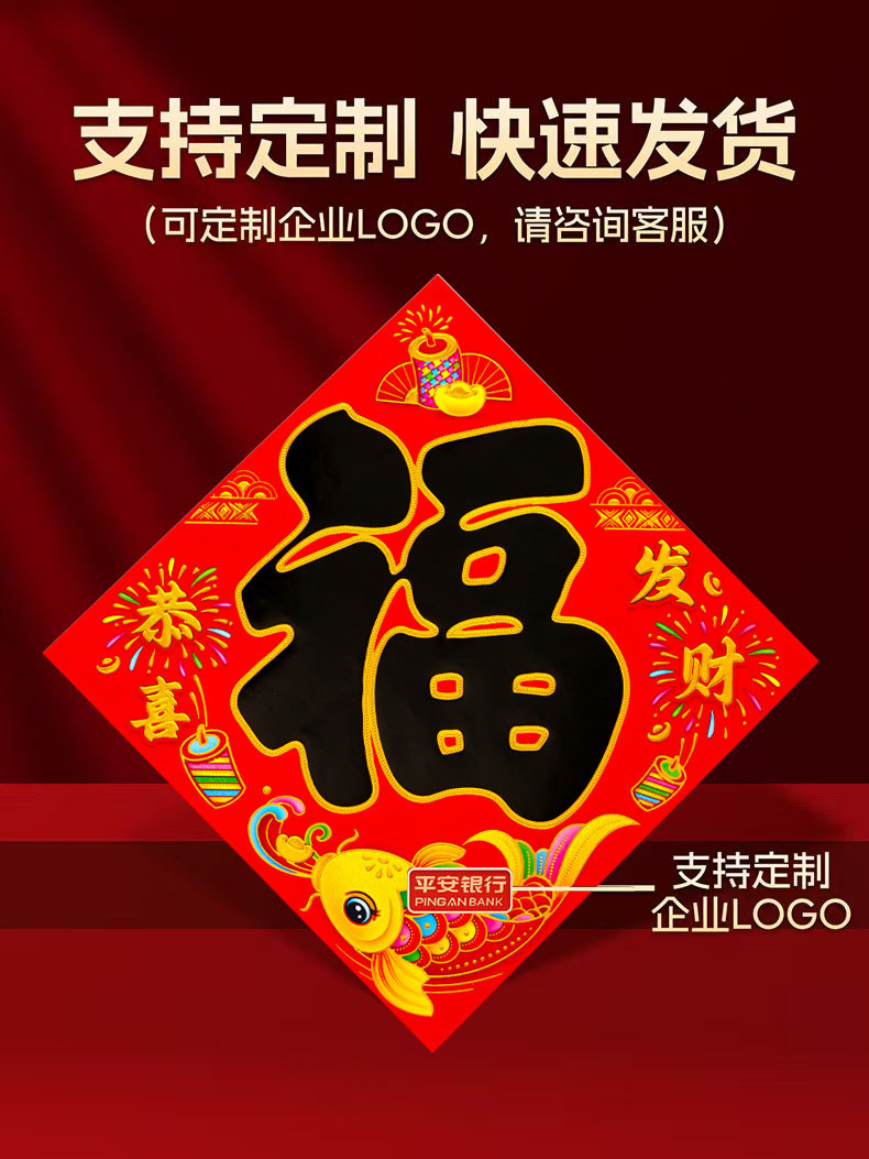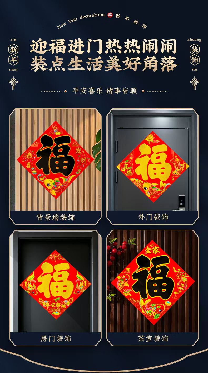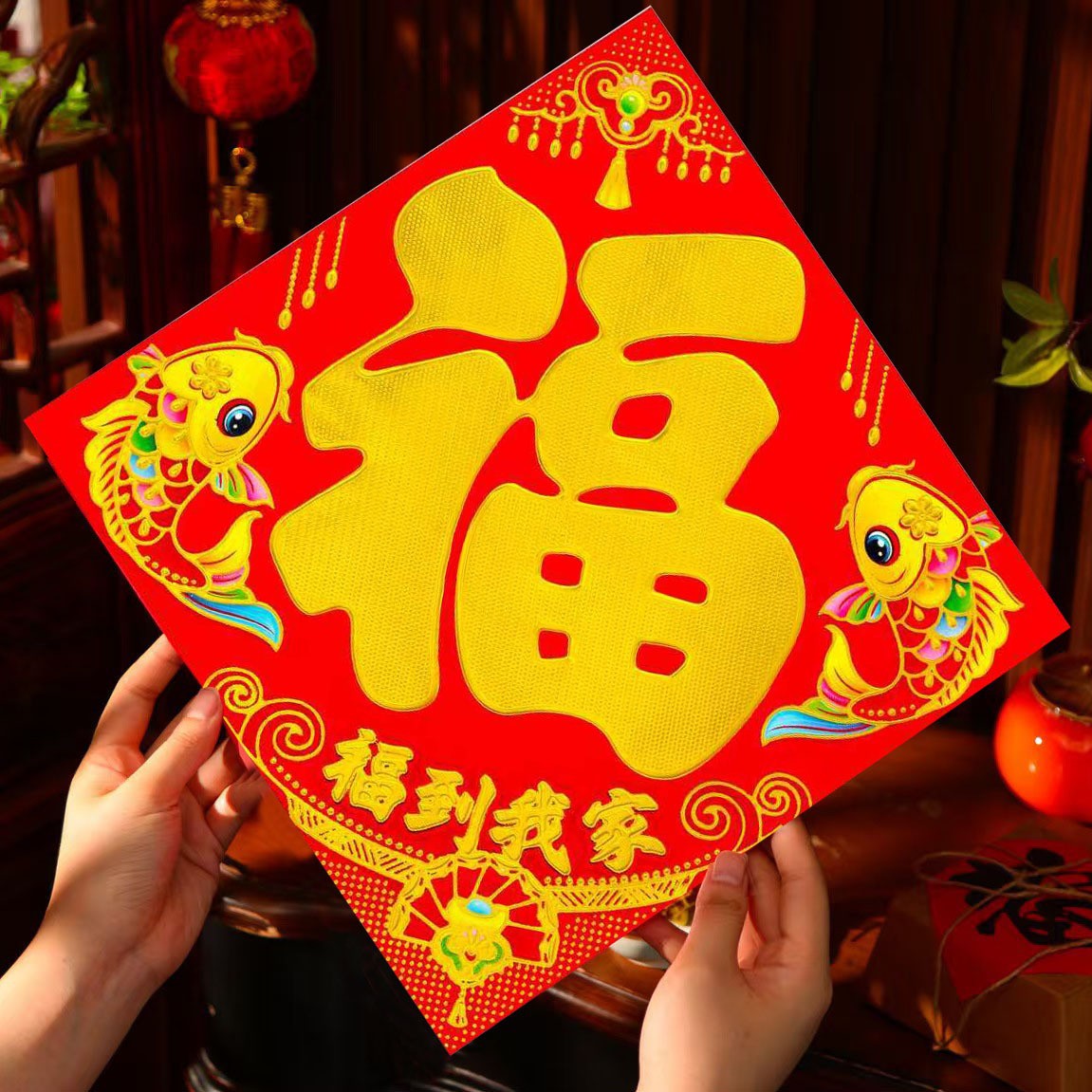创意新年春节福贴铜版纸烫金福字年画门贴装饰厂金字黑字贴纸批发